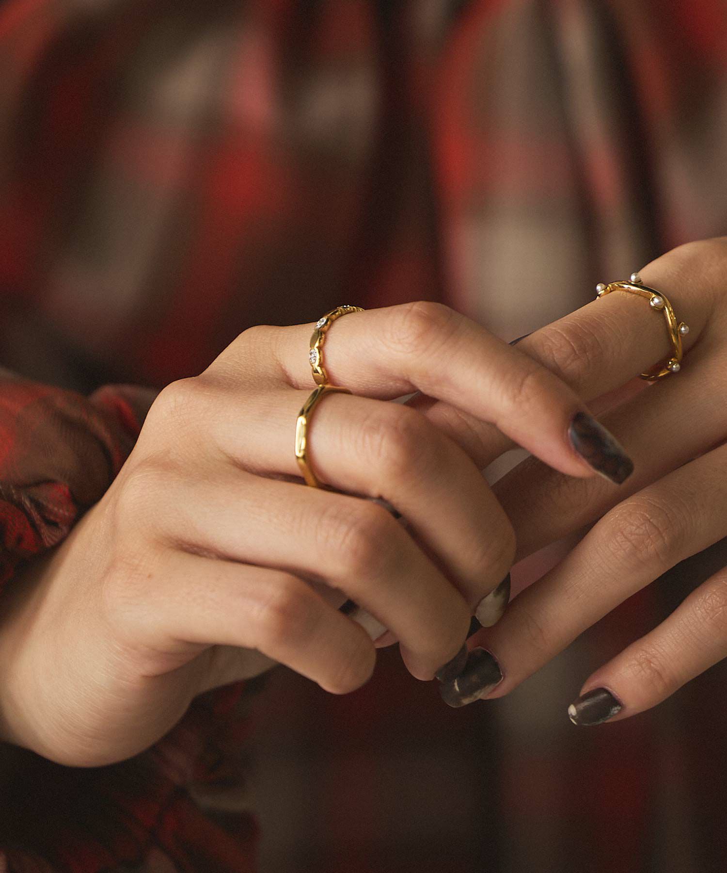 1つの指に重ねても、それぞれ単体で使っても、お手持ちのリングとの重ね付けにも◎