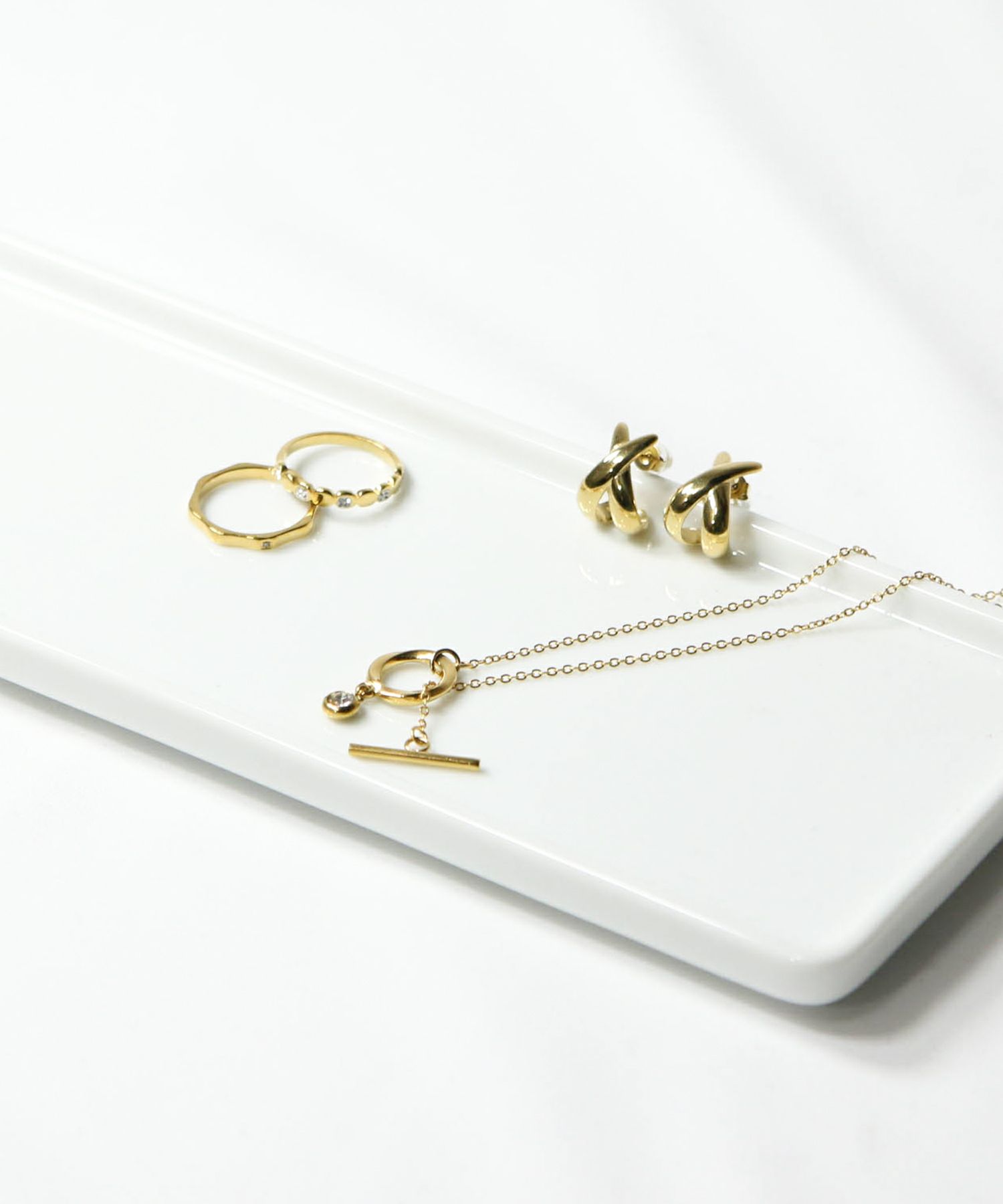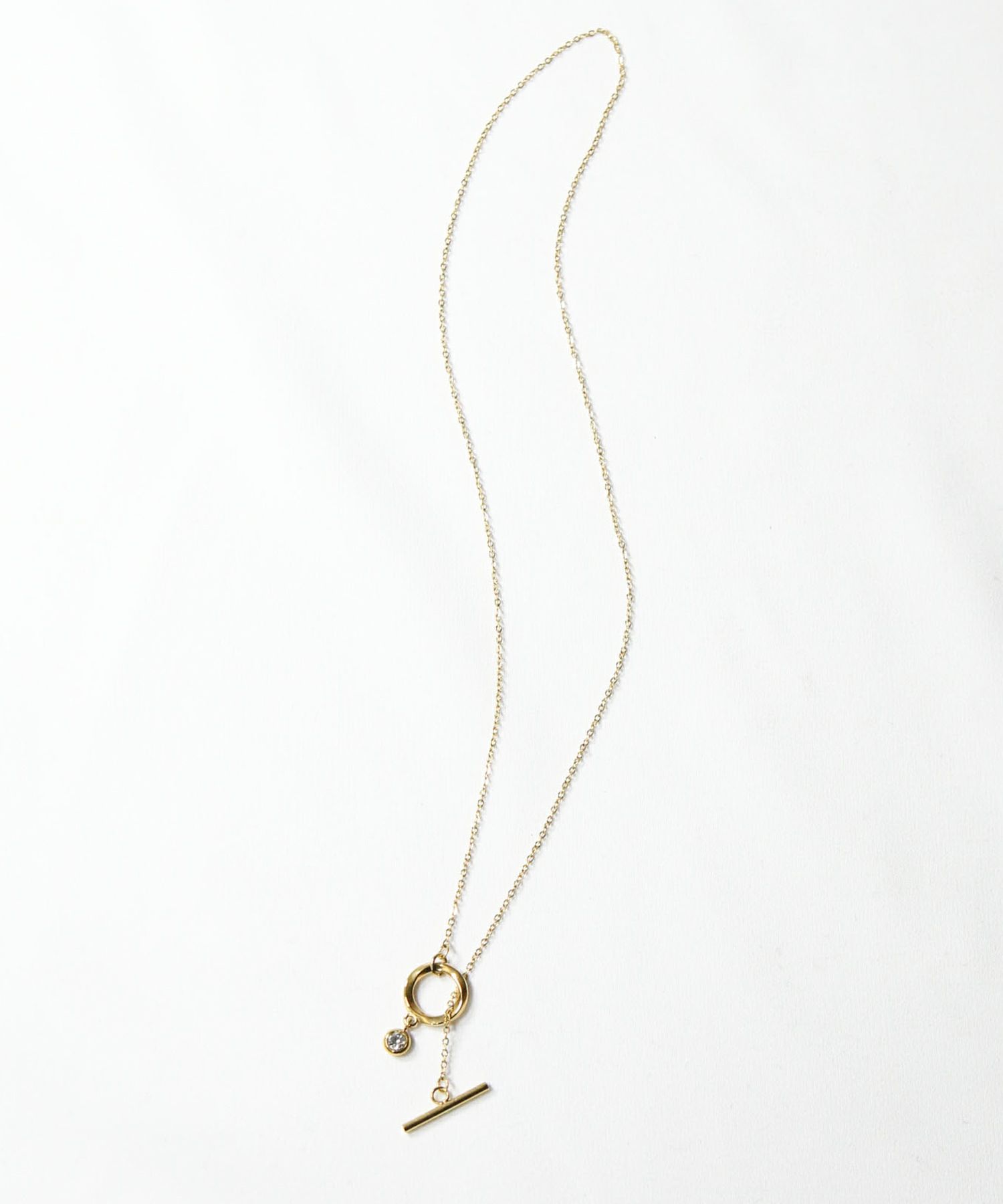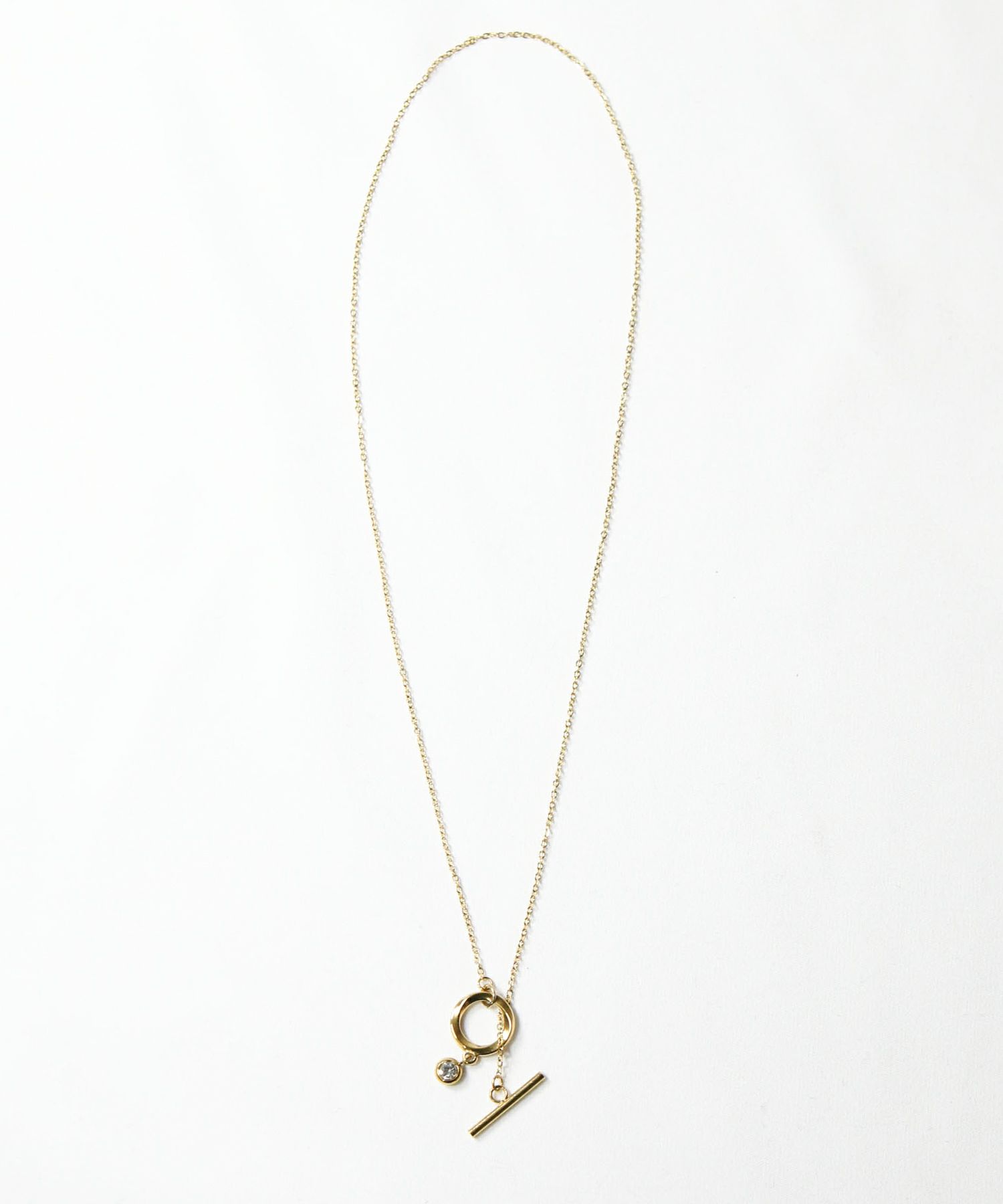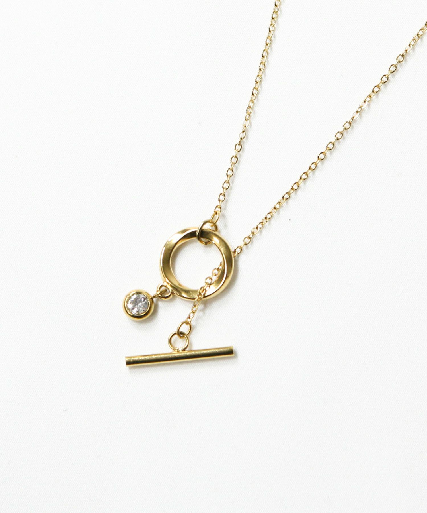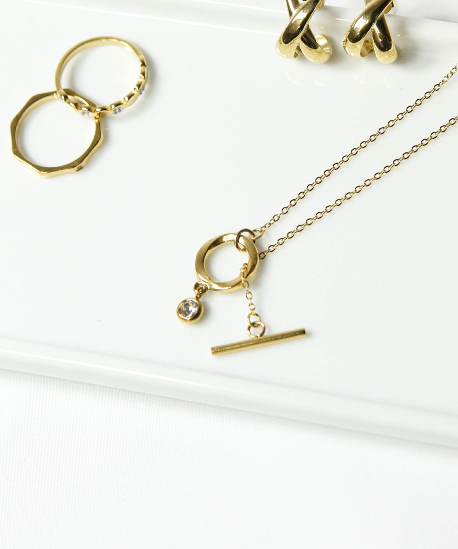 さりげないリングとストーンが女性らしい、ステンレス素材のネックレス。