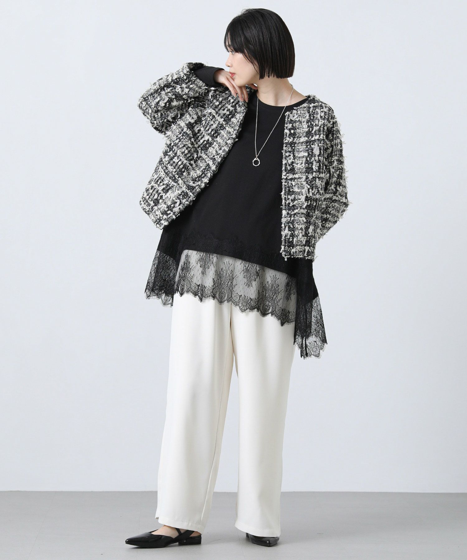 ※着用画像は撮影状況、光の当たり具合で色みが違って見える場合がございます。実際の色みについては、画像一覧の最後に掲載している詳細画像をご参照ください。