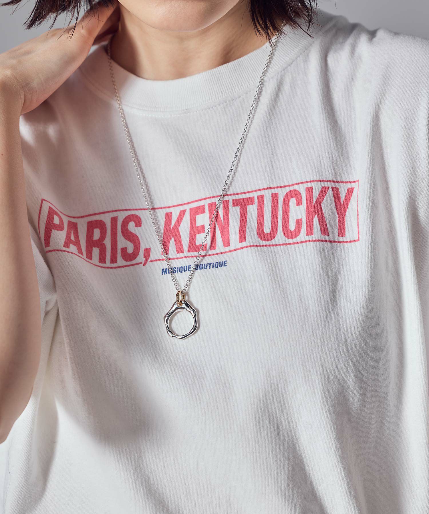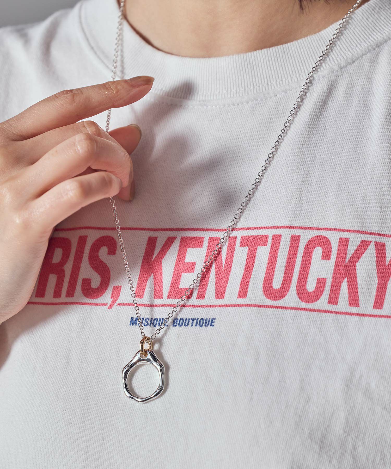 存在感のあるリングがポイントのロングネックレス。