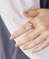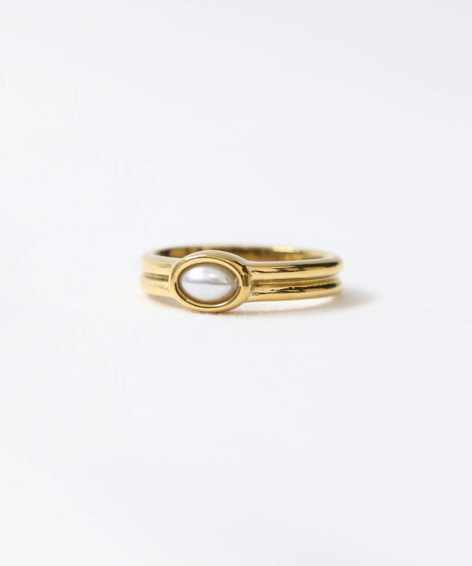 オーバル型の小ぶりなパールを埋め込んだ上品なリング。