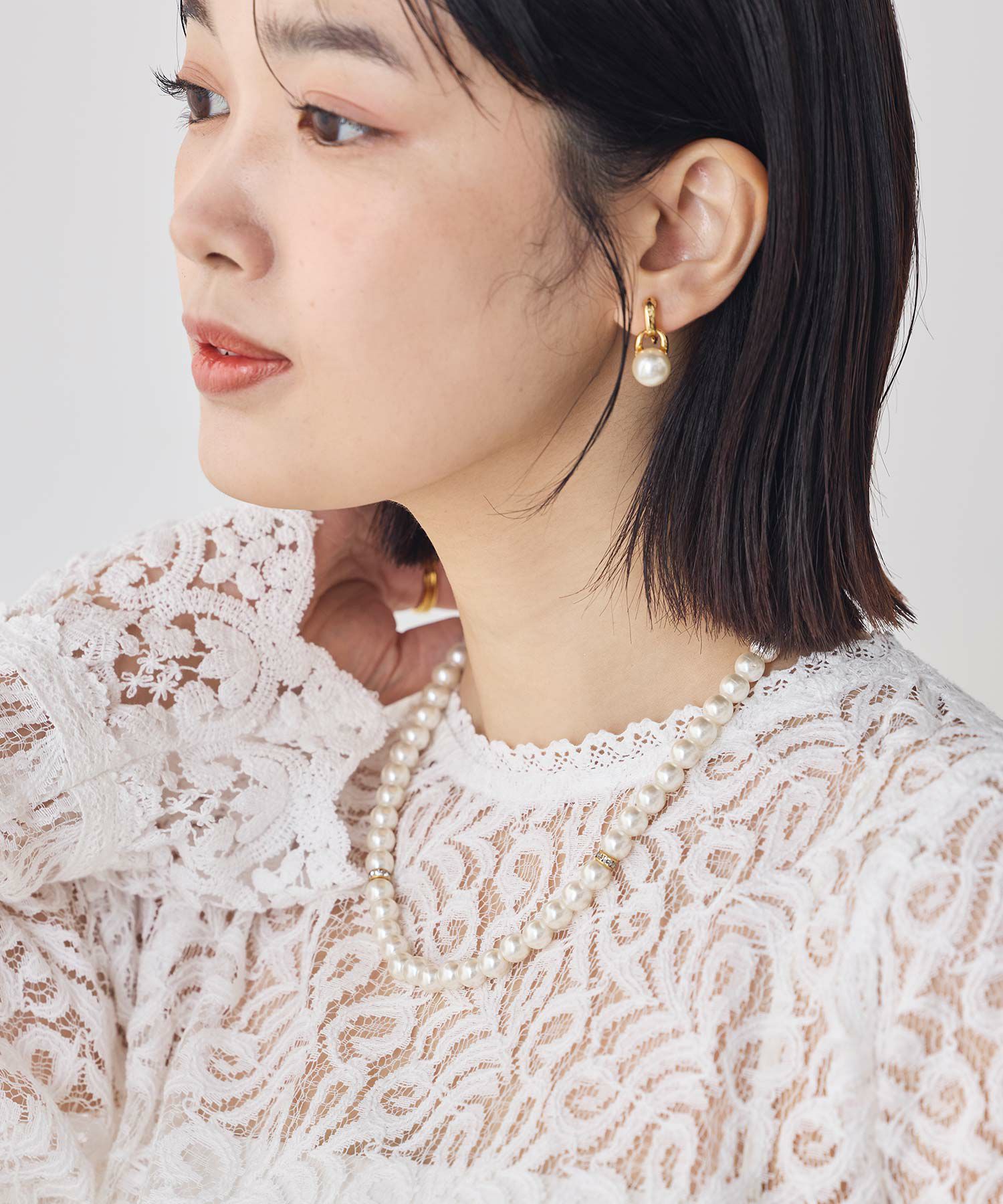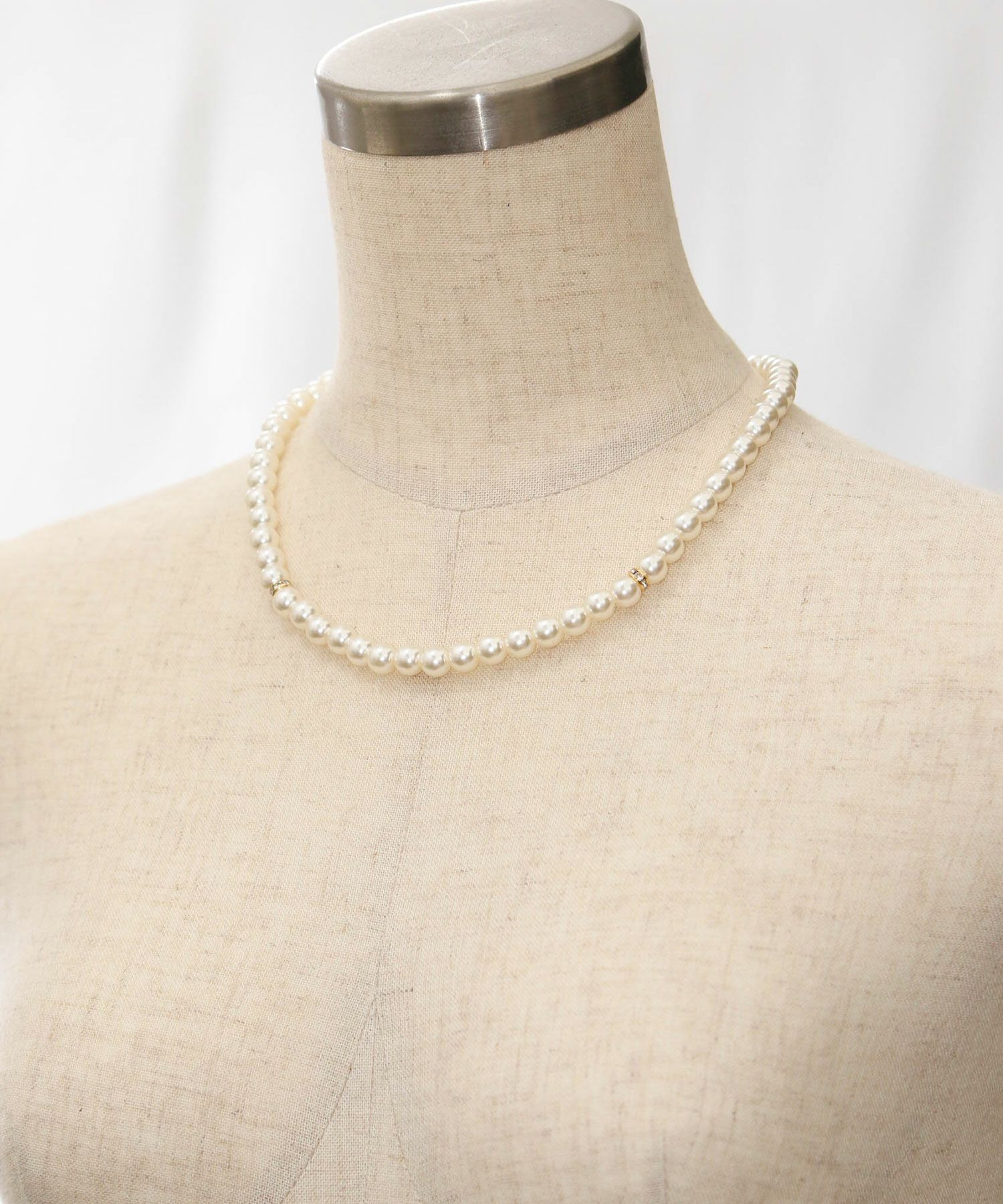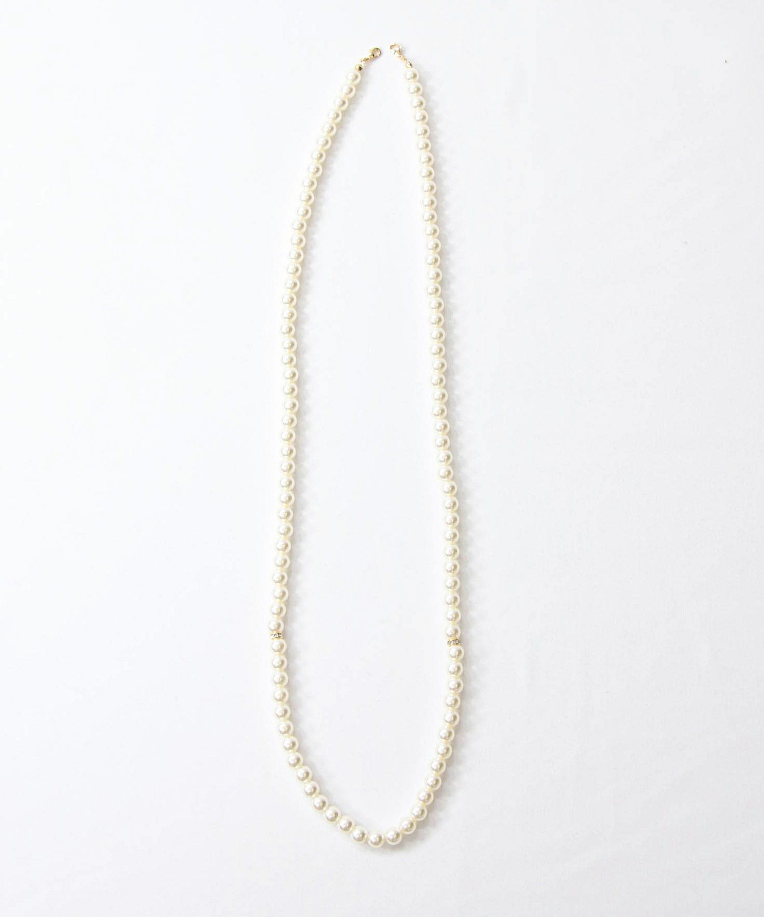 スタイルを女性らしく華やかに見せてくれるパールネックレス。