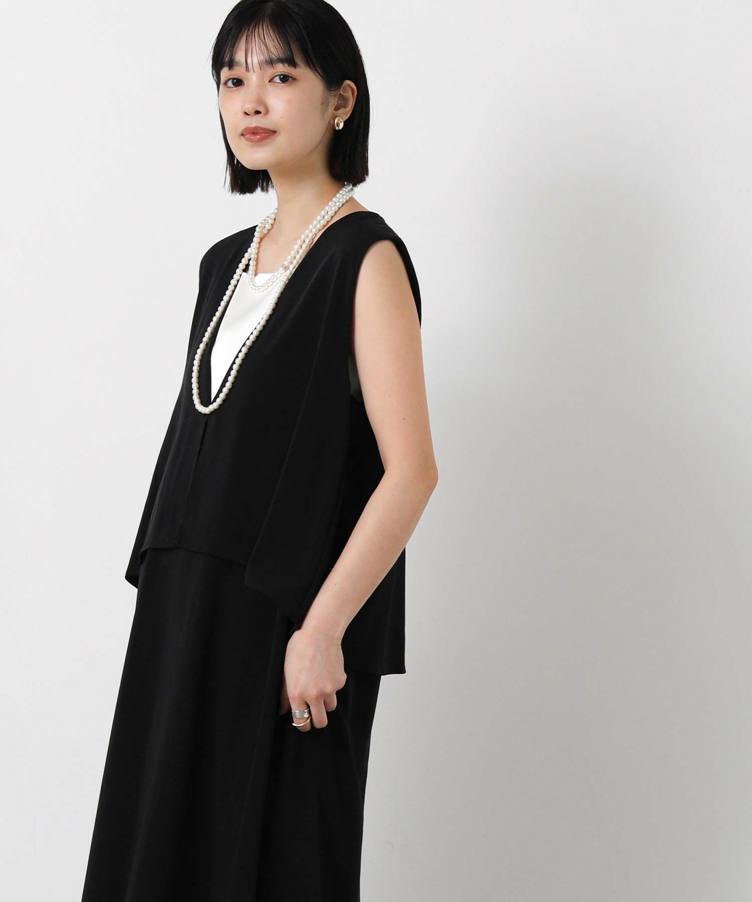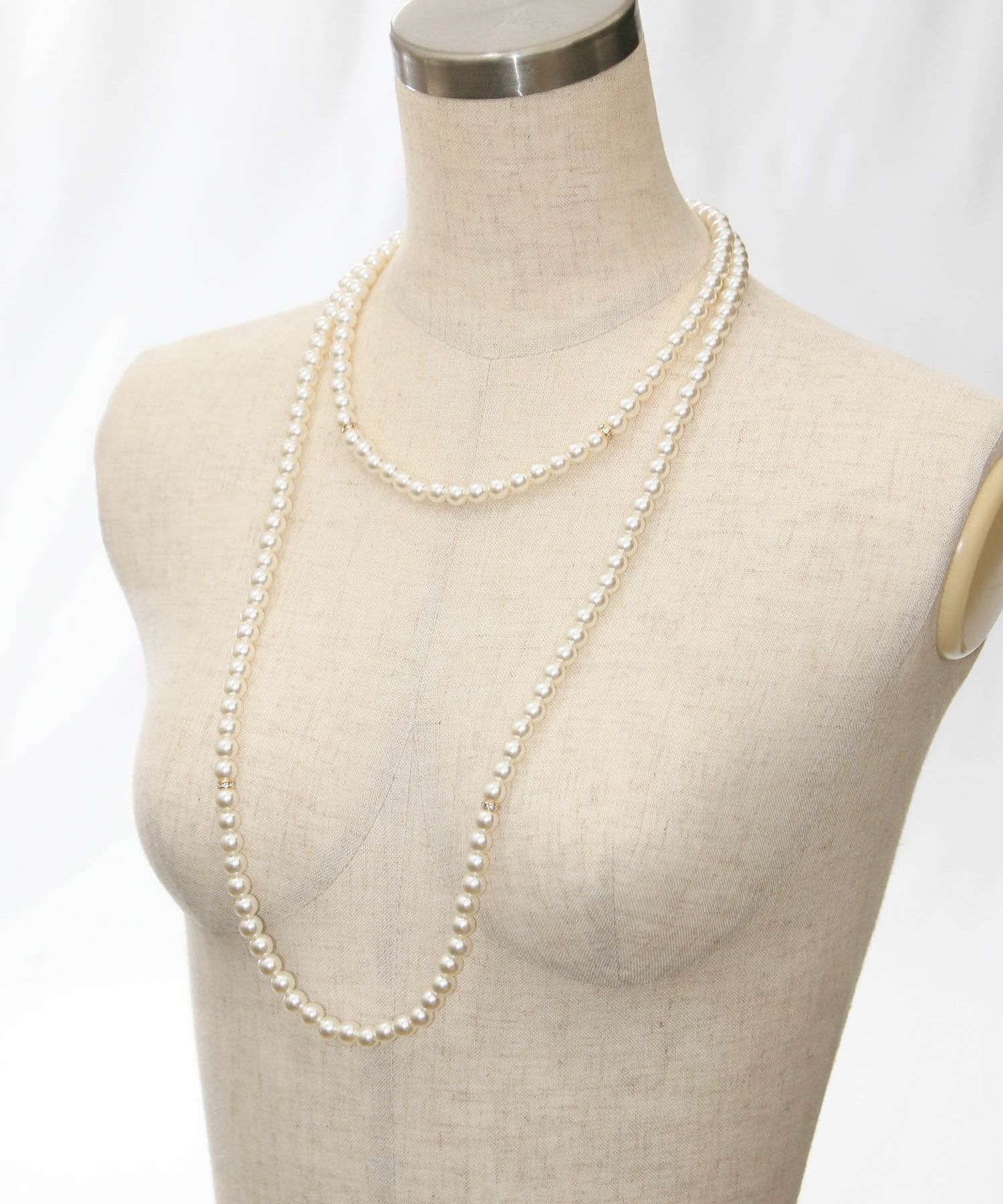 春にかけて増えるフォーマルなシーンに便利なパールネックレスは長さ違いの2連になっていて、別々使っても、重ねても使える3WAY仕様。