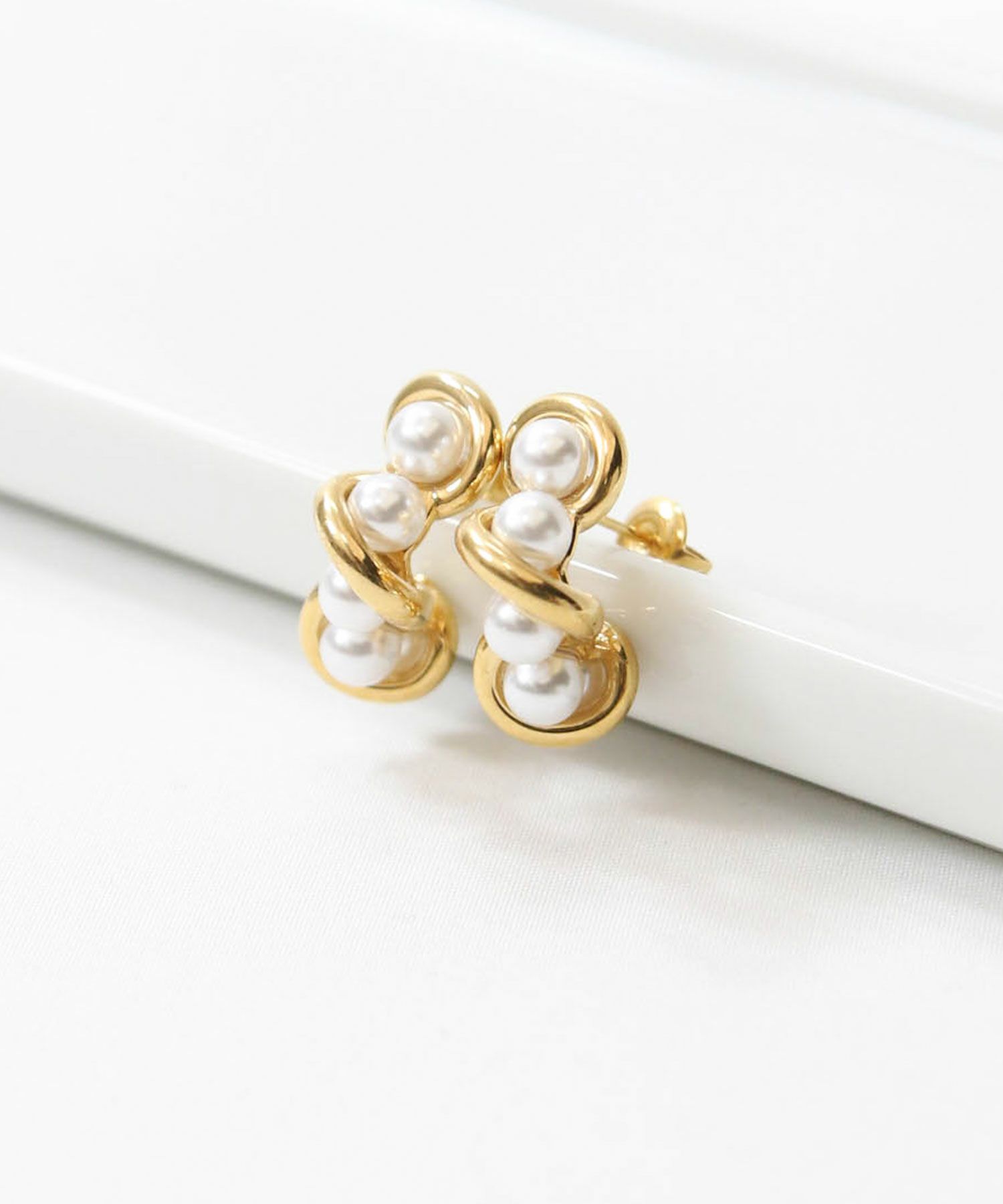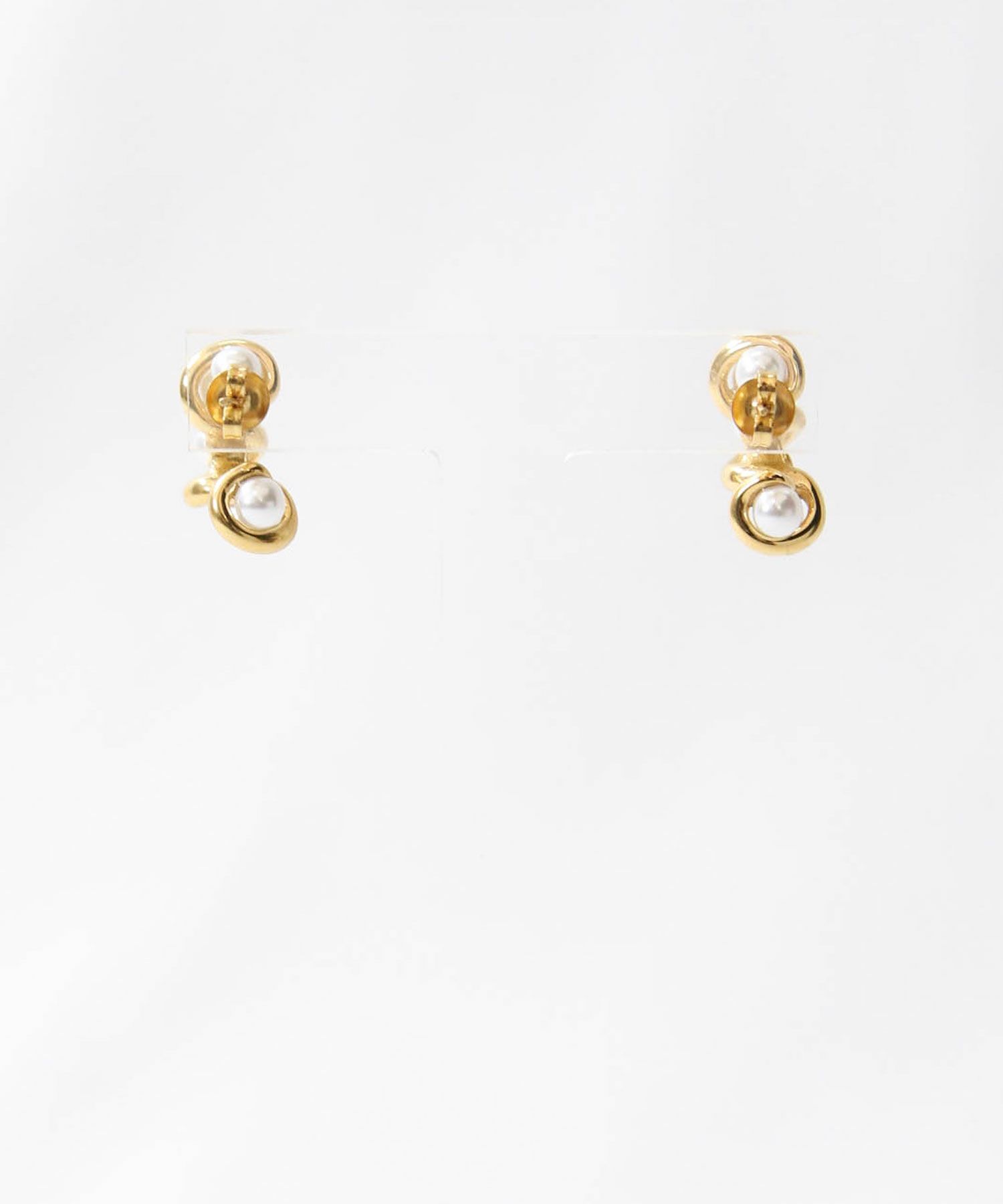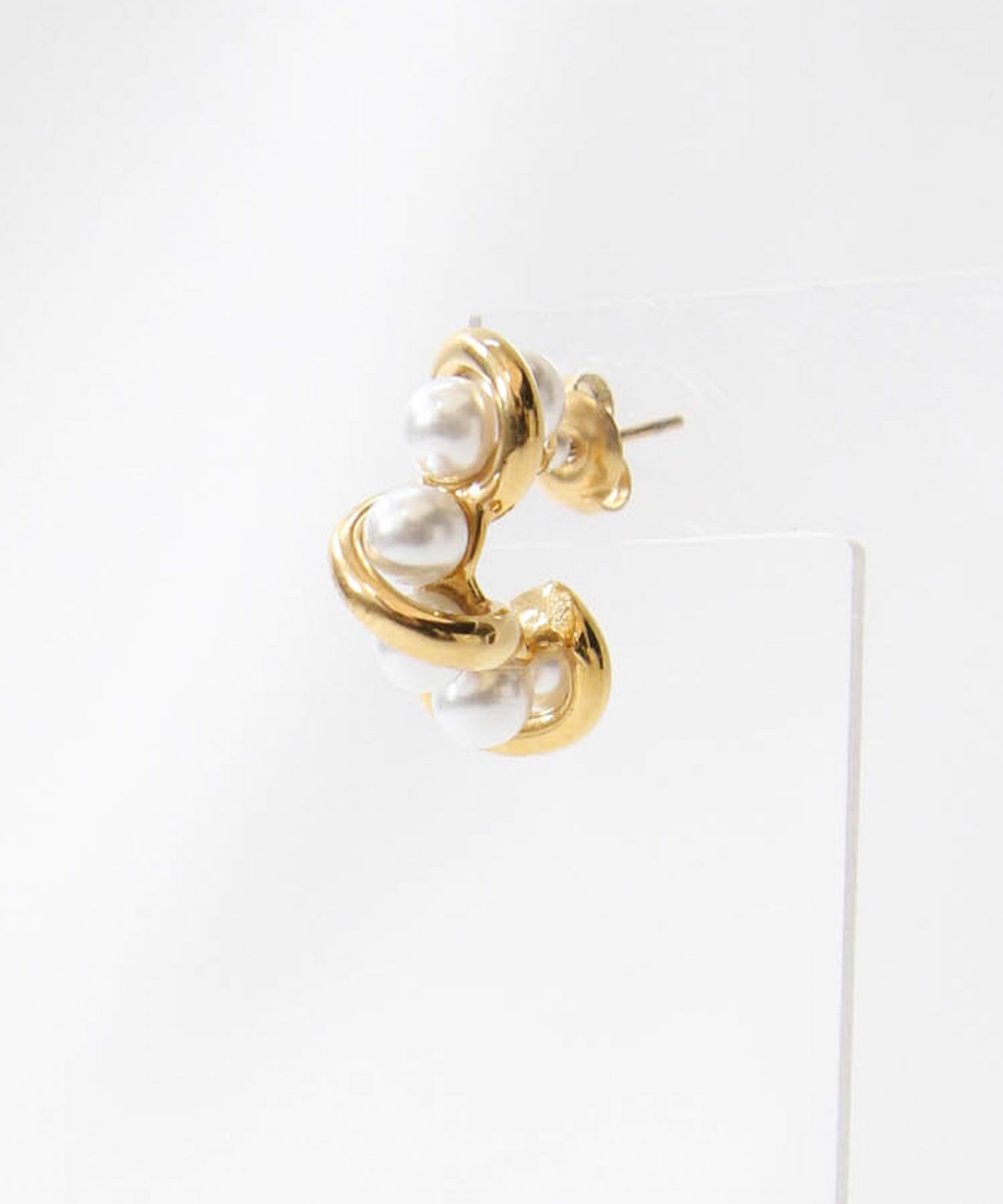 ゴールドを巻き付けたようなデザインとパール使いが華やかなピアス。