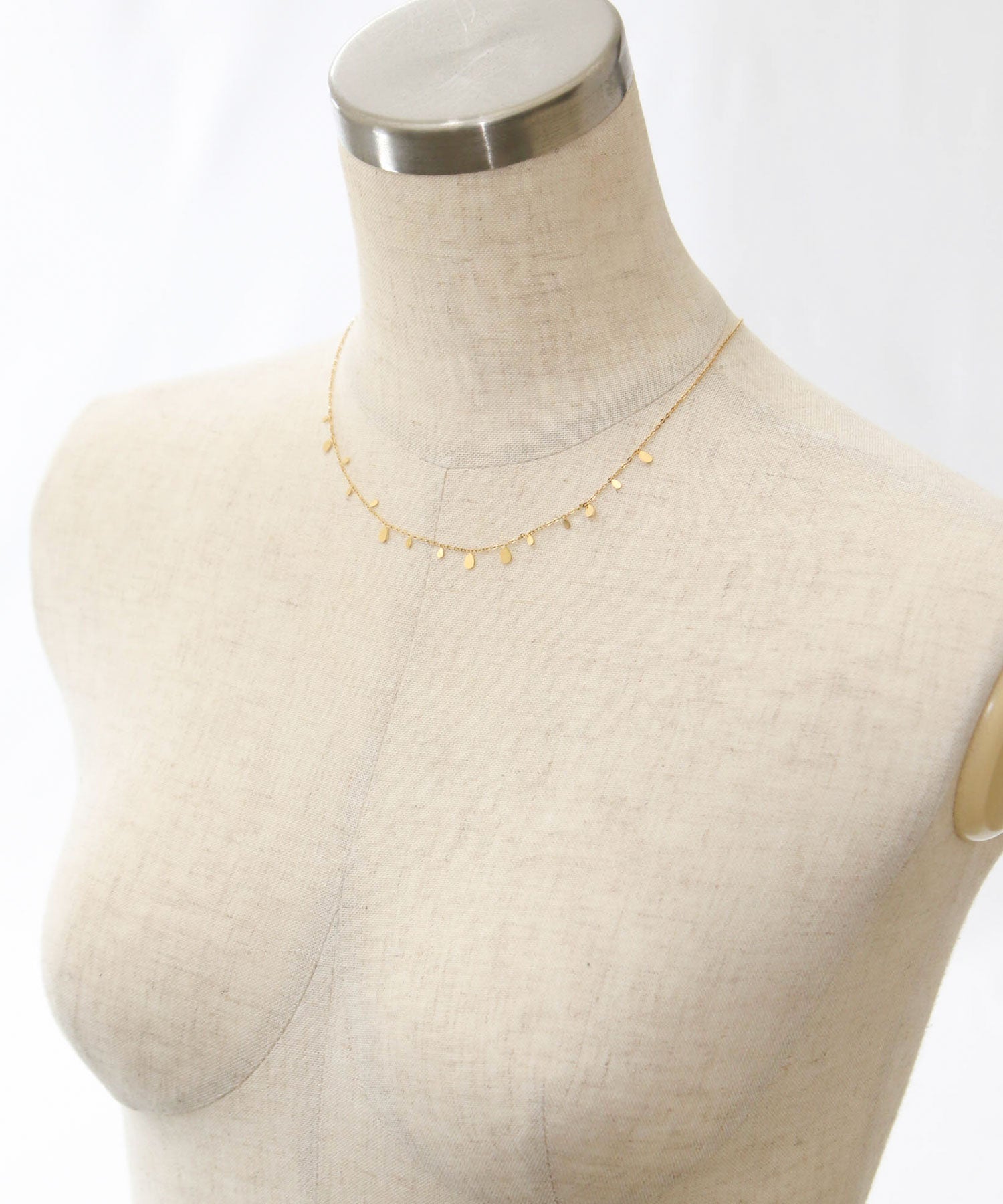 細めのチェーンも繊細で女性らしいデコルテラインを演出してくれます。