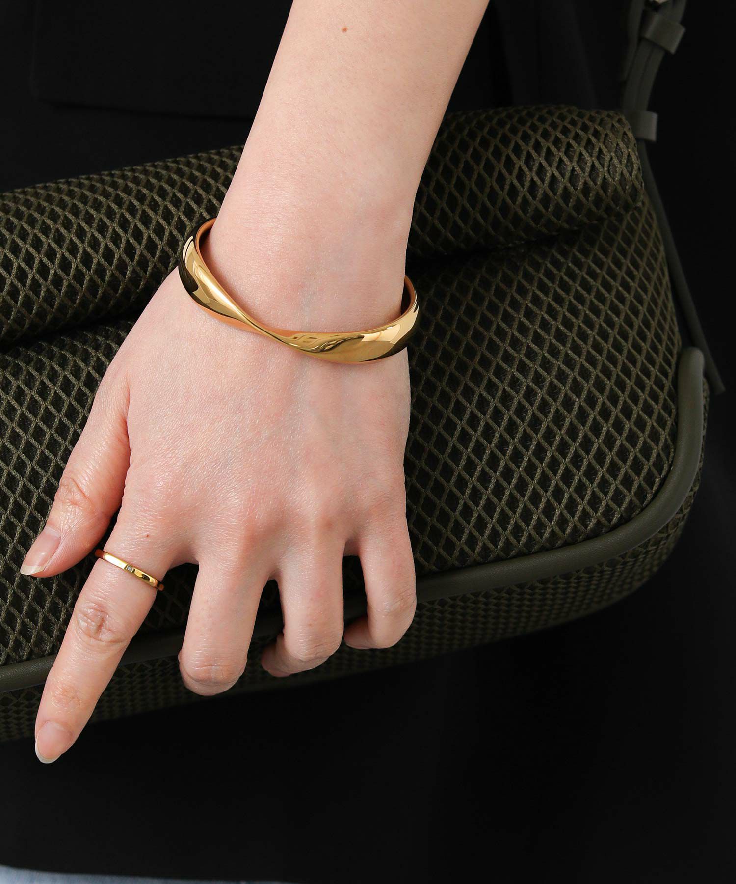手元を華やかに演出してくれるゴールドバングル。