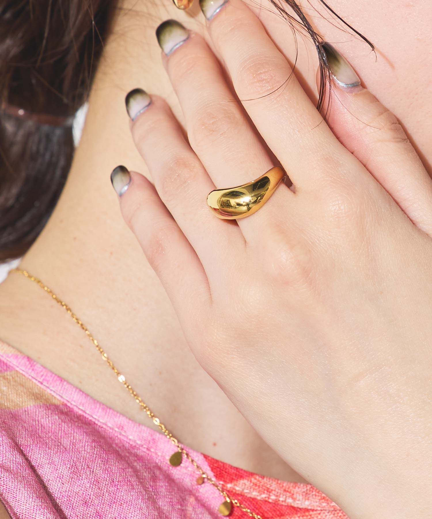 適度にボリュームのあるリングは指を華奢な印象に魅せてくれます。