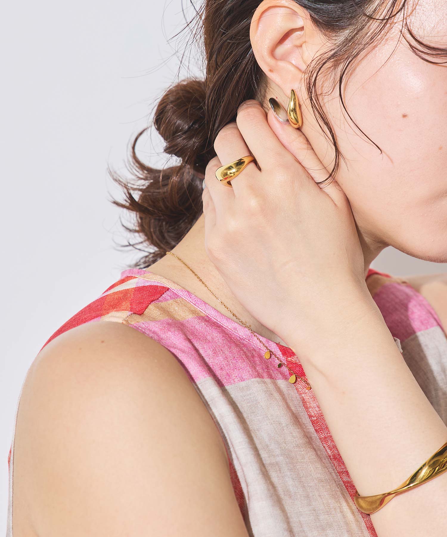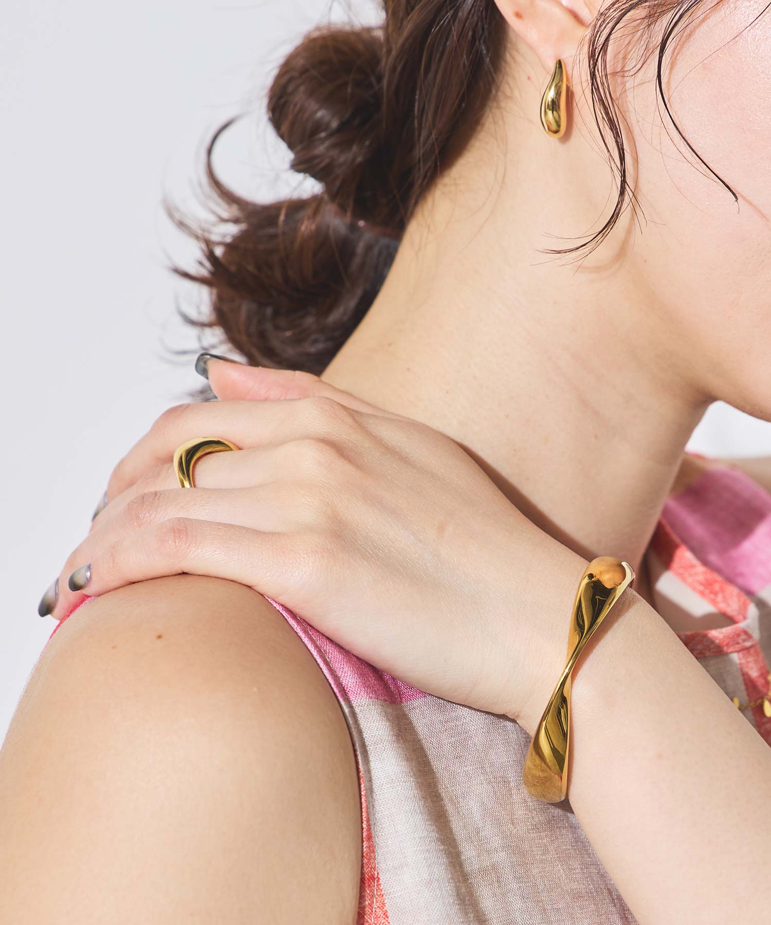 薄着になってくる春夏のコーデ、手元にジュエリーを仕込むだけでぐっと華やかな印象に。