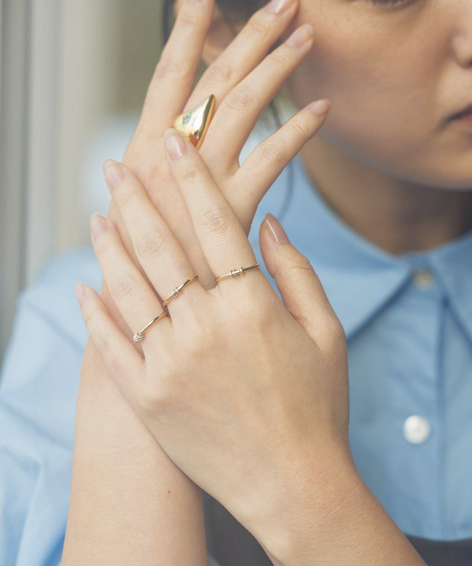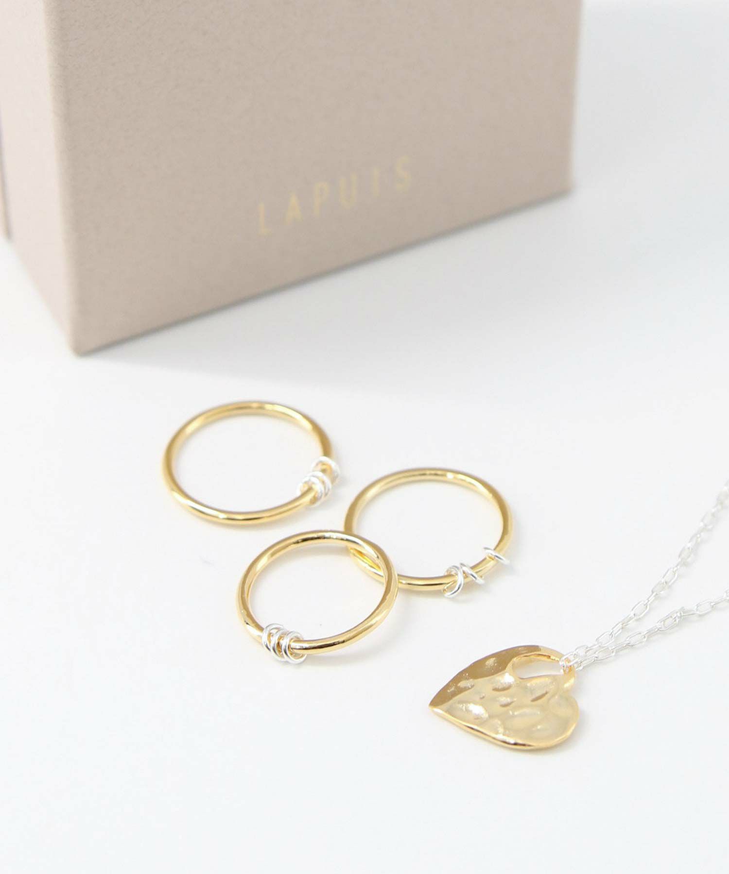 【LAPUIS/ラピュイ】から華奢なシルエットが繊細な印象を与える3セットリングをセレクト。