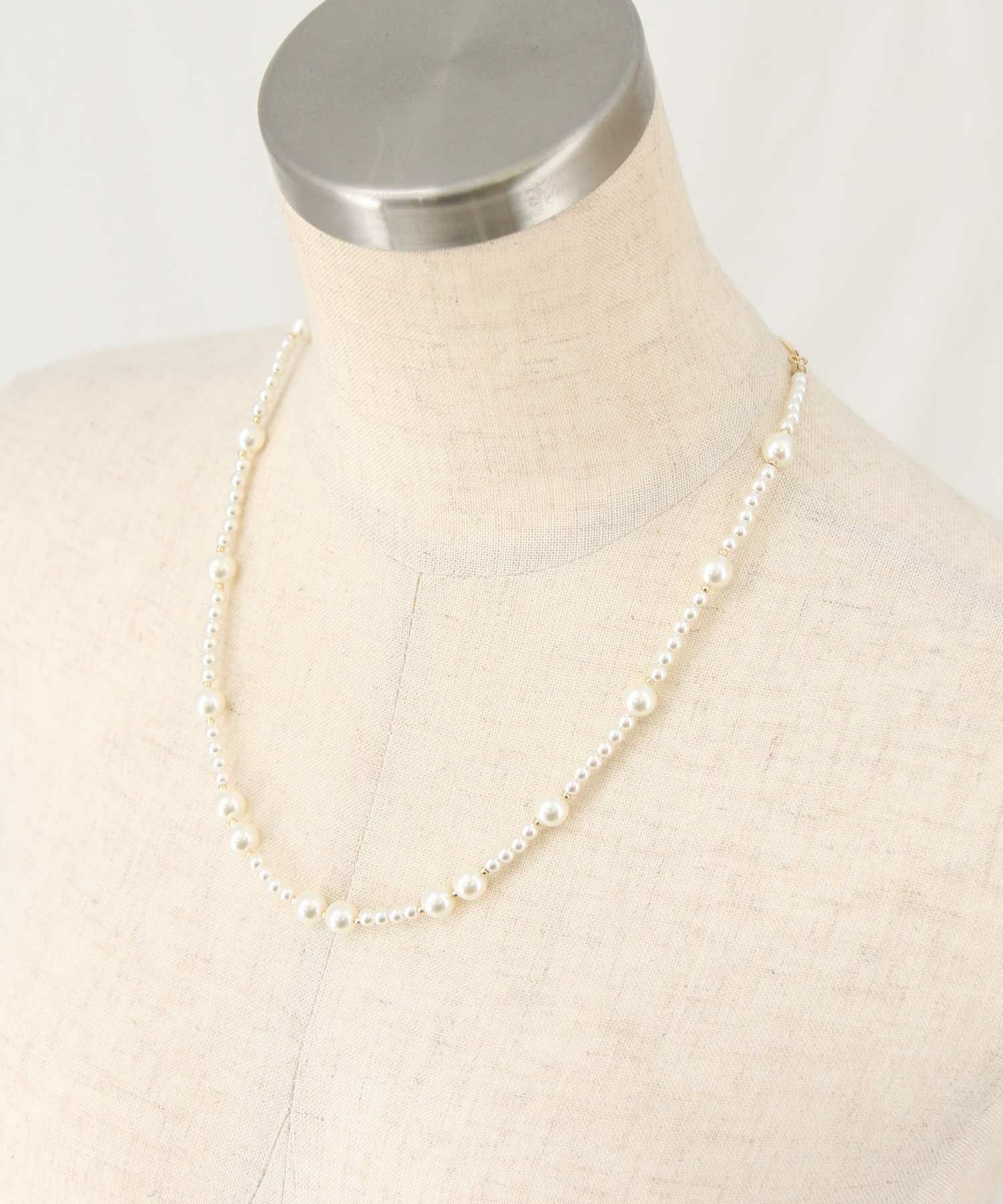 アジャスターで簡単に長さ調整が出来るパールネックレス。