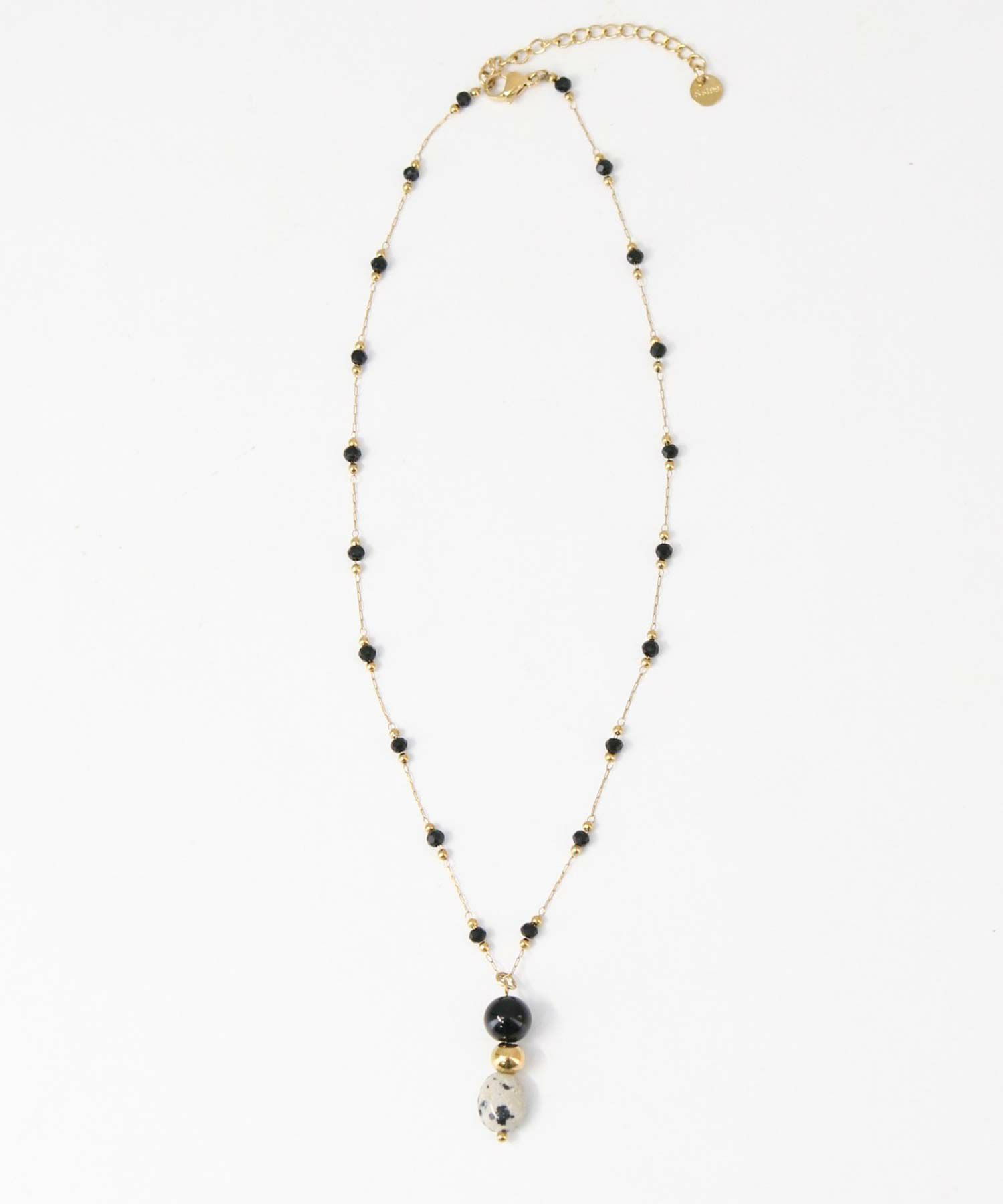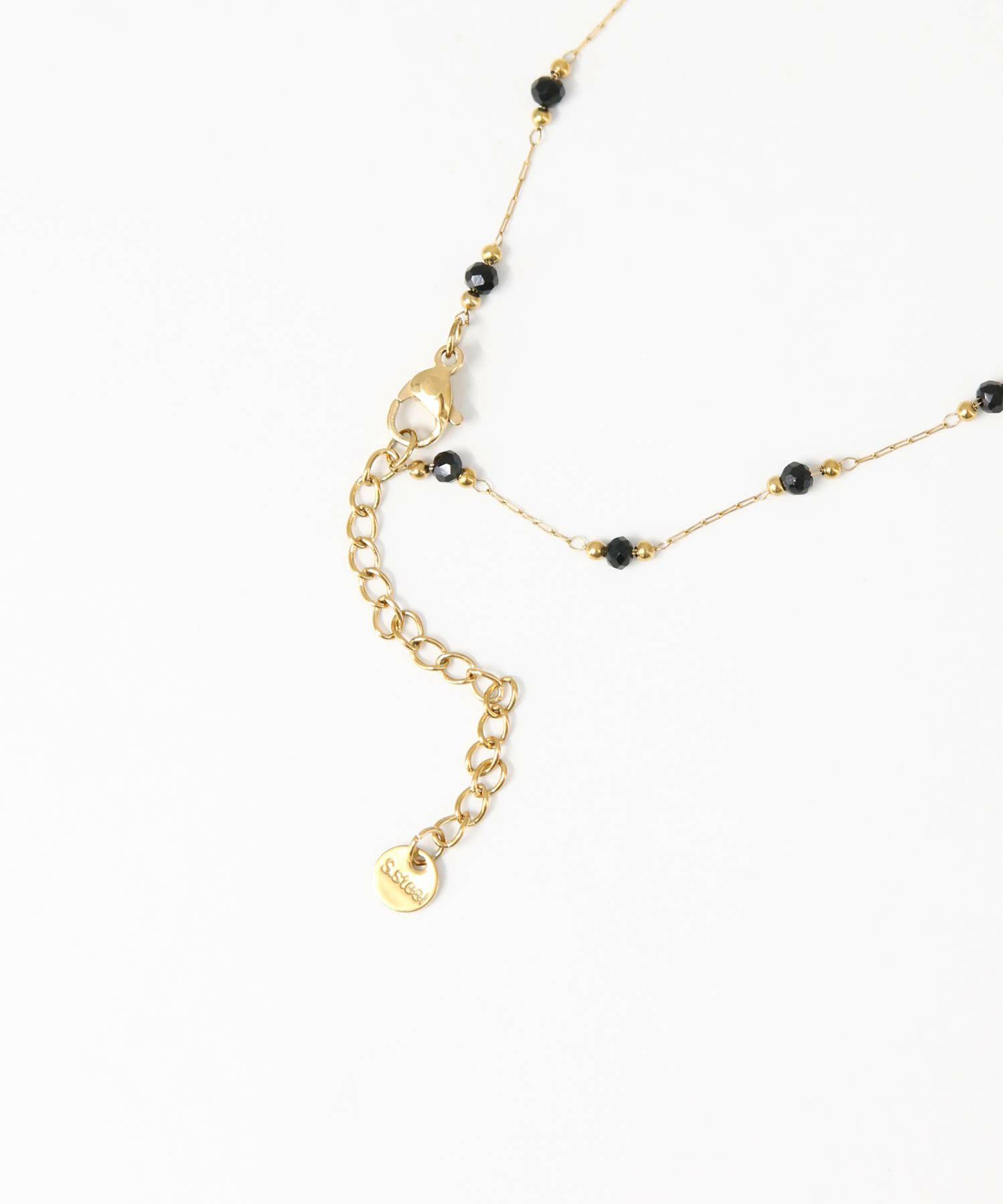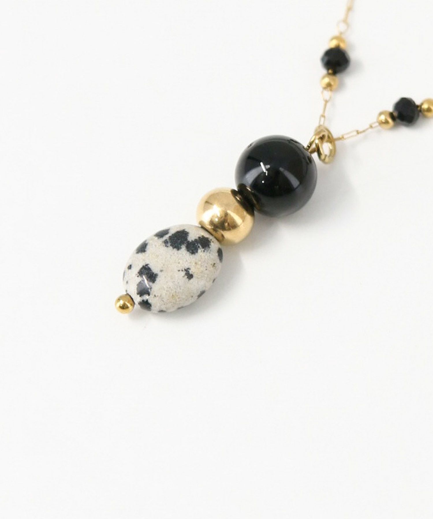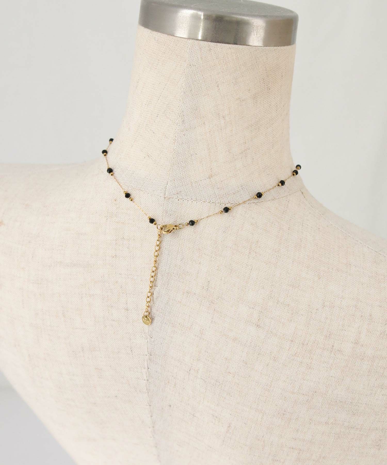ストーンがスタイリングのポイントになるステンレス素材のネックレス。