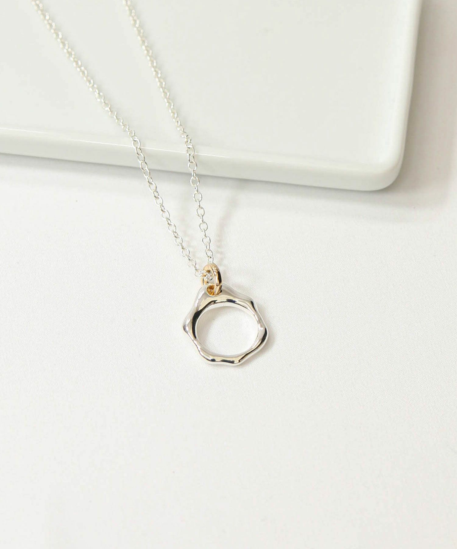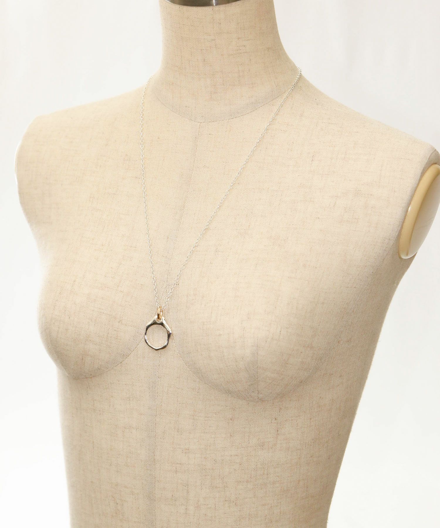 存在感のあるリングがポイントのロングネックレス。