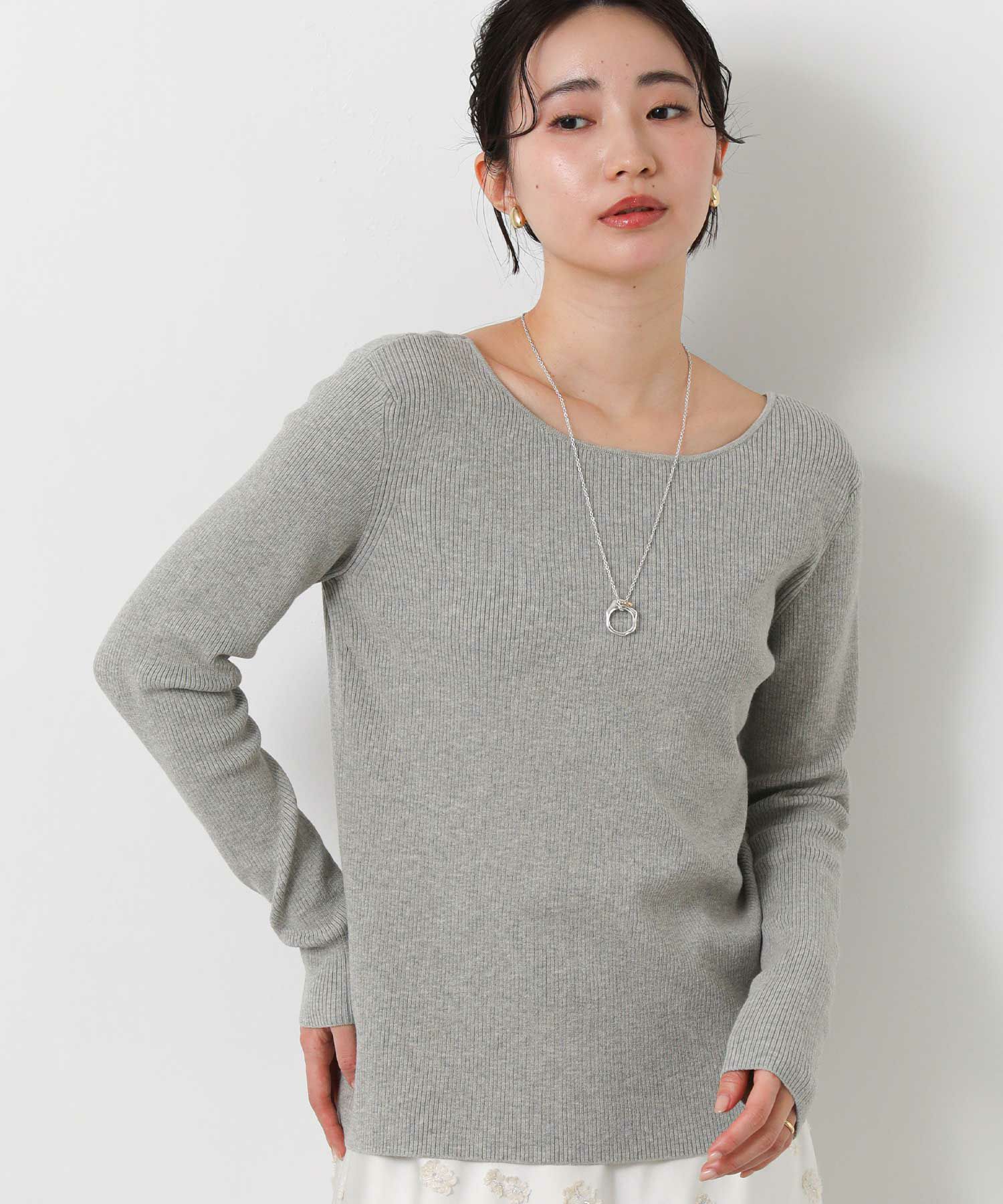 程よくボリュームのあるネックレスは、シンプルになりがちなニットスタイルにアクセントをプラスしてくれます。