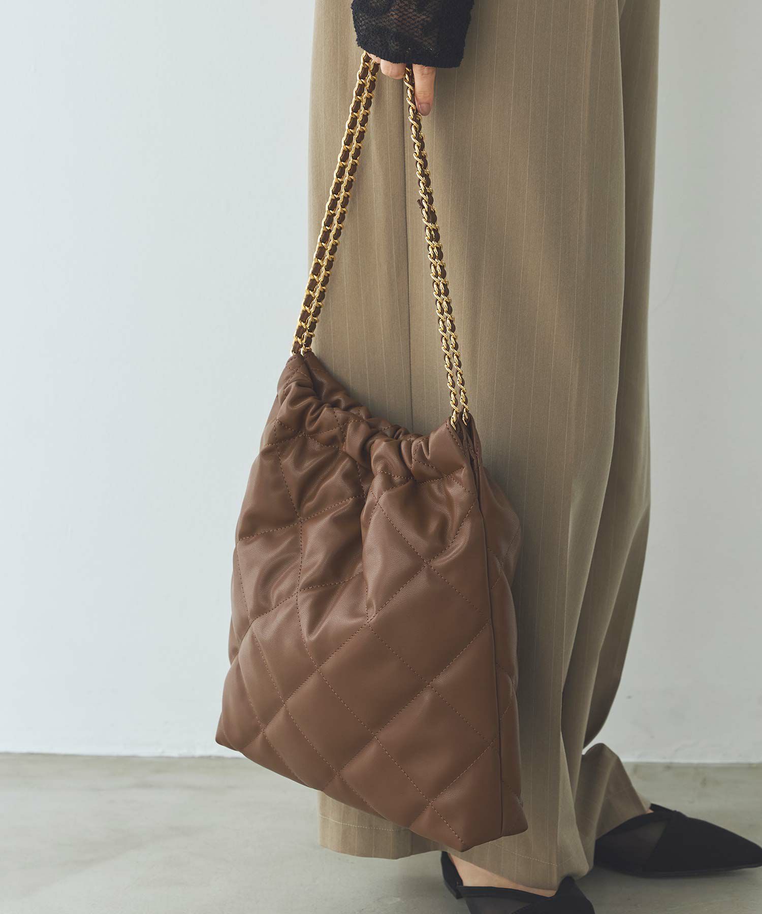 アウターを着る時期も肩掛けしやすいショルダーチェーンが、秋冬の装いのポイントに。