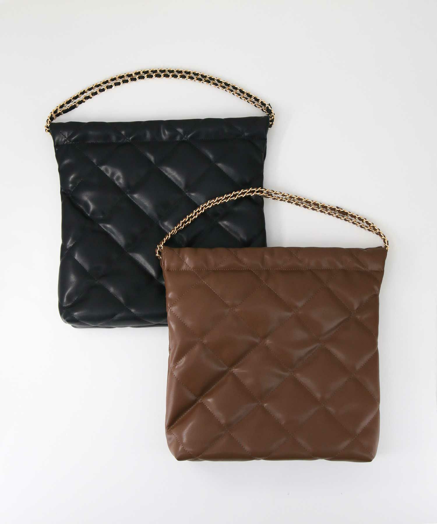 ベーシックな合皮素材を使用したキルティングトートバッグ。