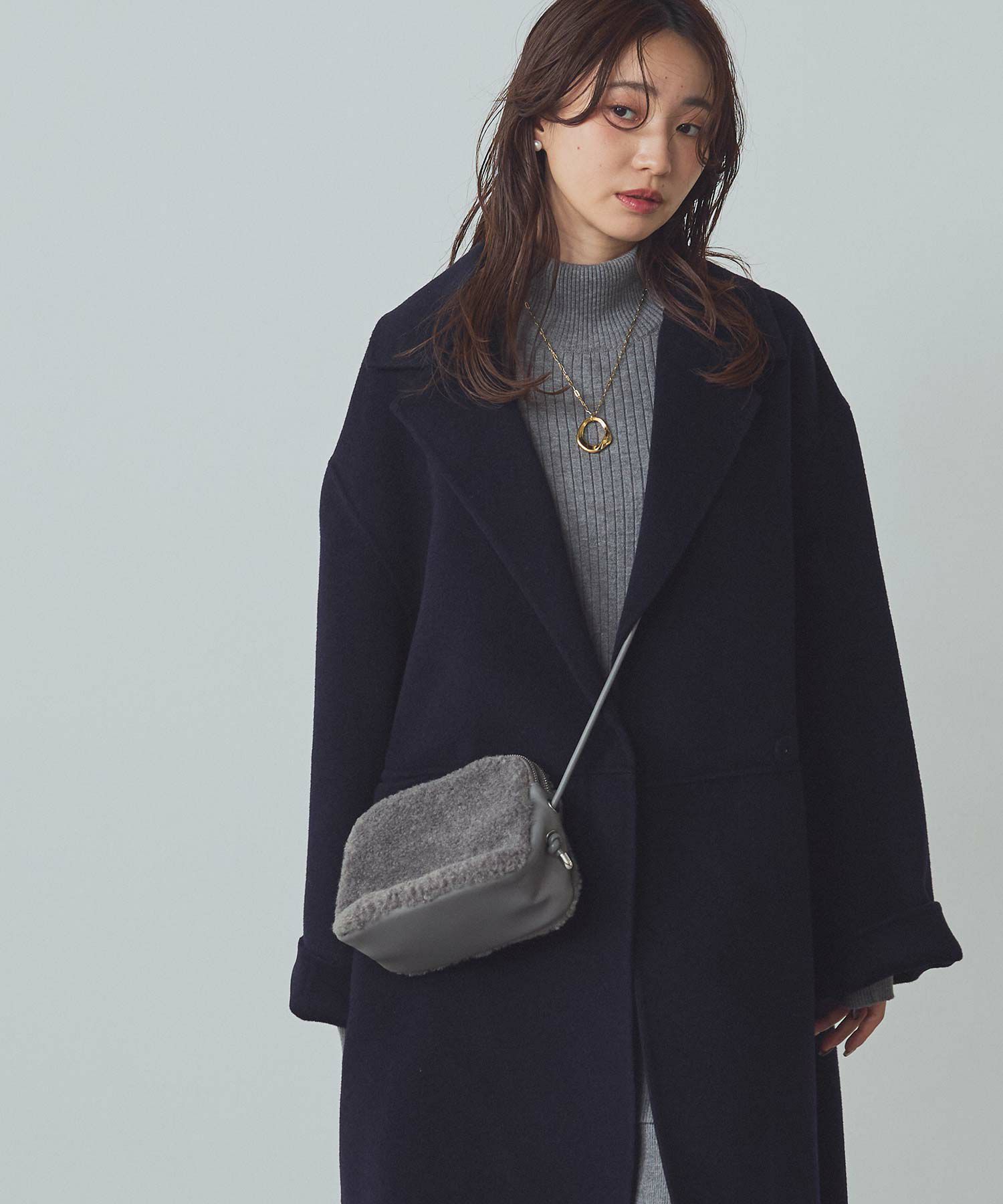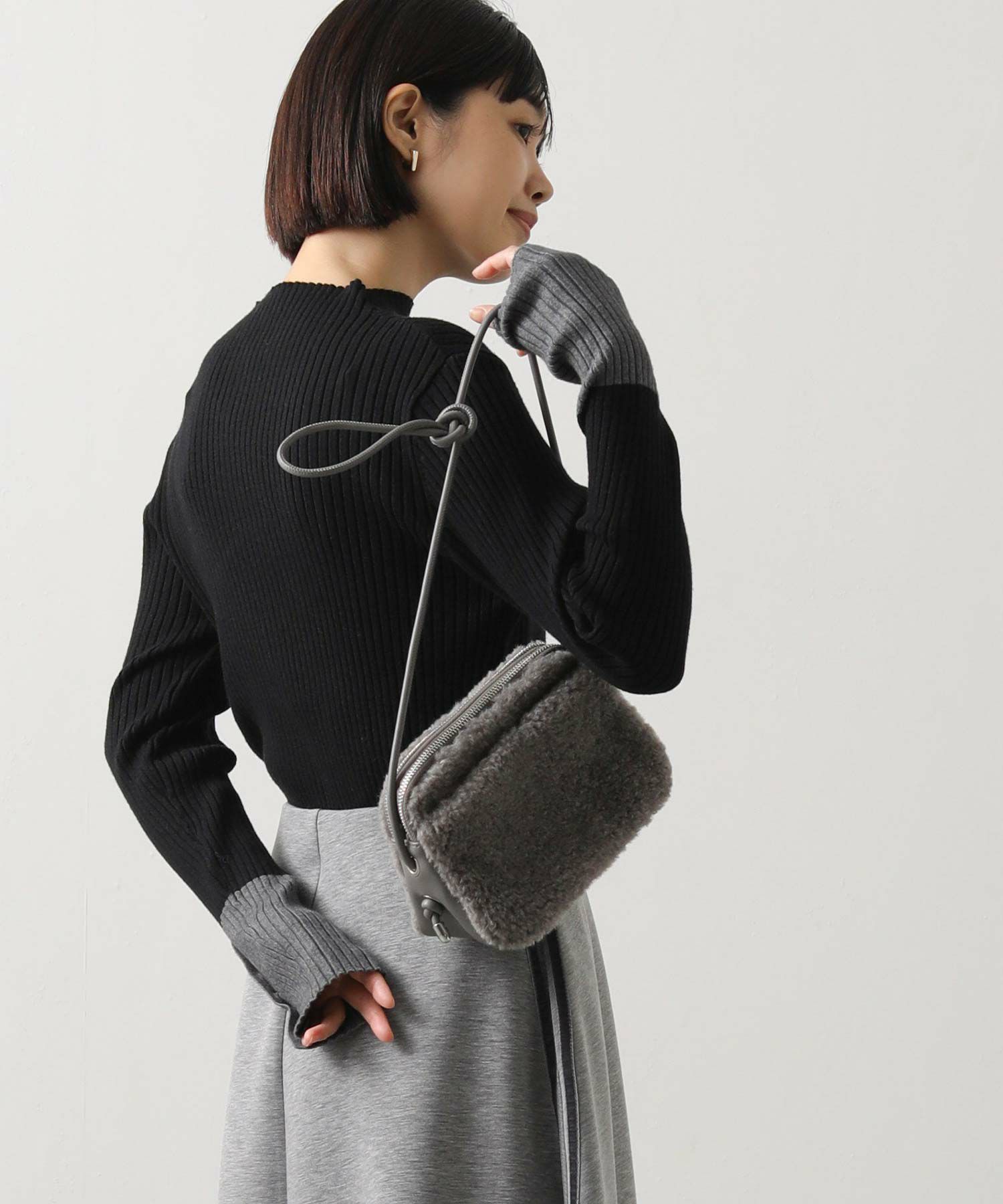 秋冬のスタイリングのポイントになるボアポシェット。