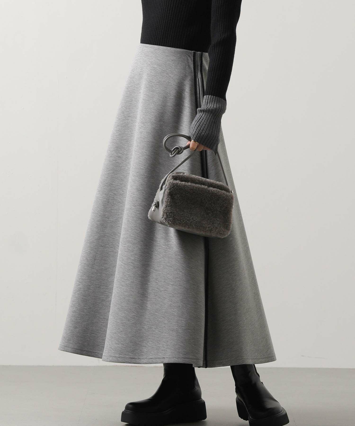 ミニマルなデザインと、きめ細かいボアとレザーライクのコンビが大人も持ちやすいアイテム。