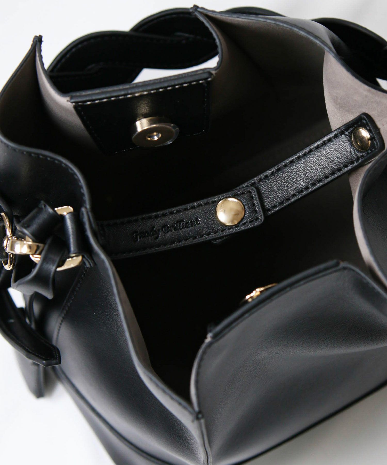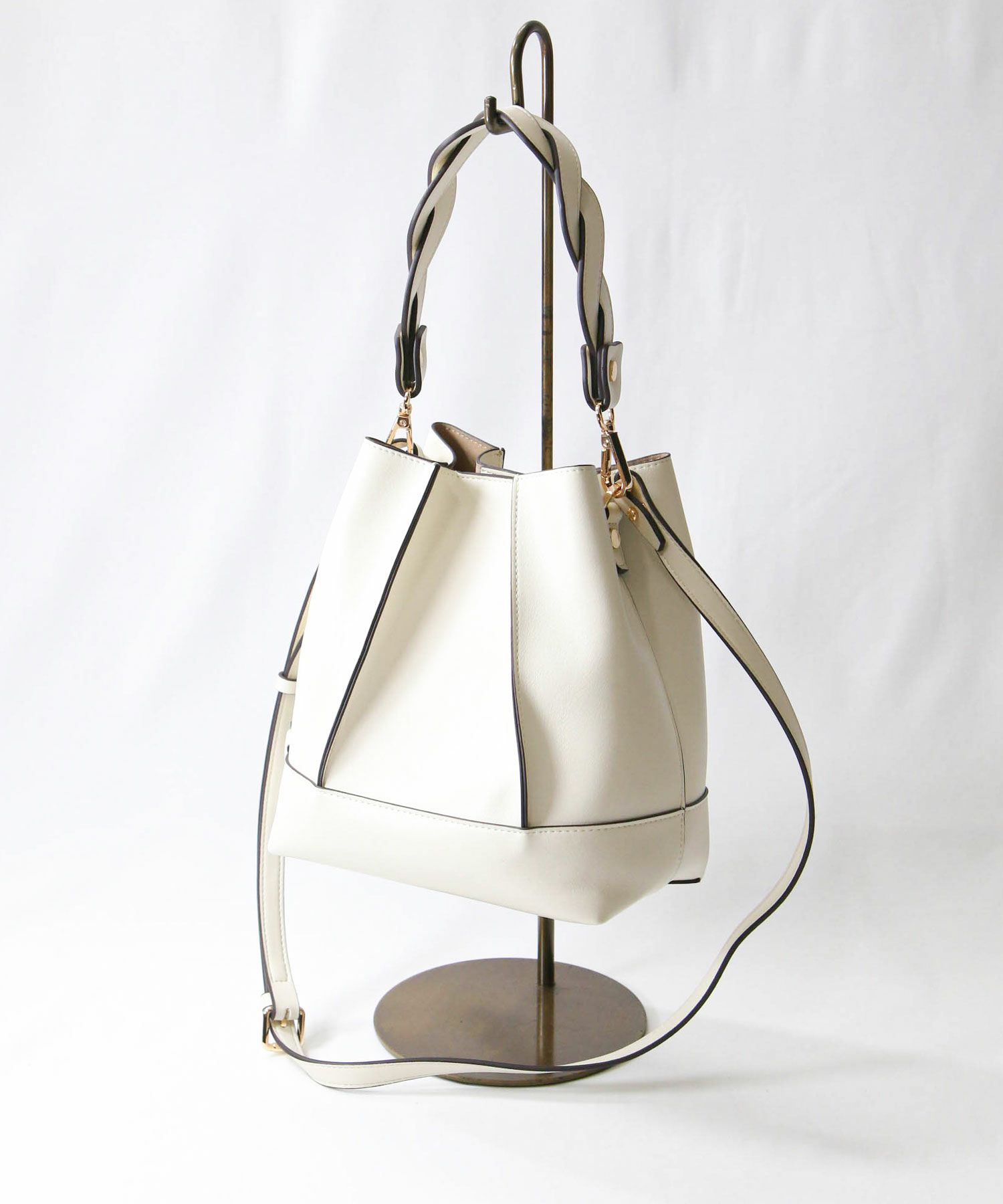 ハンドルはツイストされたデザインのハンドルとショルダーストラップの2way仕様。