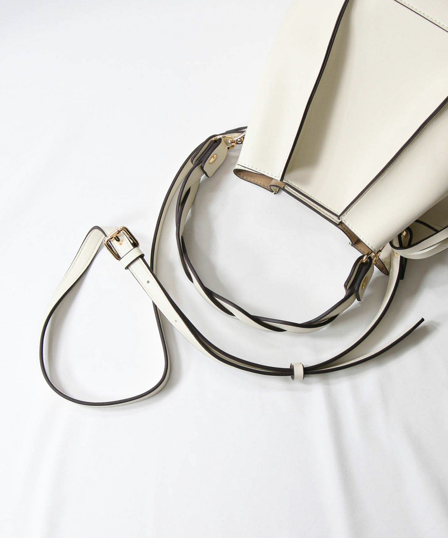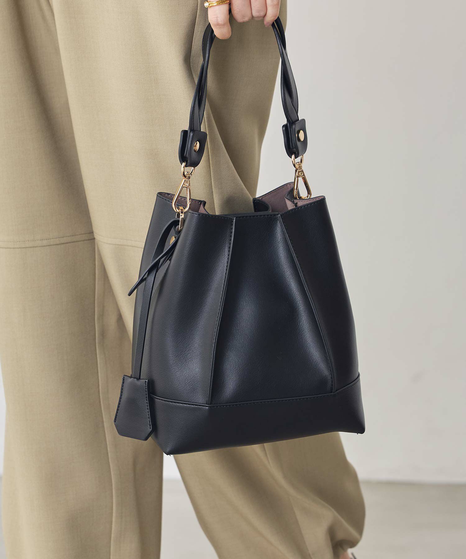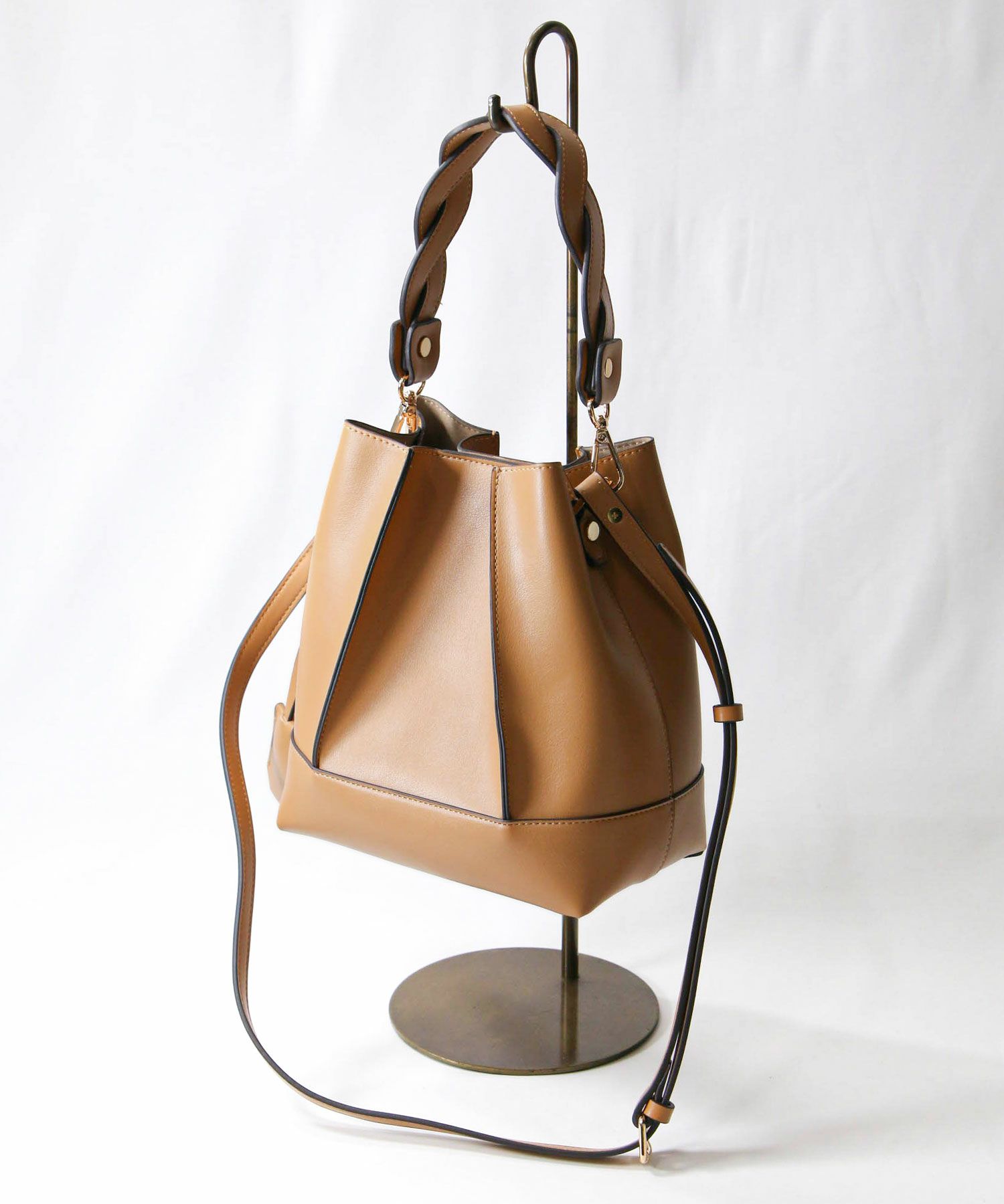 ハンドルはツイストされたデザインのハンドルとショルダーストラップの2way仕様。