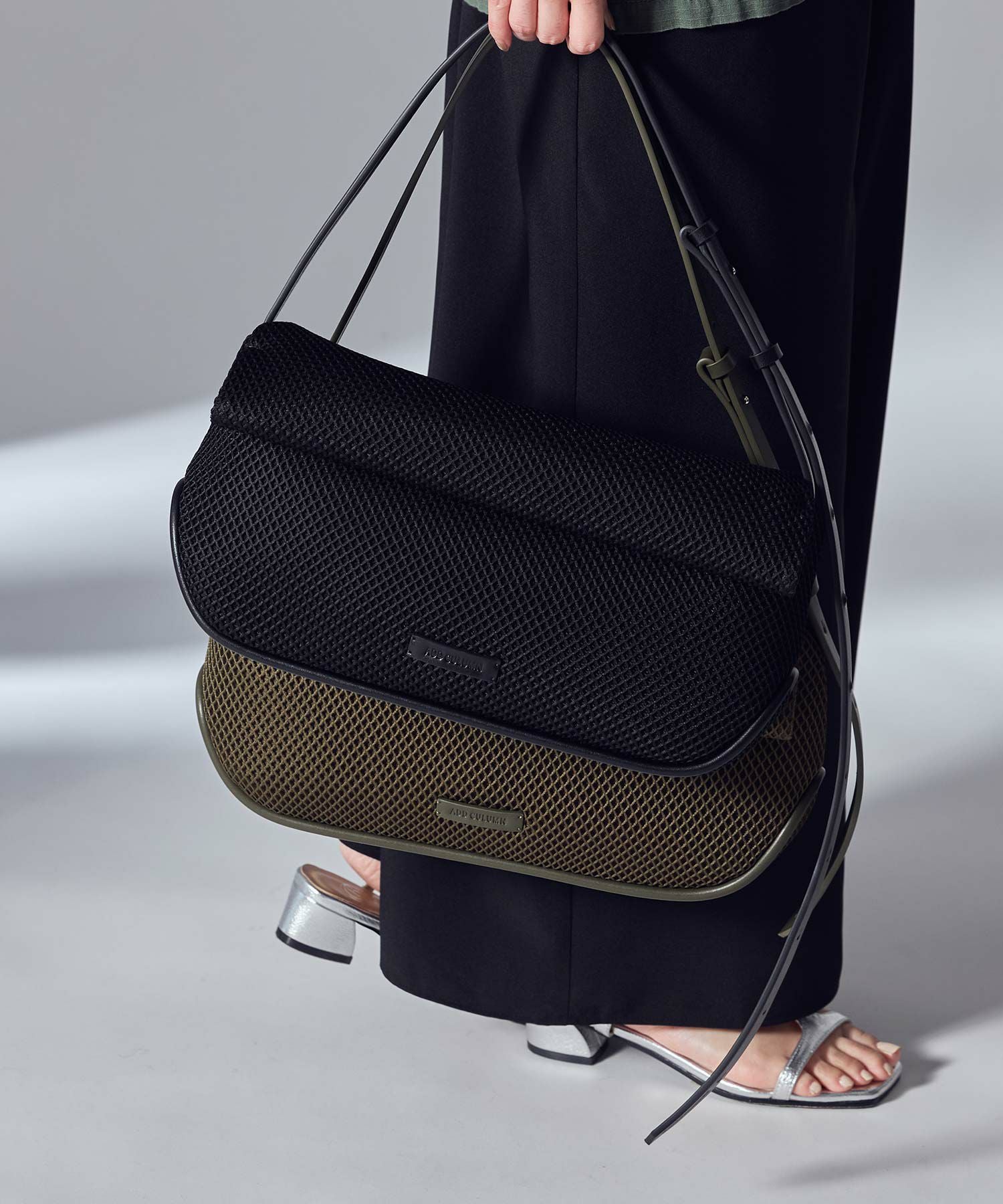 ADDCULUMN(アドカラム)かた、フラップをロールしたデザインと太めのパイピングが特徴の「ROLLA(ローラ)」シリーズから春夏らしいメッシュ素材のバッグが登場!
