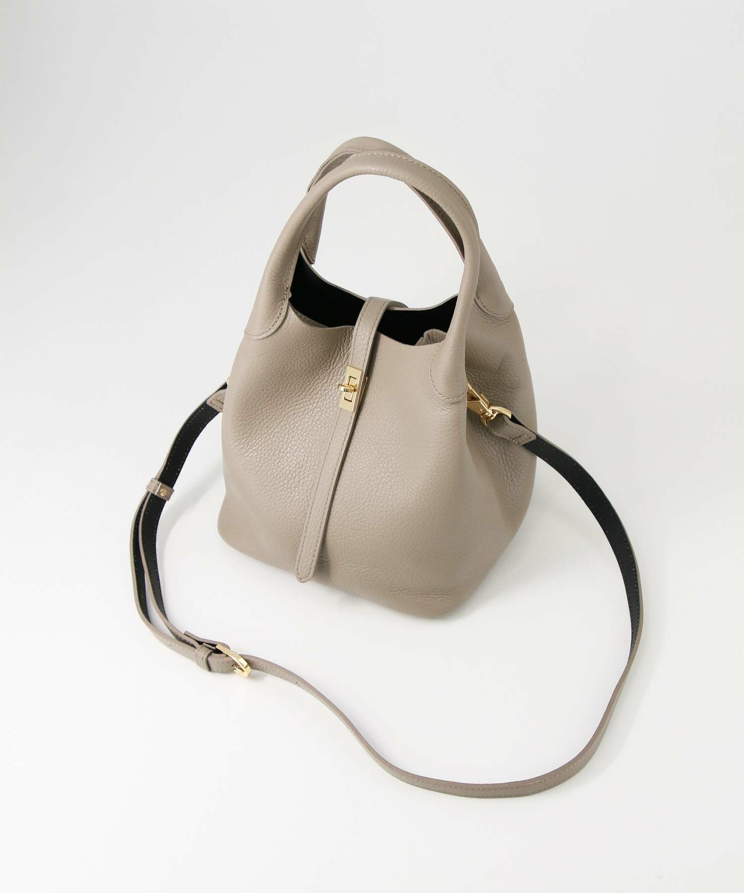ソフトな質感と軽さが特徴のイタリアンダブルフェイスレザーを使用したベルト付きバッグ。