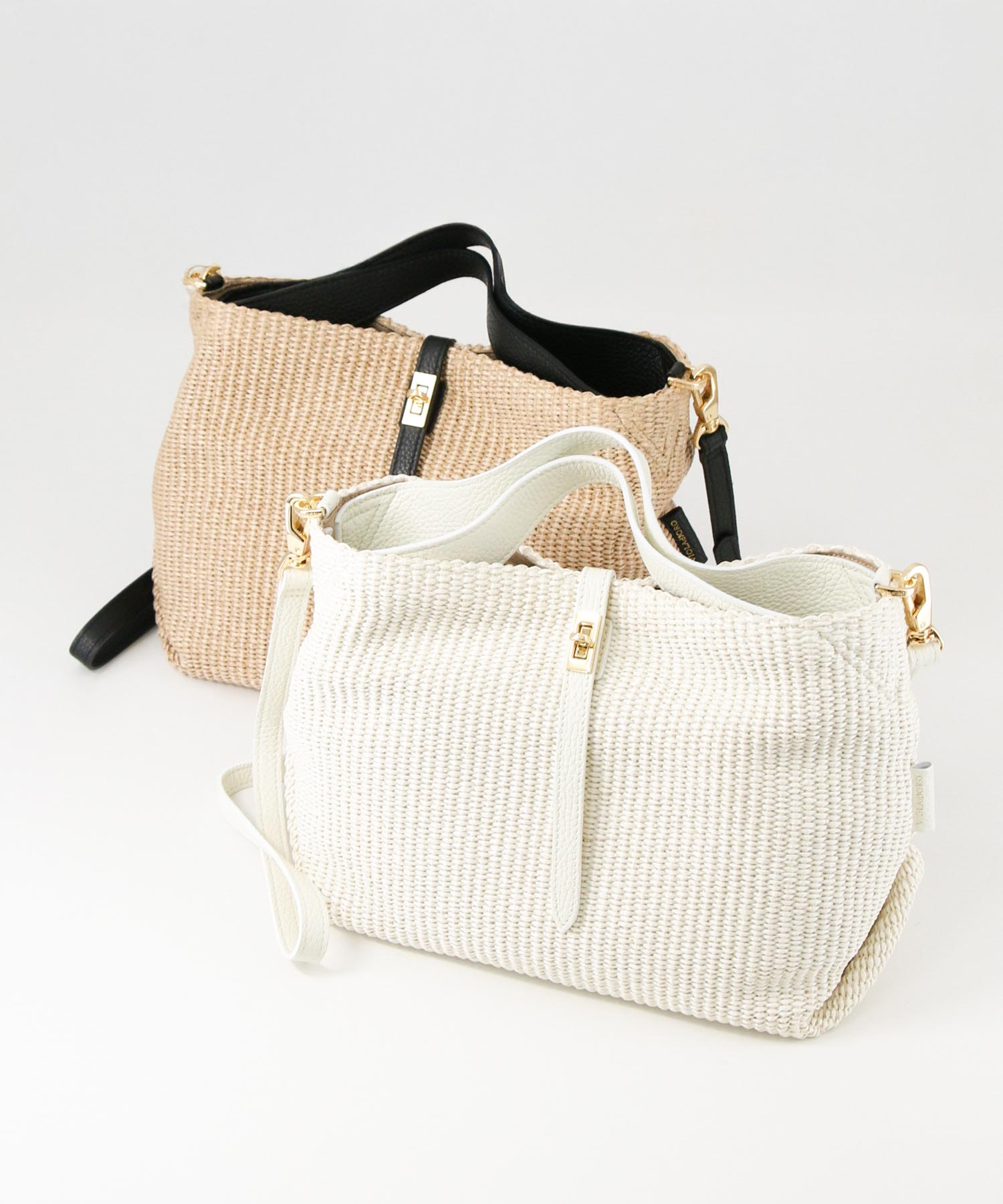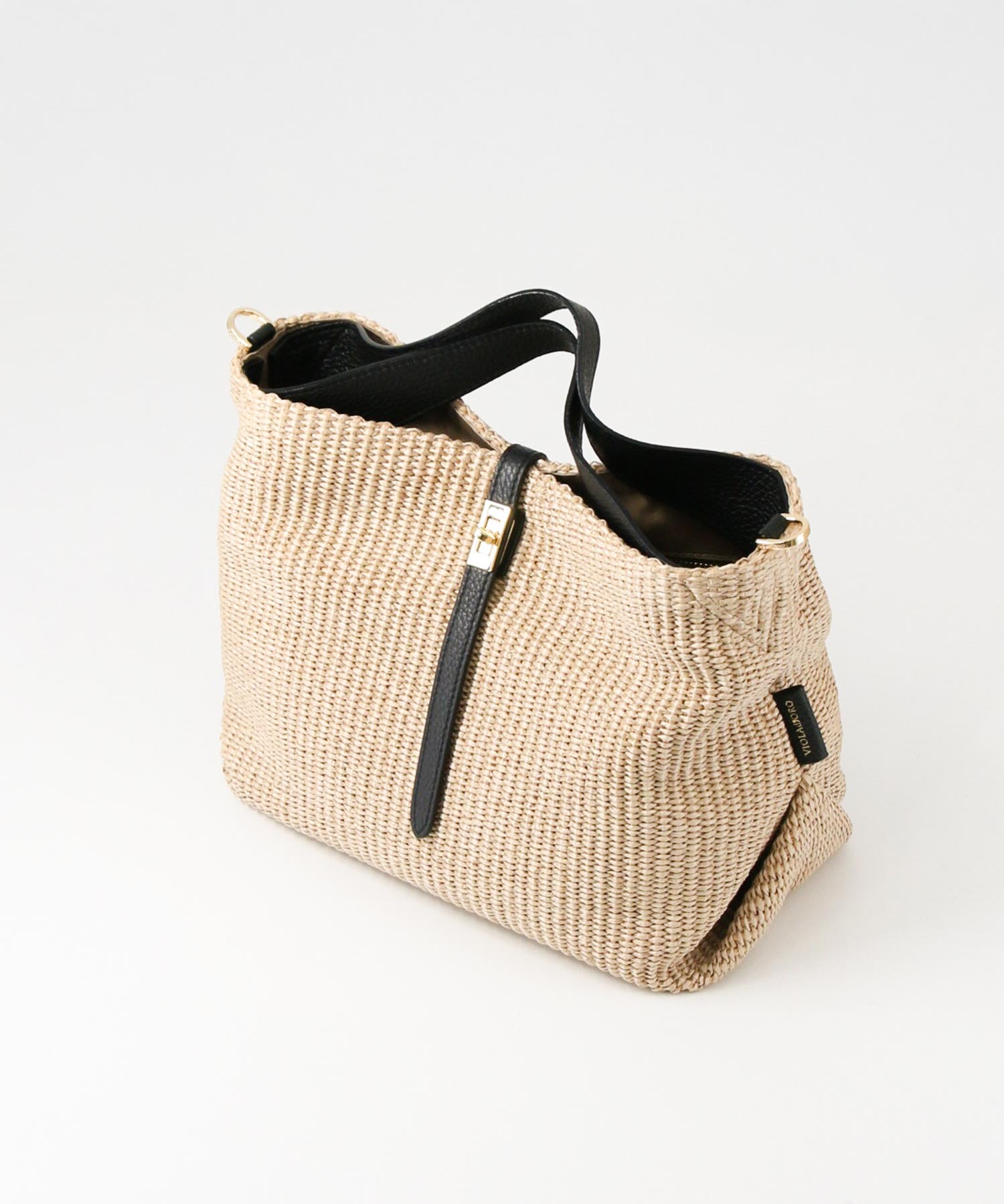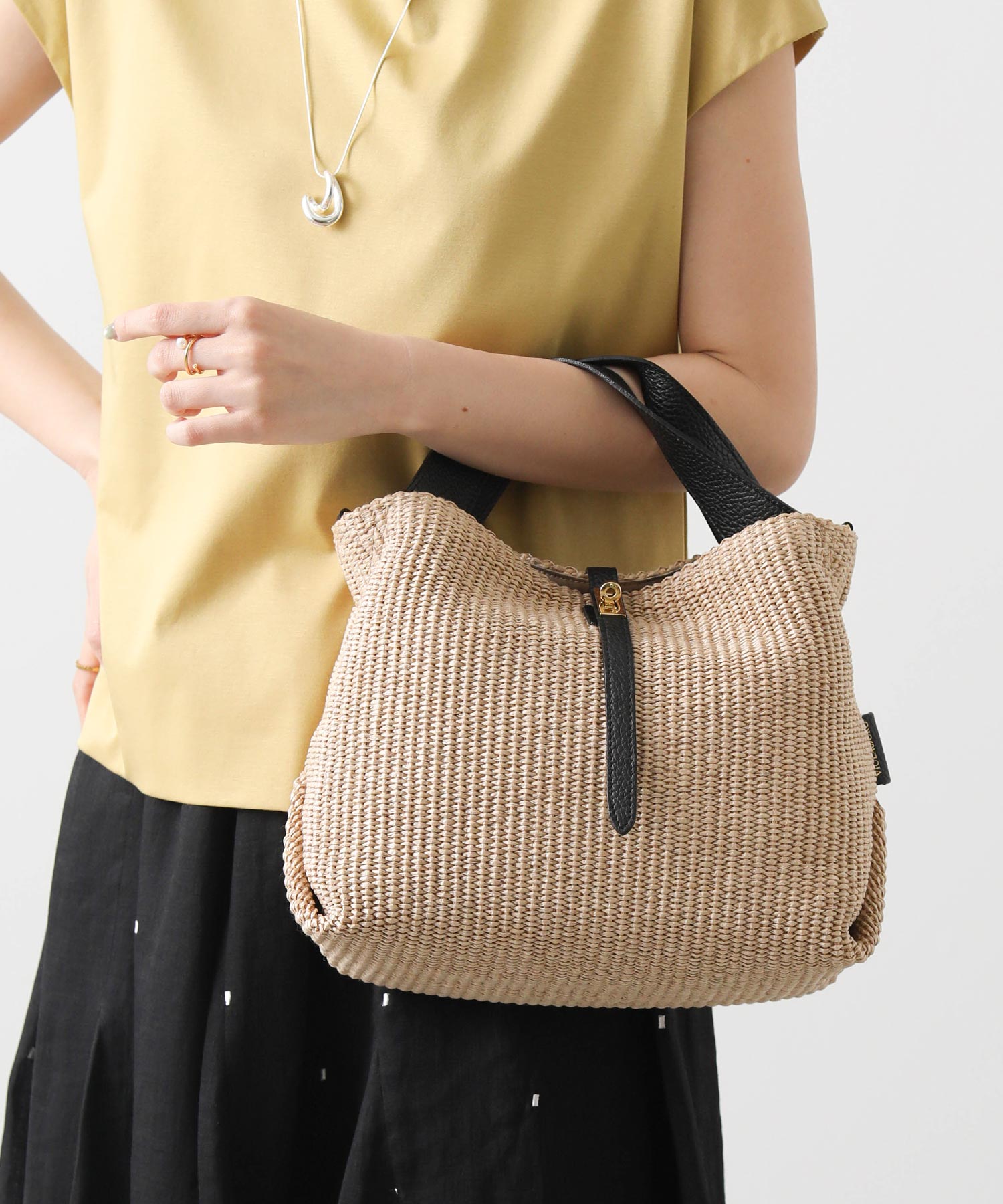 上品な風合いが魅力のラフィア調の素材を使用したトートバッグ。