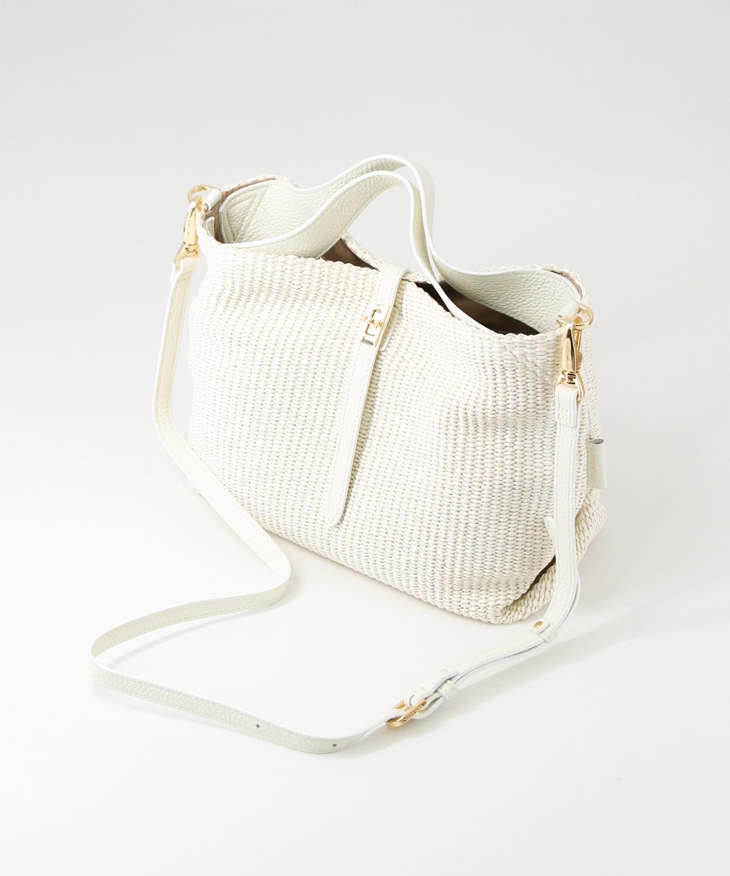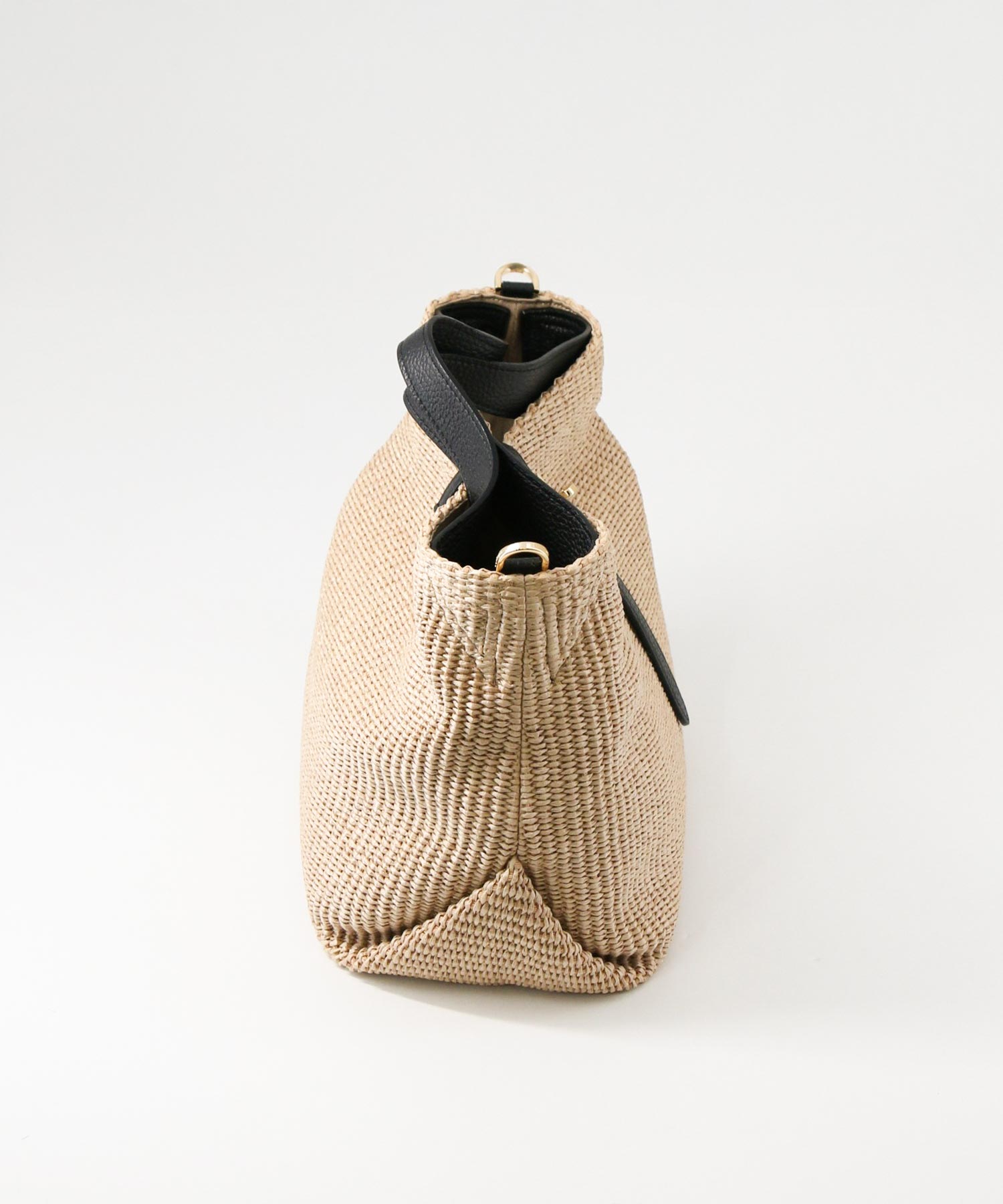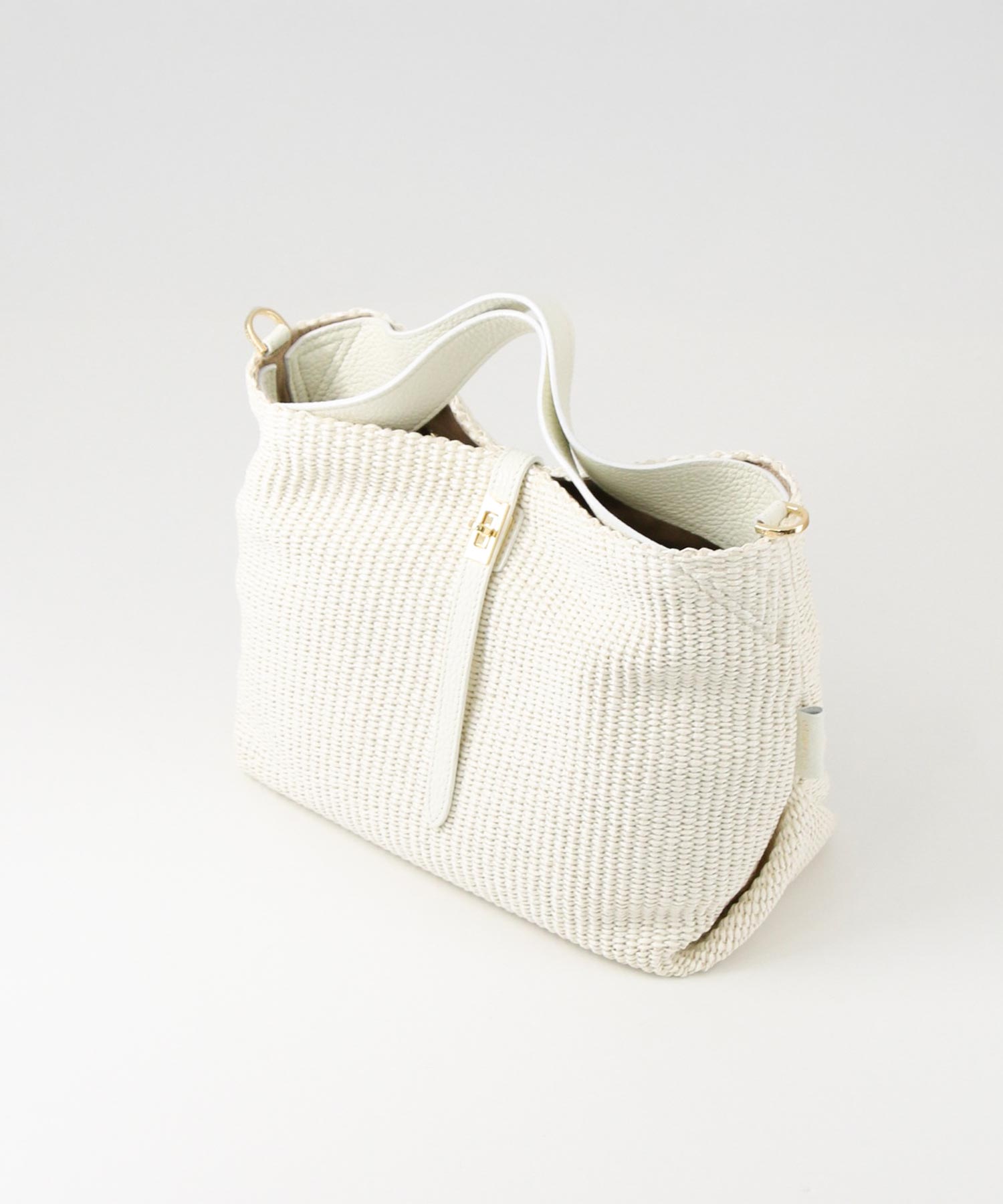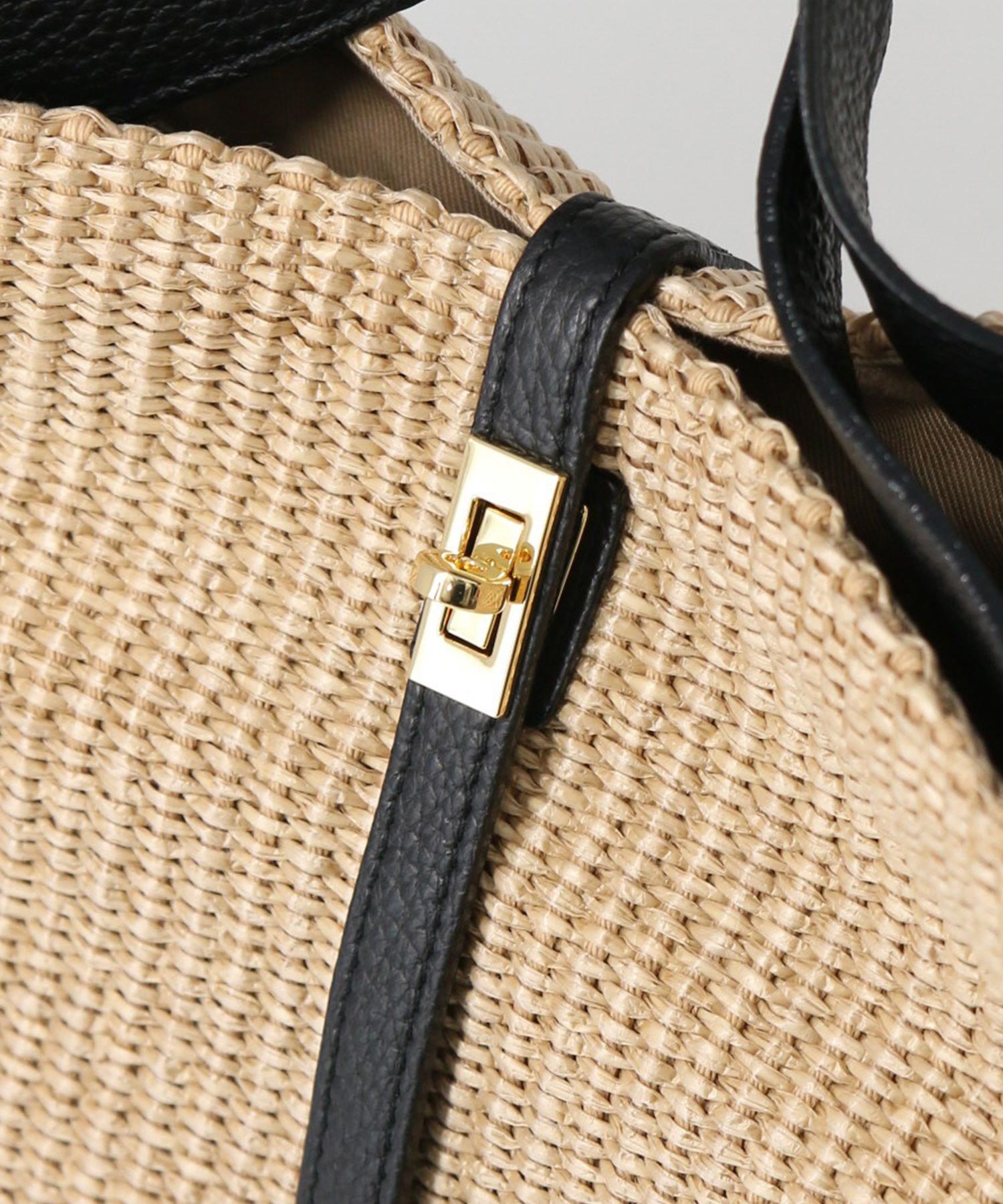 上品な風合いが魅力のラフィア調の素材を使用したトートバッグ。