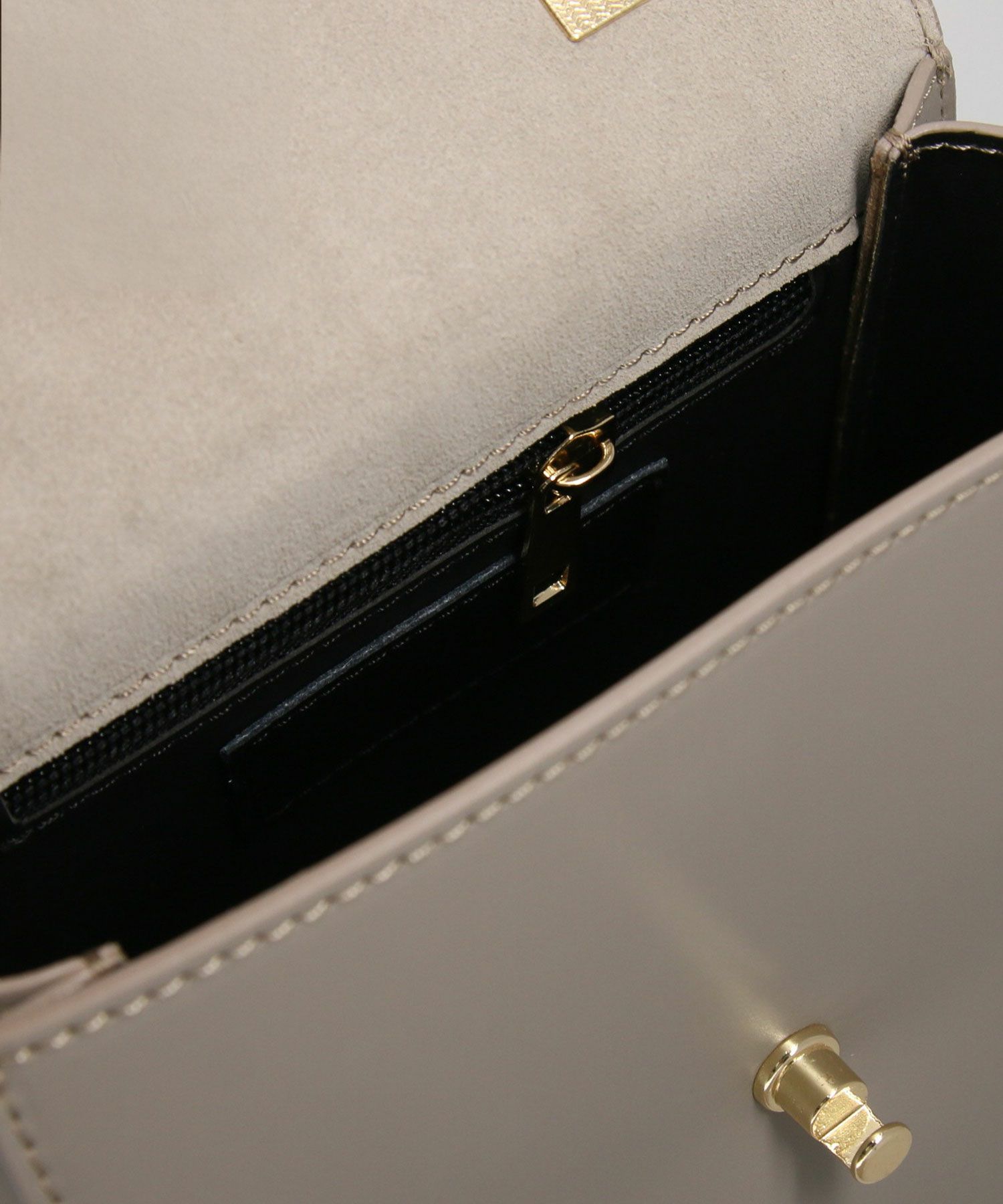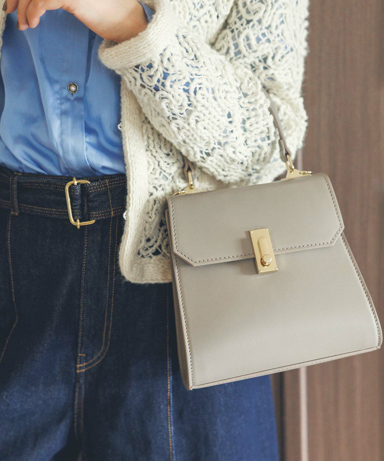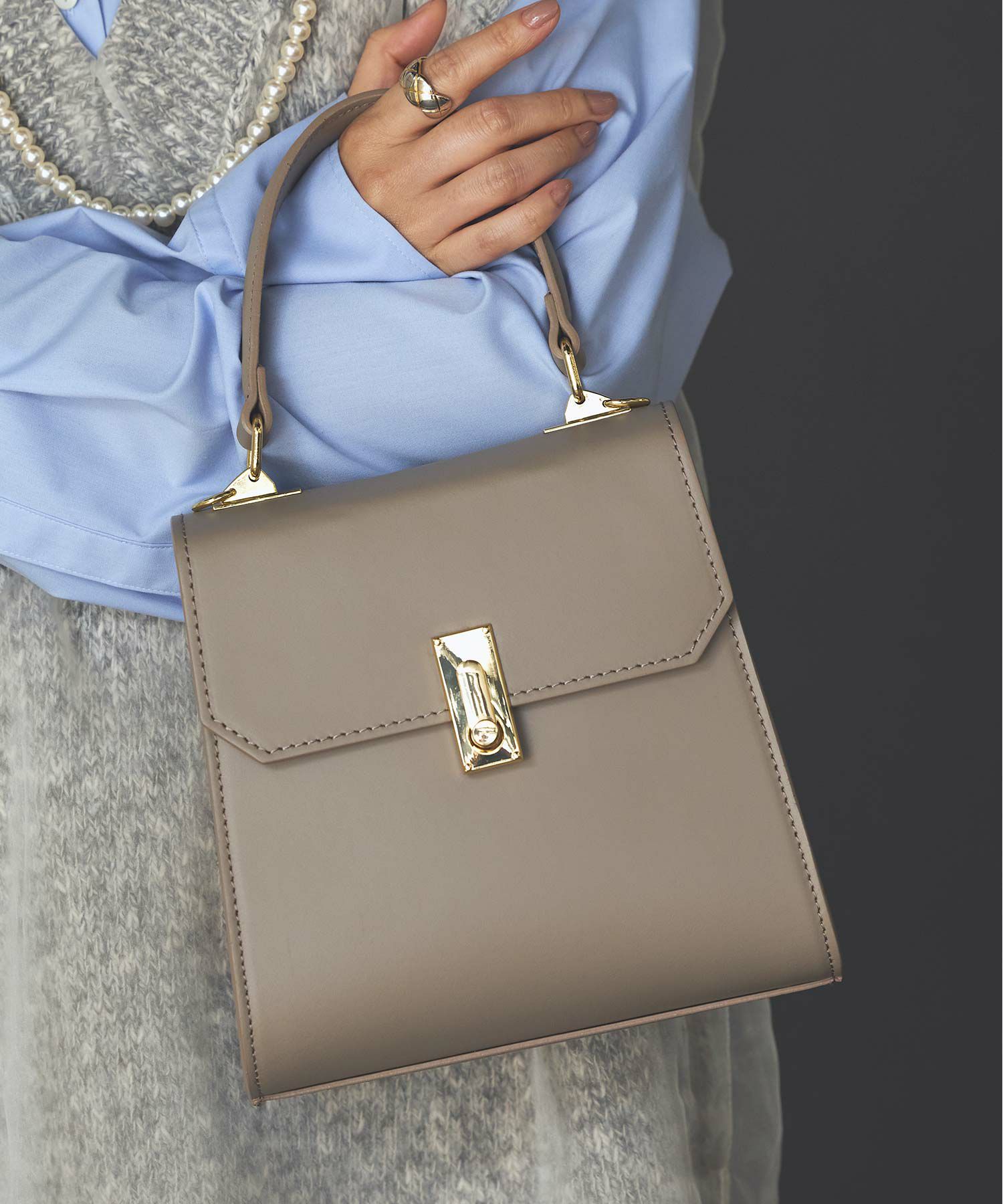 ゴールドの金具がリッチ感のあるレザーバッグ。