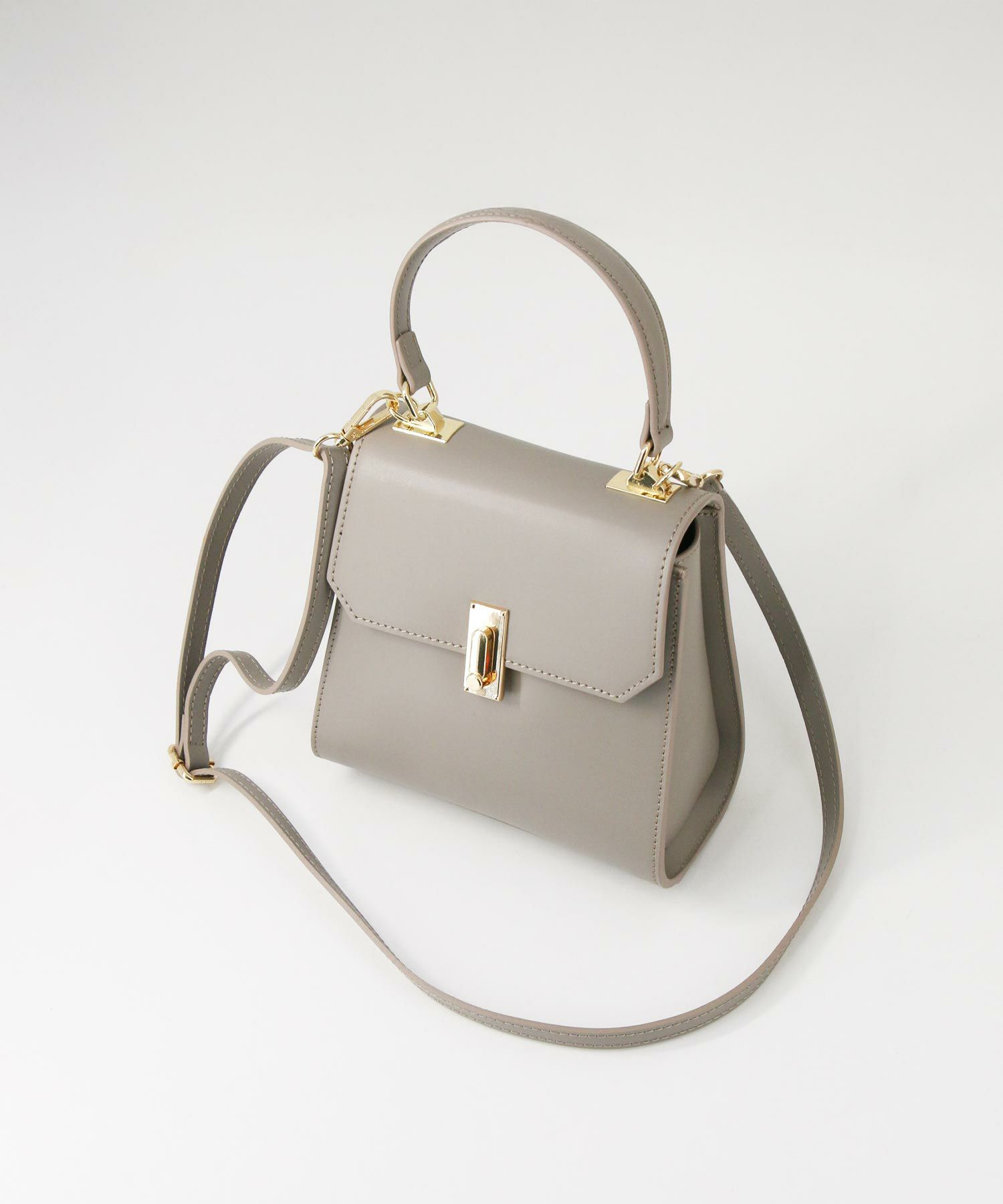 ゴールドの金具がリッチ感のあるレザーバッグ。