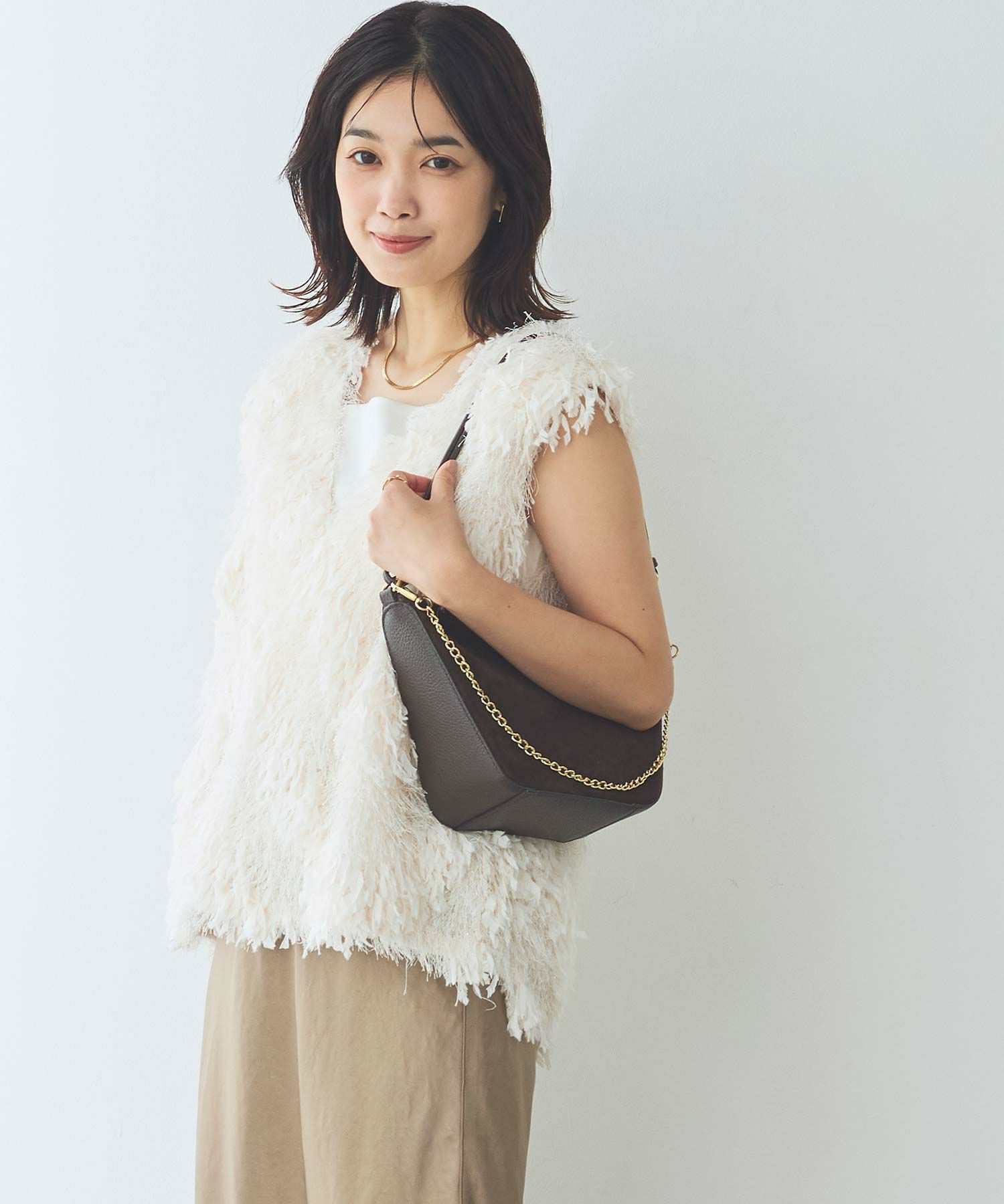 チェーンの持ち手は付けたままアクセントとしてもお洒落に決まります。