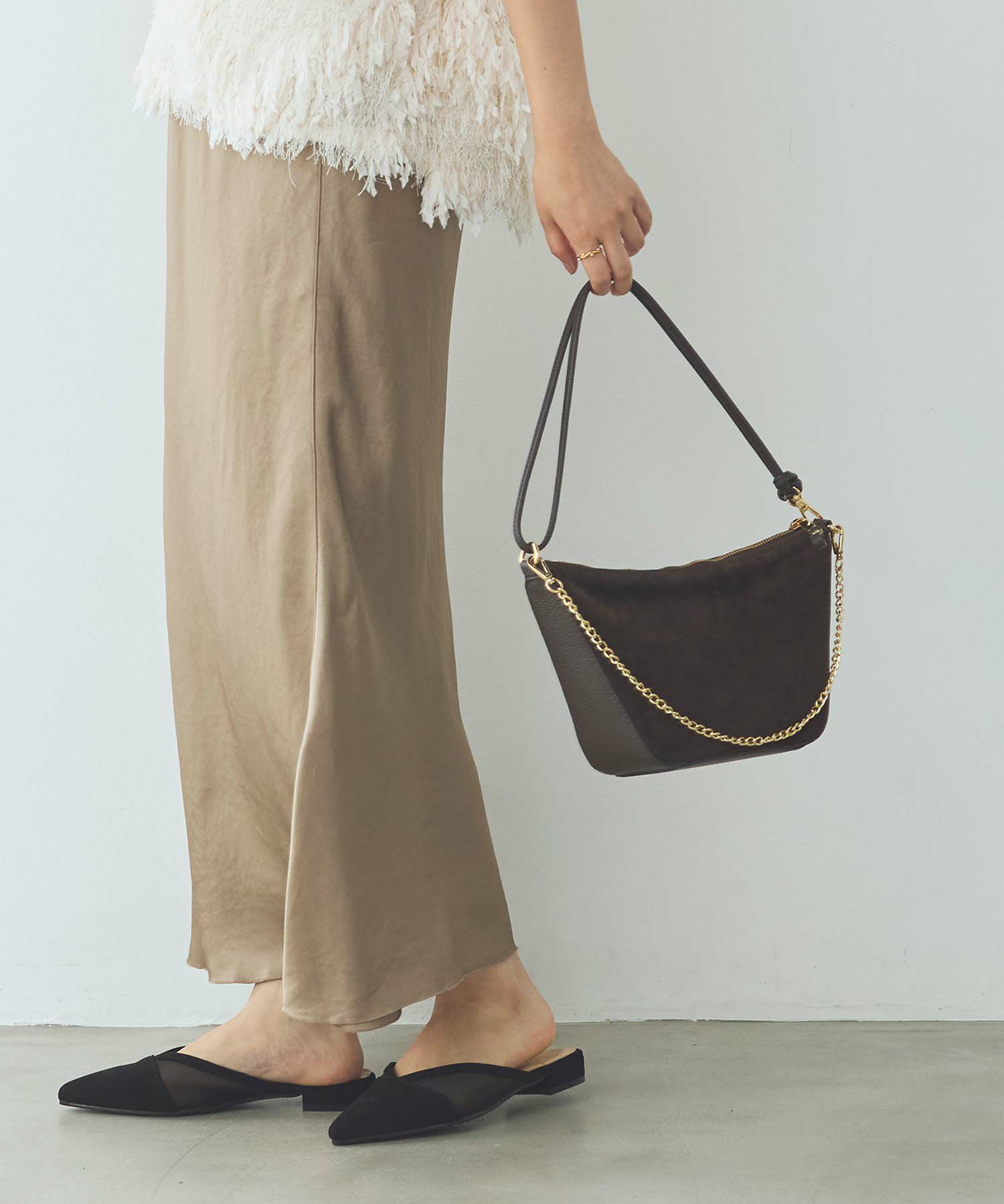 秋冬ムードを高めてくれる、スエードバッグ。