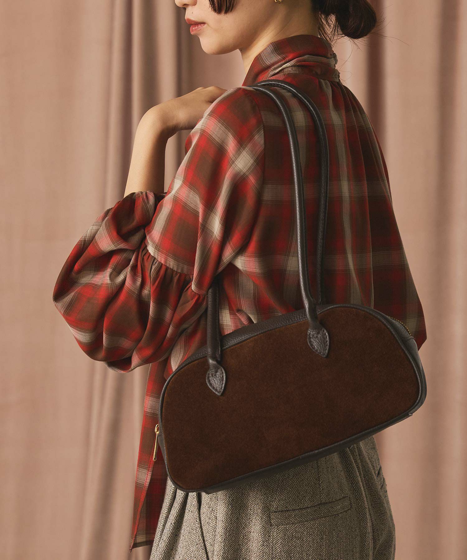 前面にスウェード素材を使用し、柔らかな質感と高級感を両立しました。