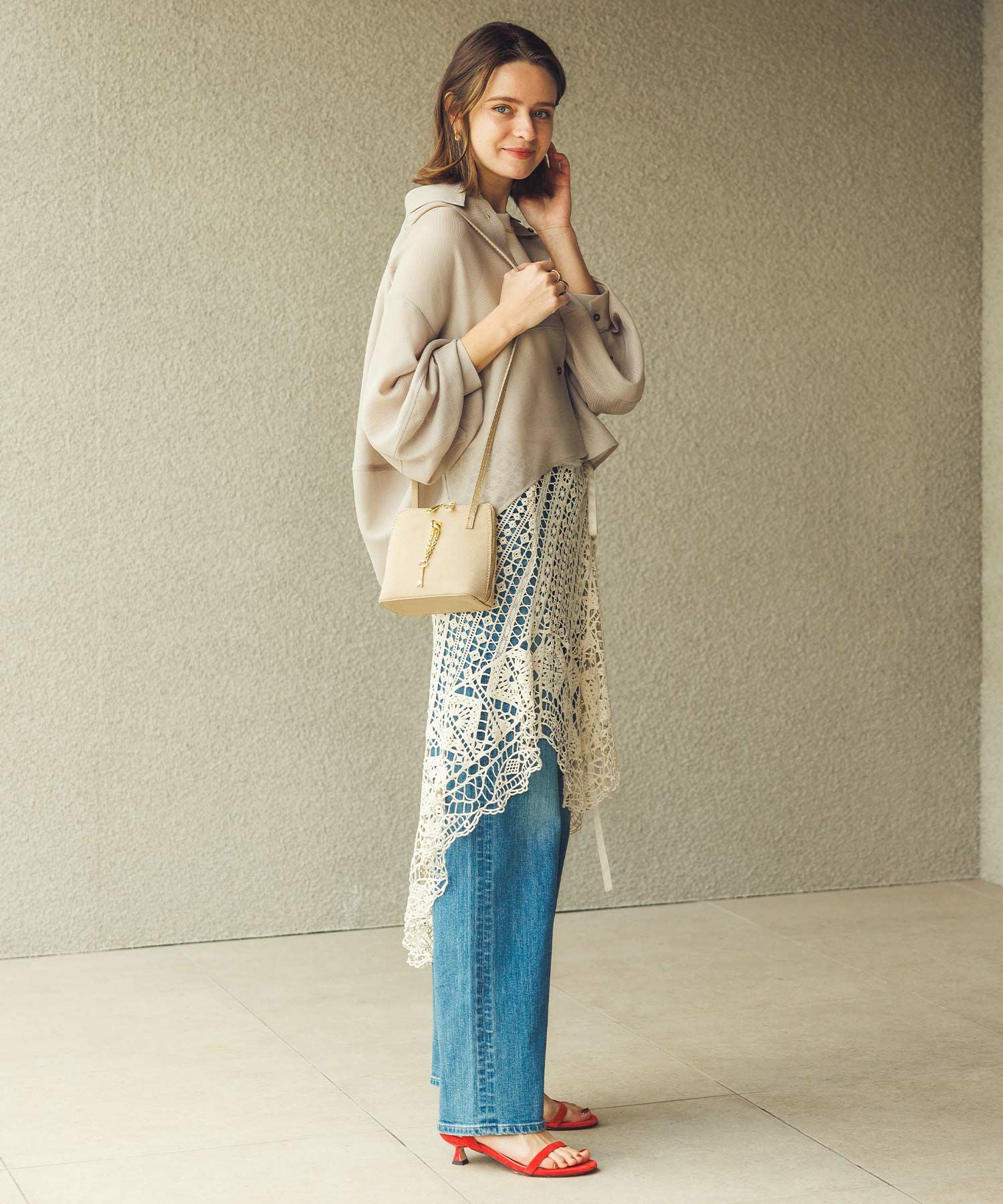 上品なルックスで女性らしさを演出しつつ、カジュアルに合わせても程よく抜け感を出してくれます。