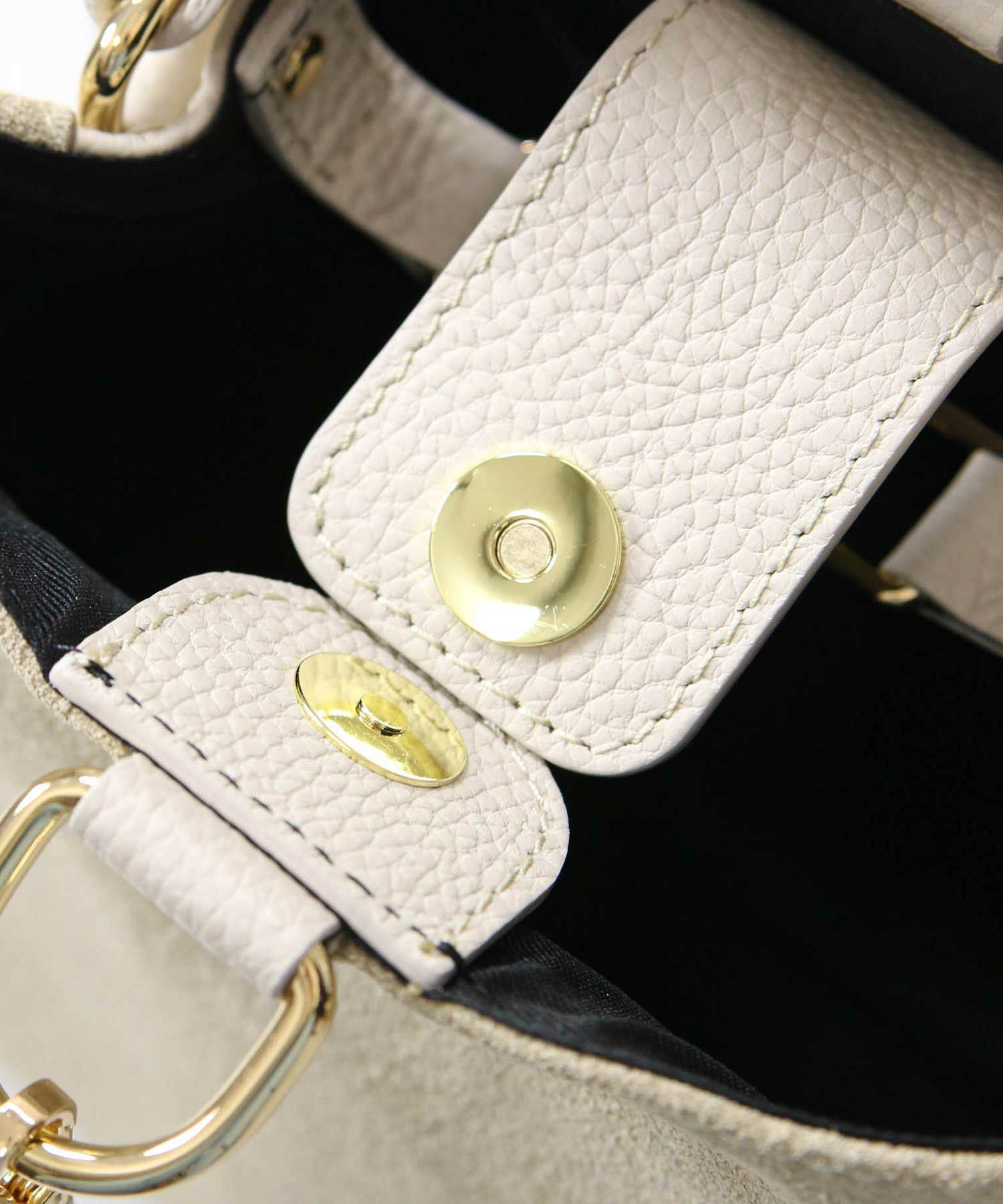 マチがしっかりあるので、お出かけに必要な容量があるのも嬉しいバケツ型デザイン。