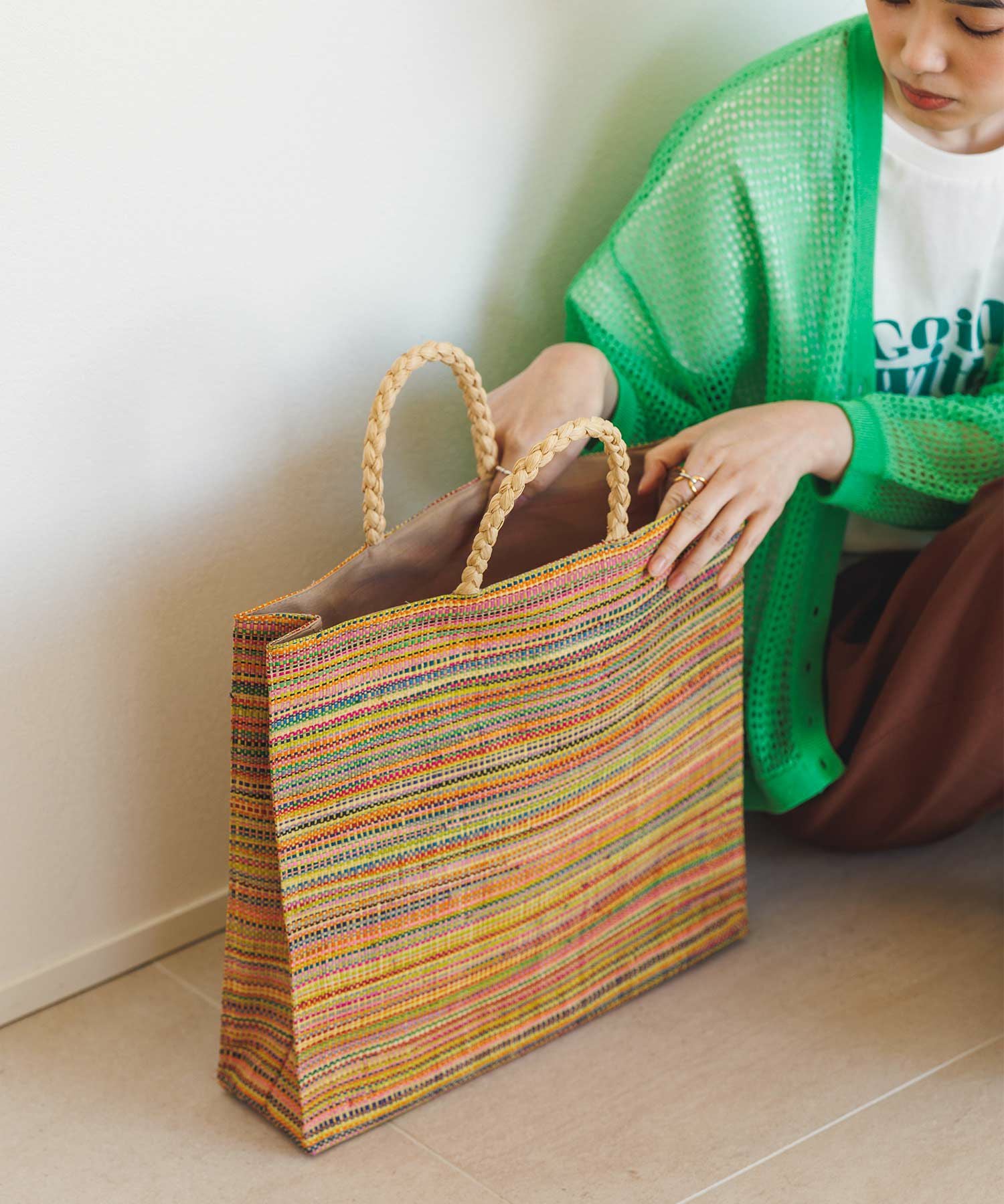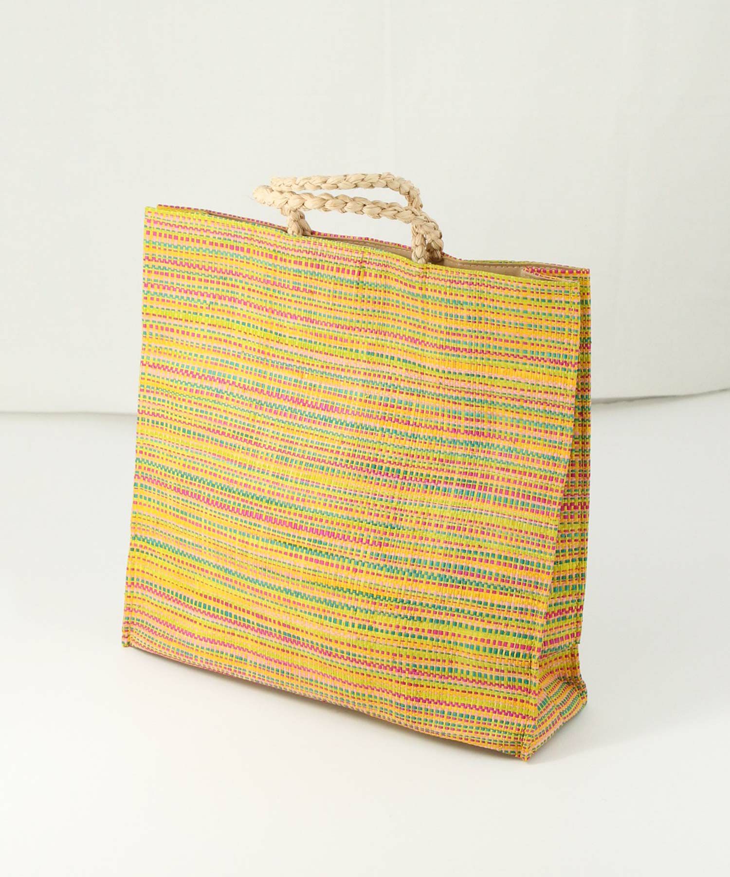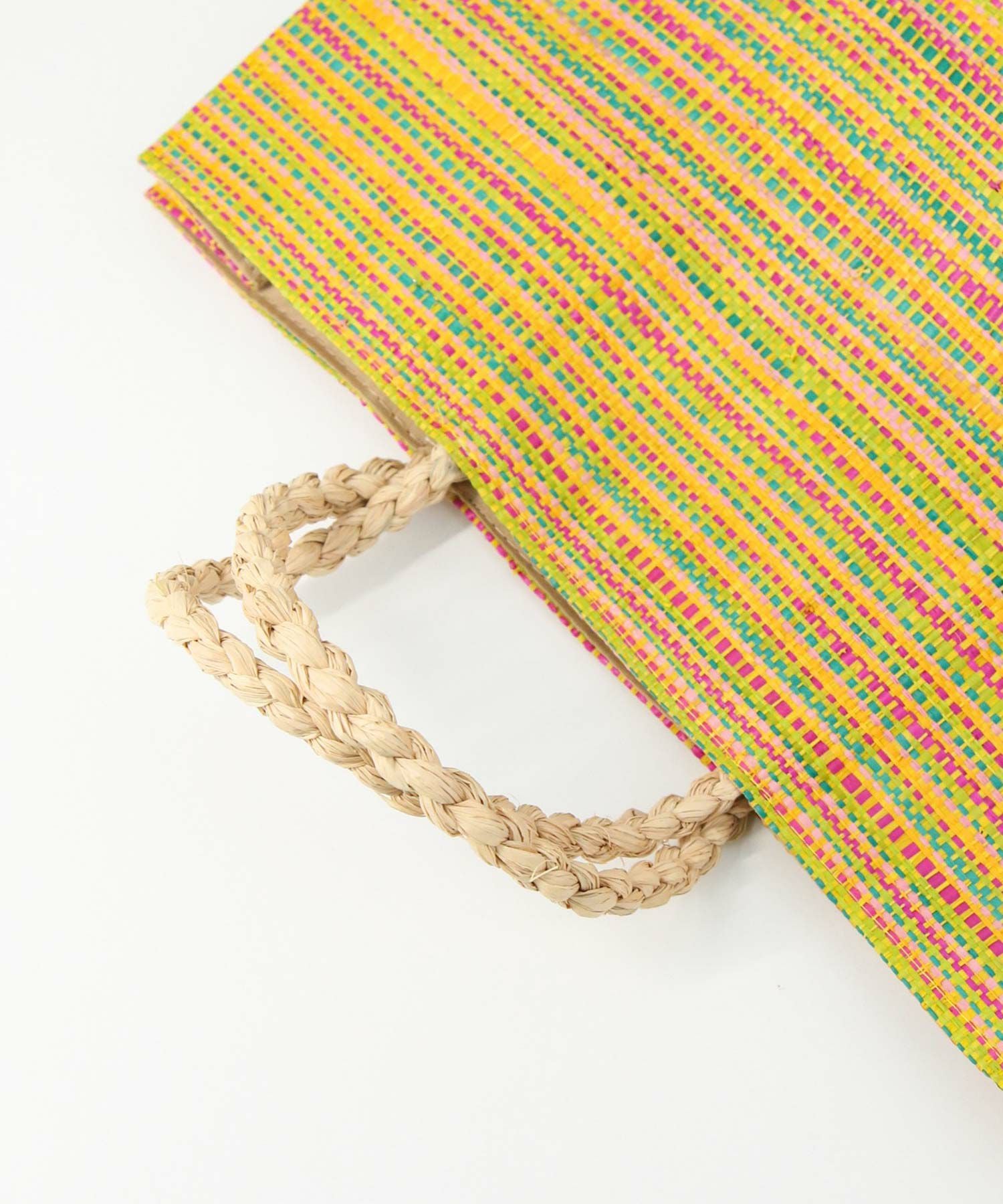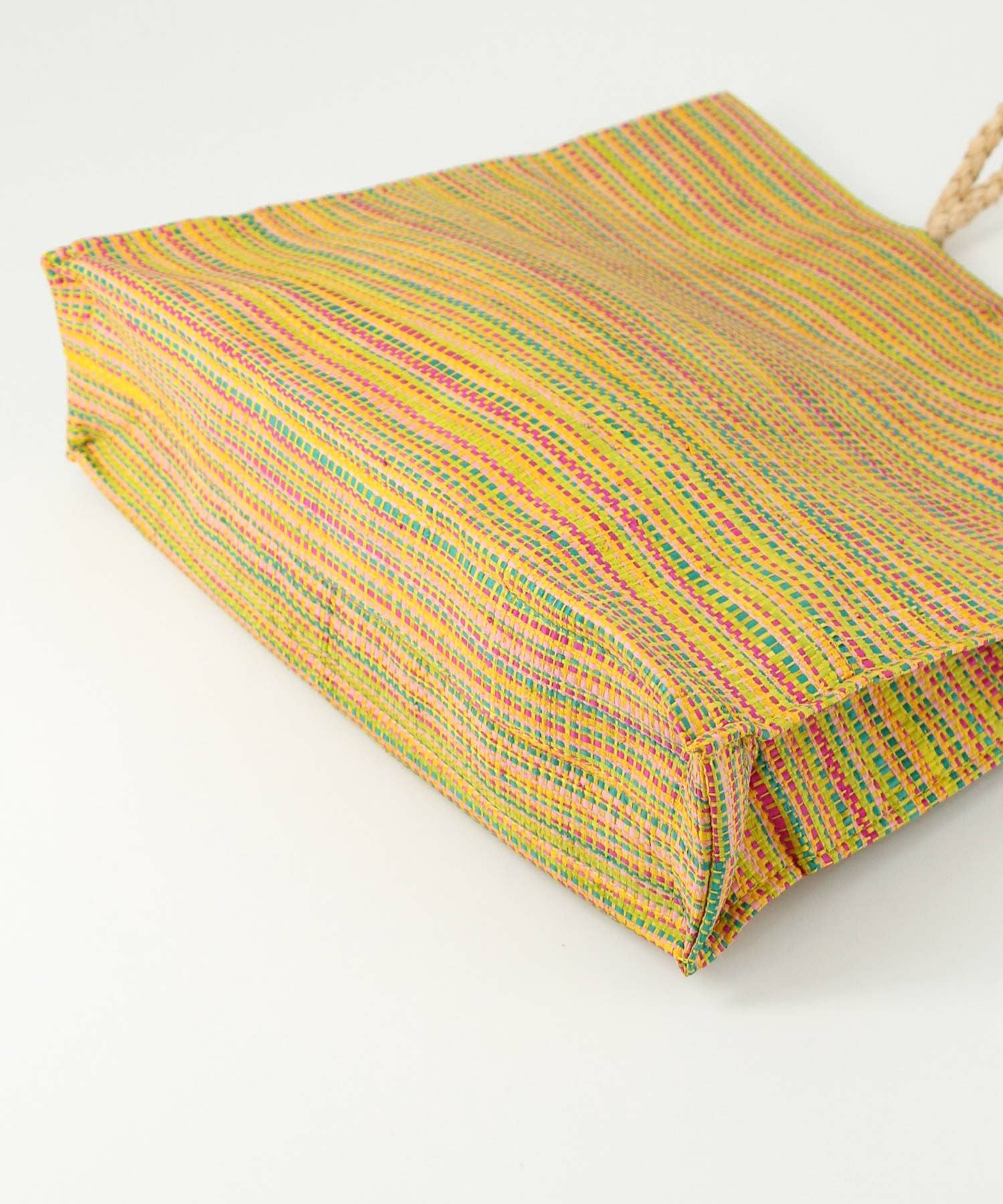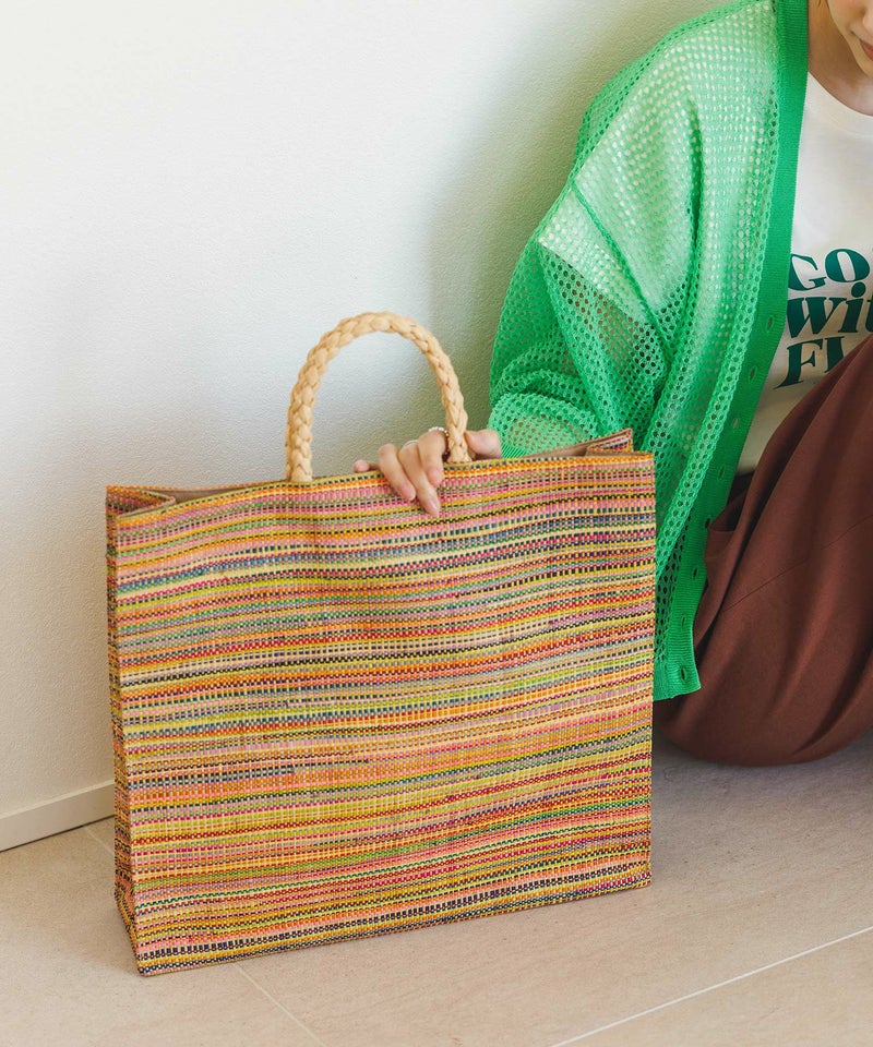 新鮮なカラーリングとナチュラルな素材感で、春夏ムードを一気に高めてくれるラフィアトートバッグ。