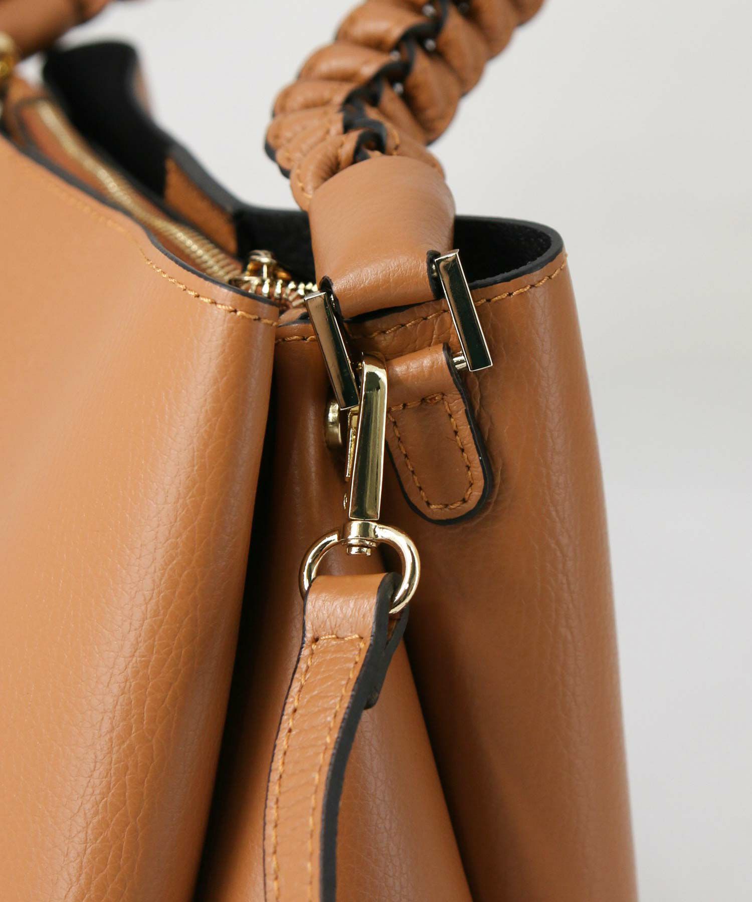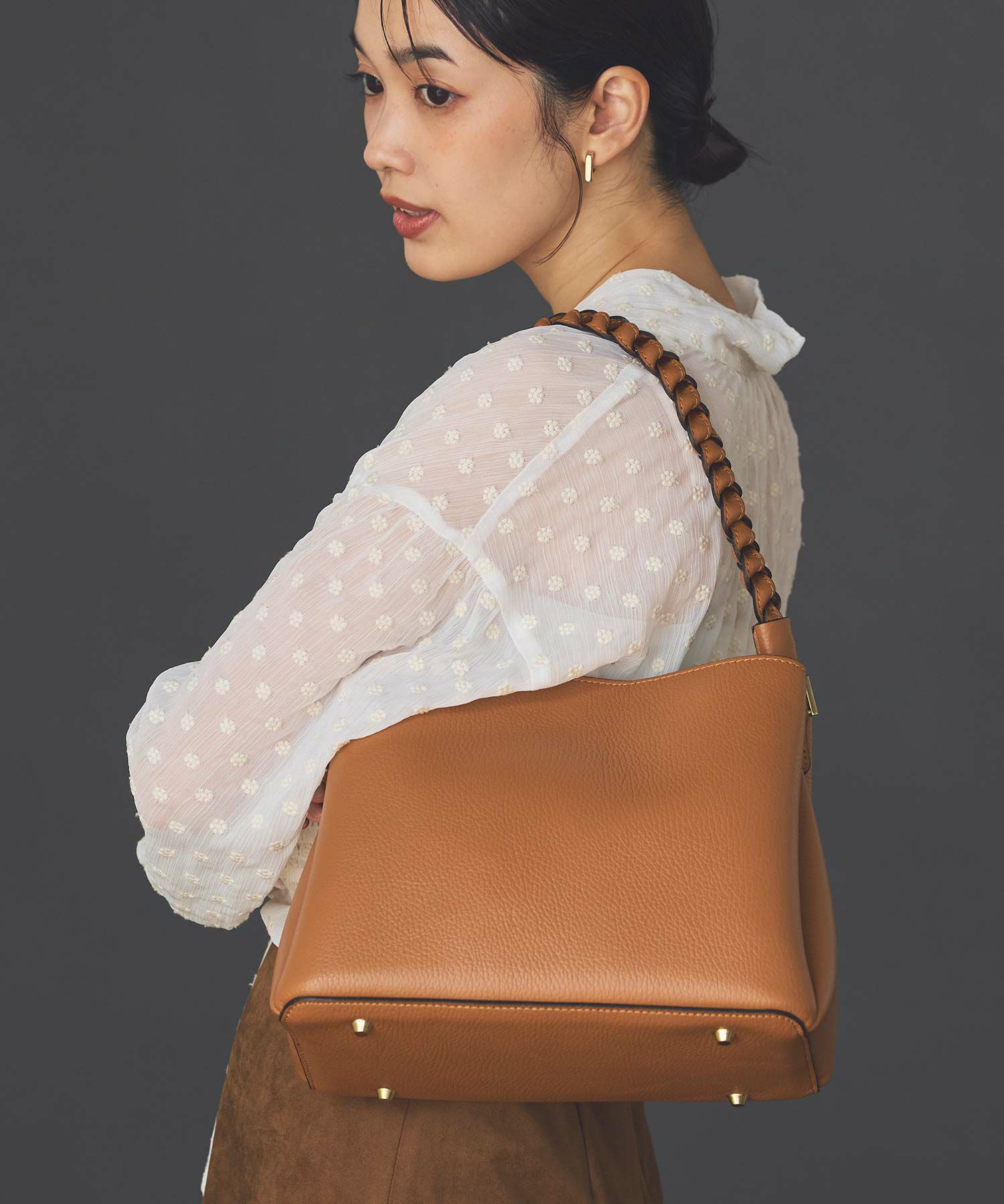 ねじりハンドルの可愛さに惹かれました。本革のバッグは重みが気になるところですが、このバッグは比較的、軽い方だと思います。ねじりハンドルの肩掛け、ショルダーストラップで斜めがけと、色々持ち方が出来ることと、荷物がたくさん入ること、真ん中に仕切りがあって細かいものも入れやすいことなど、使いやすさもあって、購入を決めました。