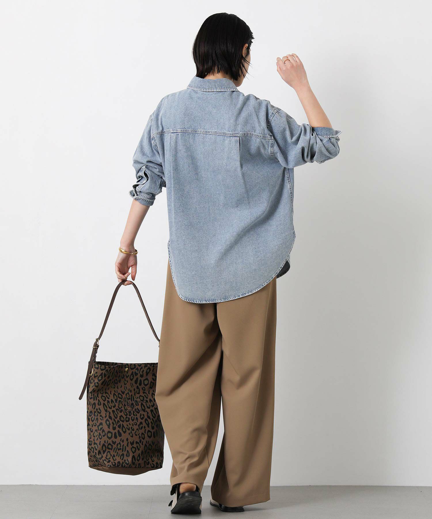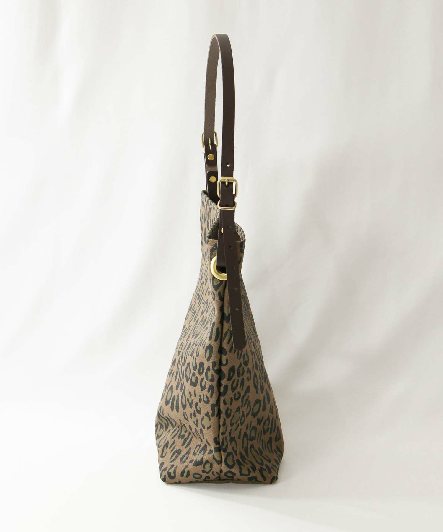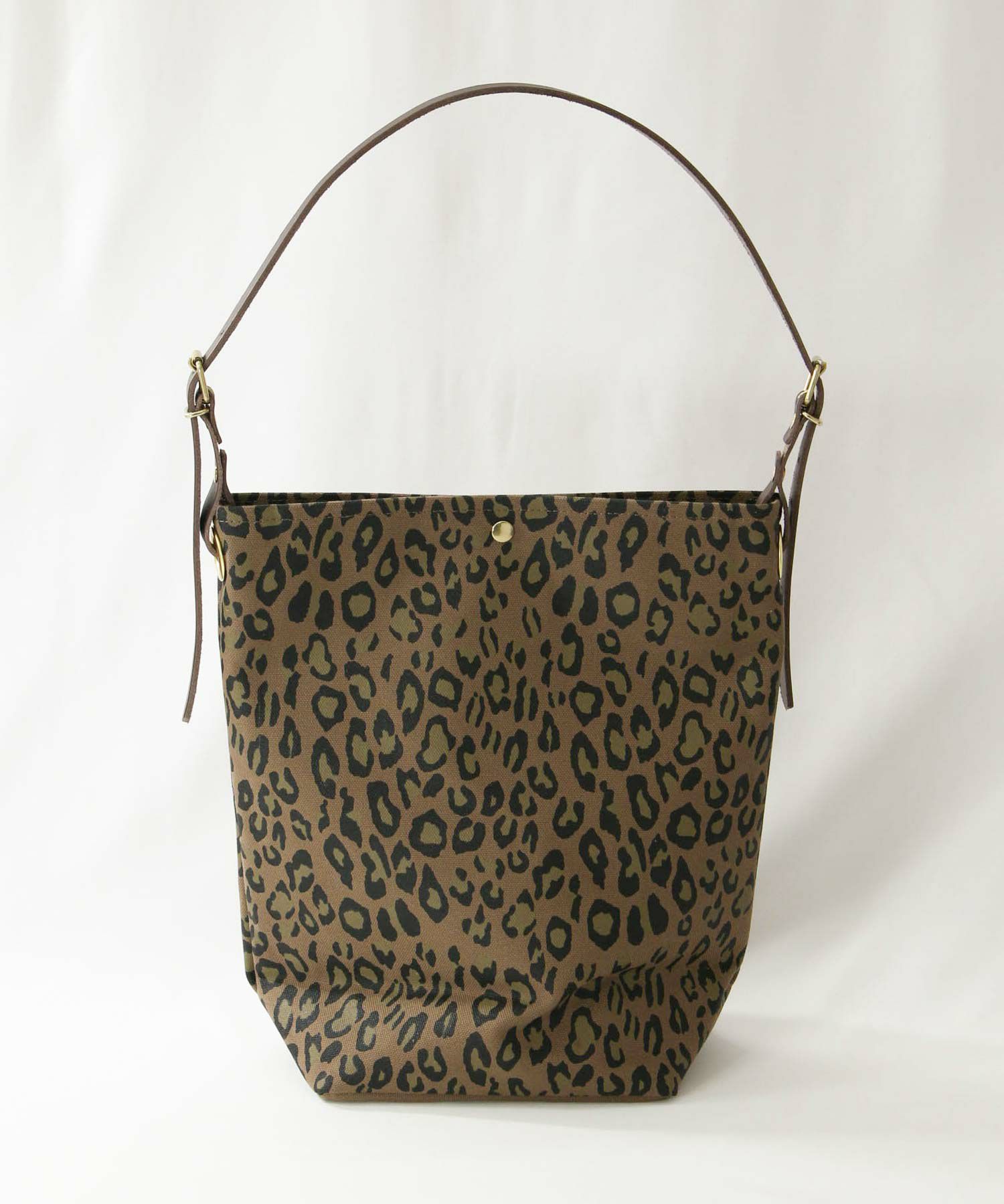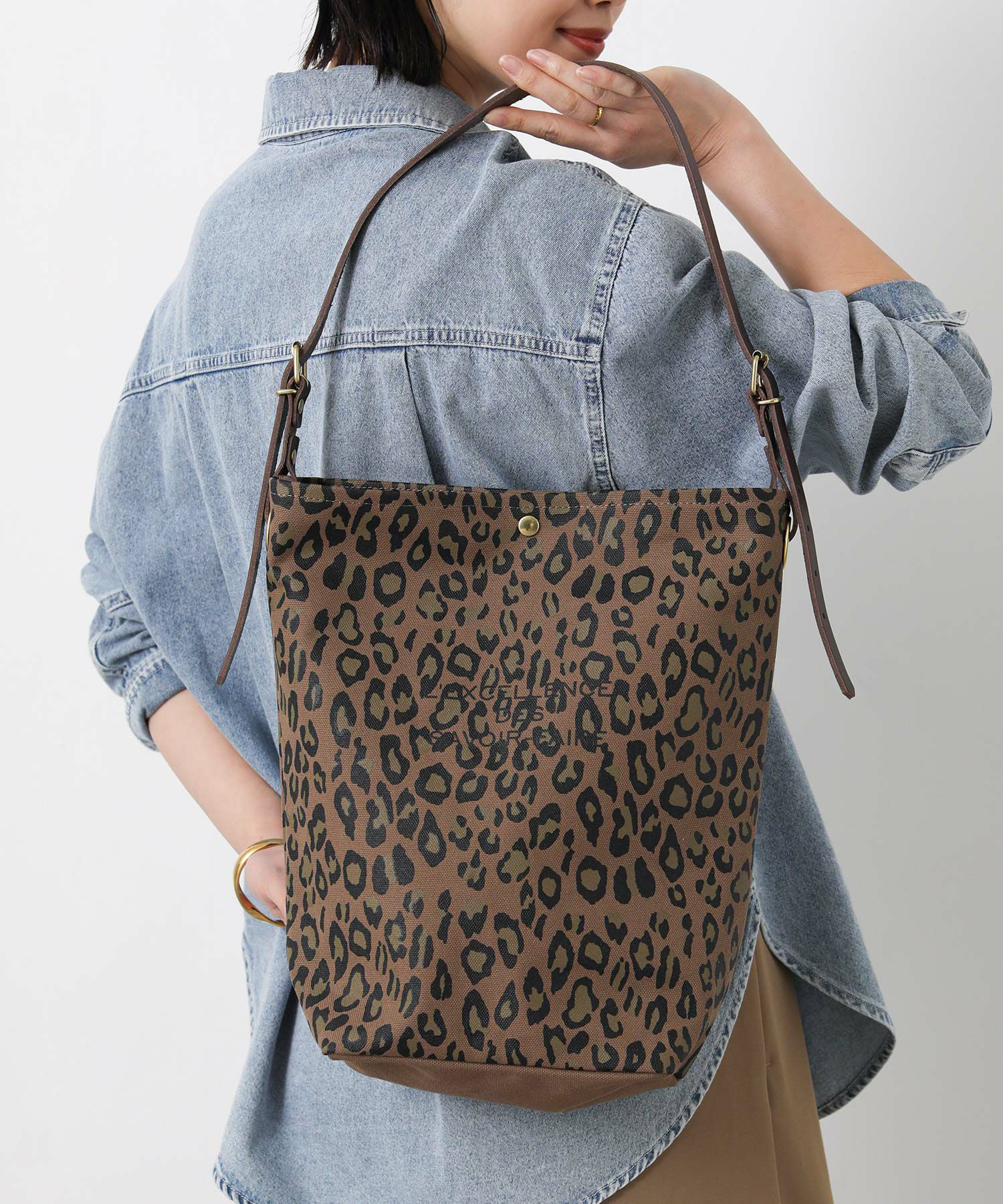 トレンドのレオパードがプリントされたLeminor(ルミノア)のバケツ型ショルダートート。