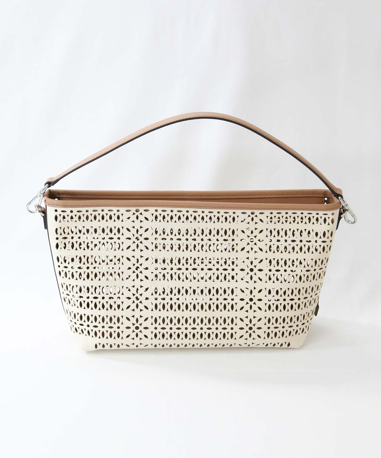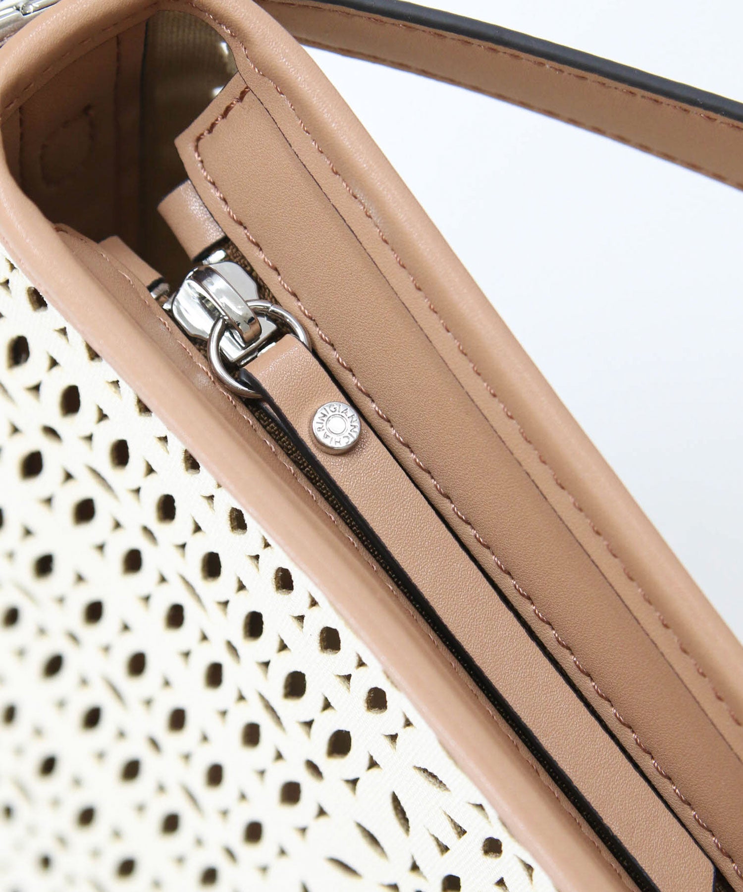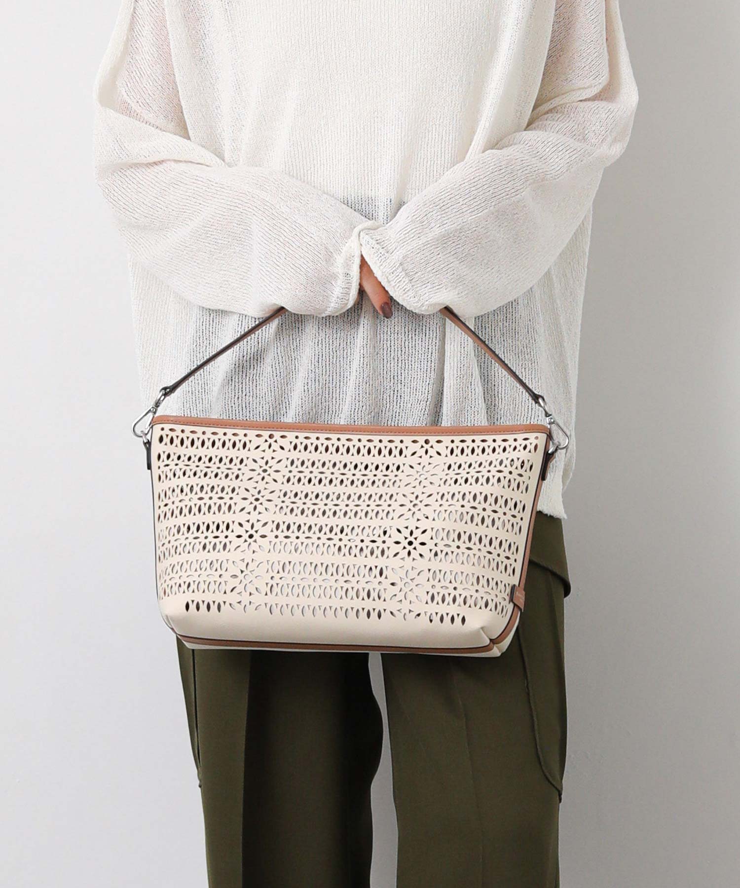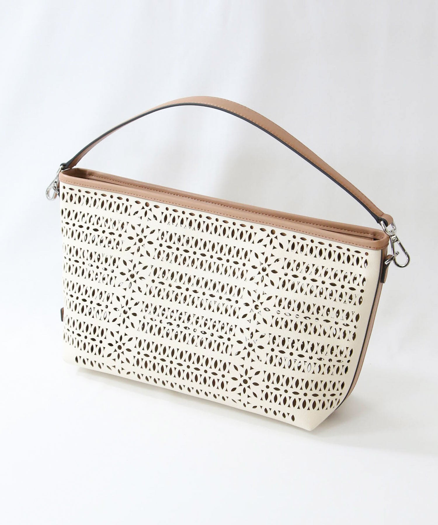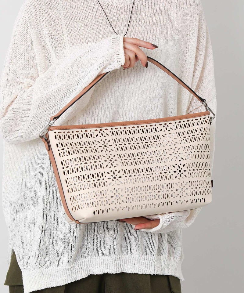【GIANNI CHIARINNI(ジャンニキアリーニ)】よりキャンパスのカットワークが春夏らしいハンドバッグをセレクト。