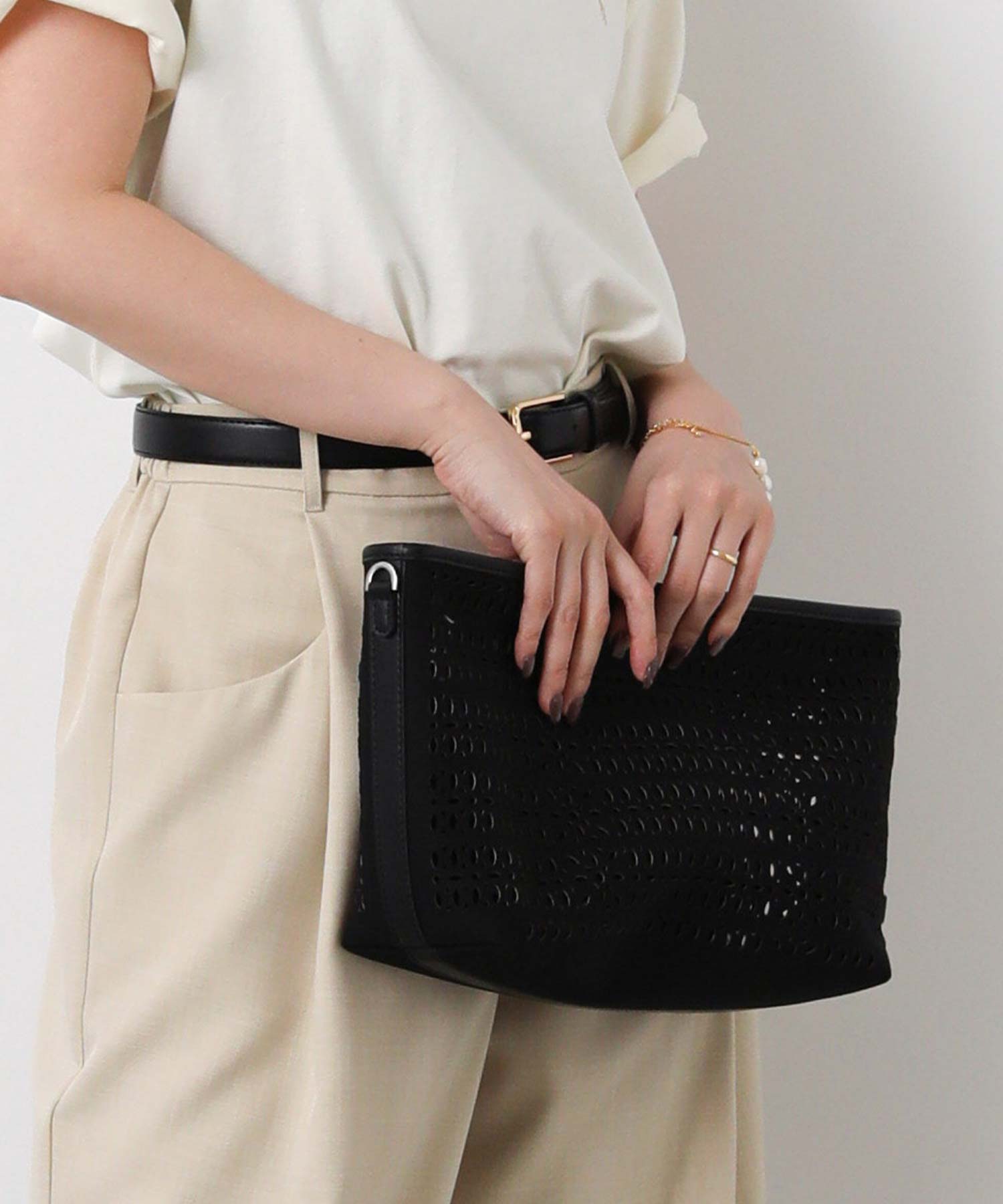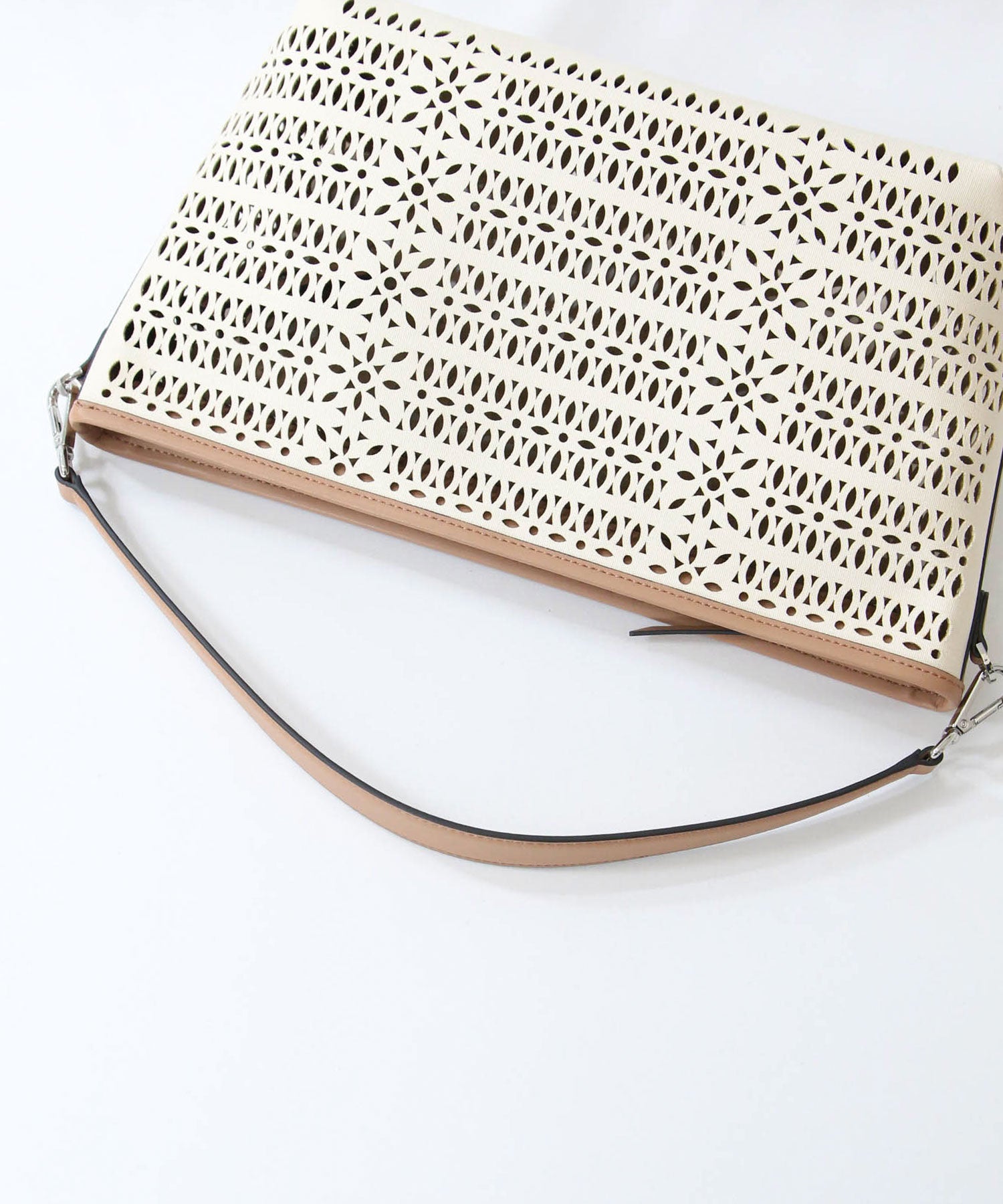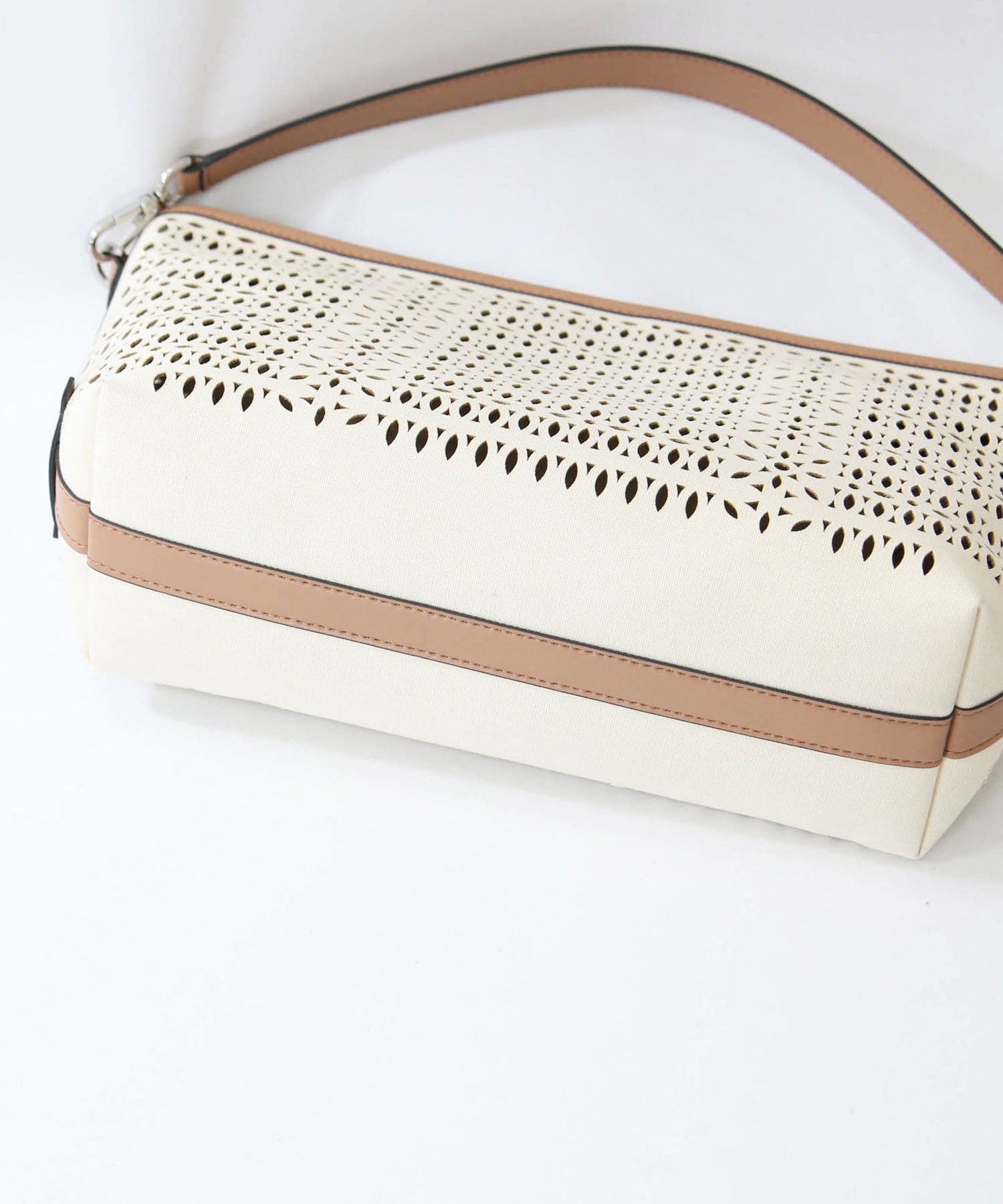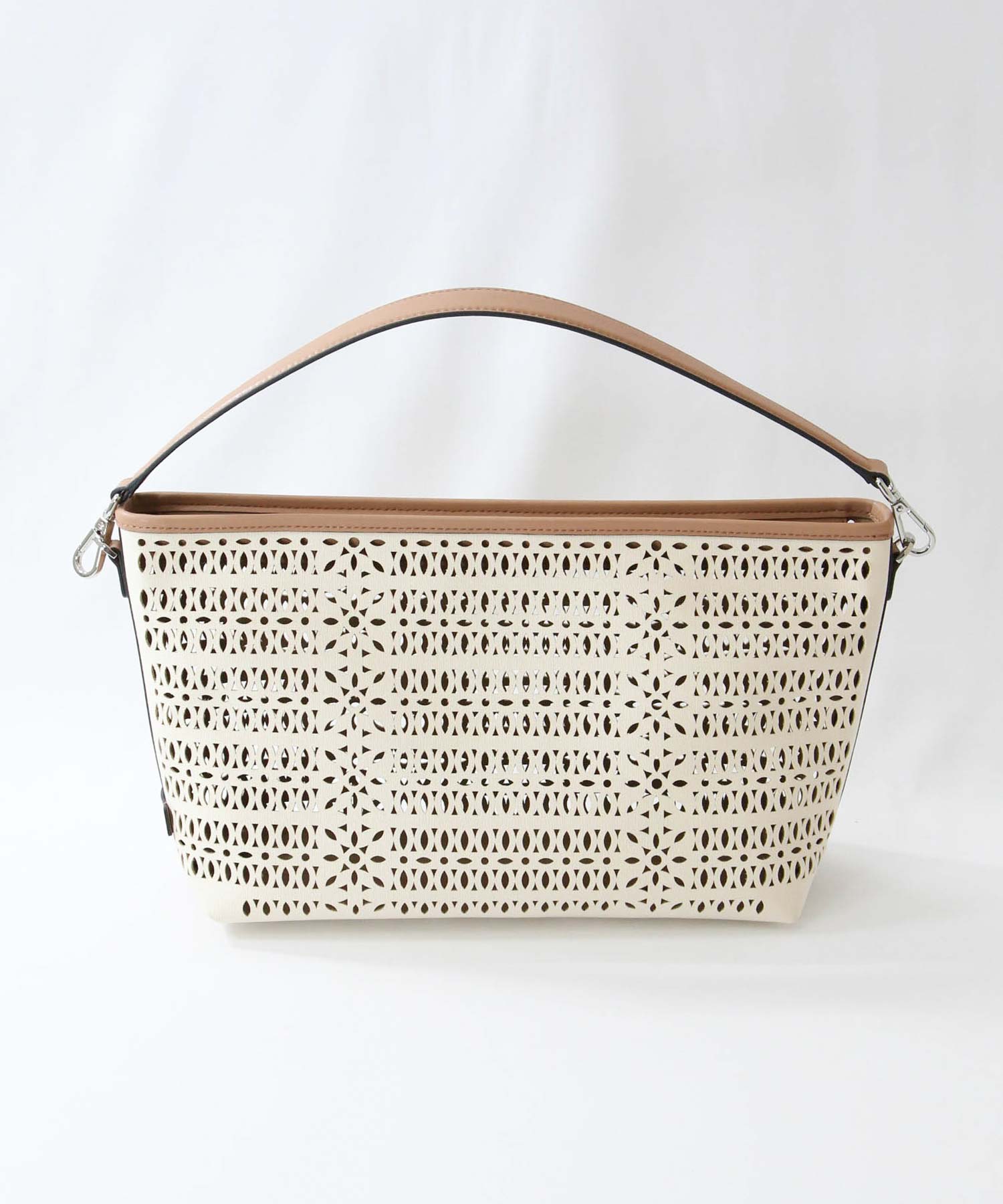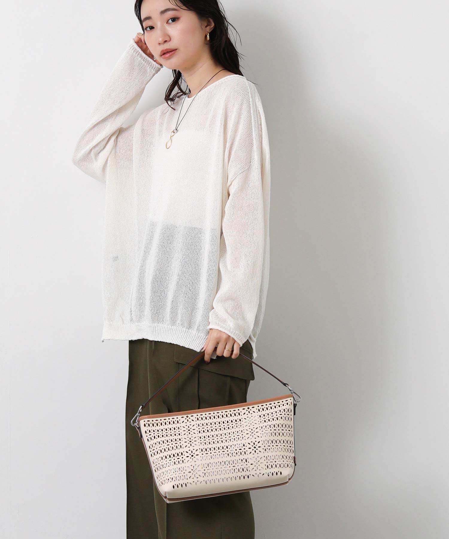 【GIANNI CHIARINNI(ジャンニキアリーニ)】よりキャンパスのカットワークが春夏らしいハンドバッグをセレクト。