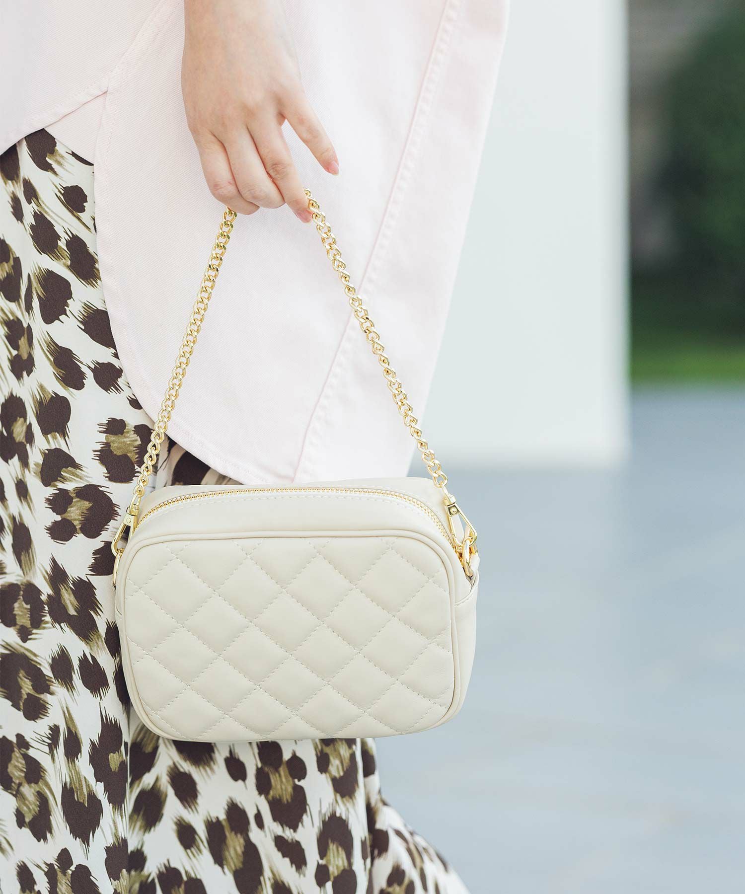 取り外し可能な長さの異なる2種類のチェーン付でスタイリングやシーンに合わせてアレンジできる2way仕様。
