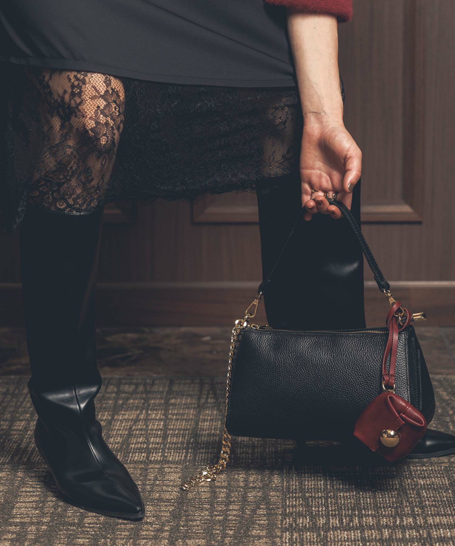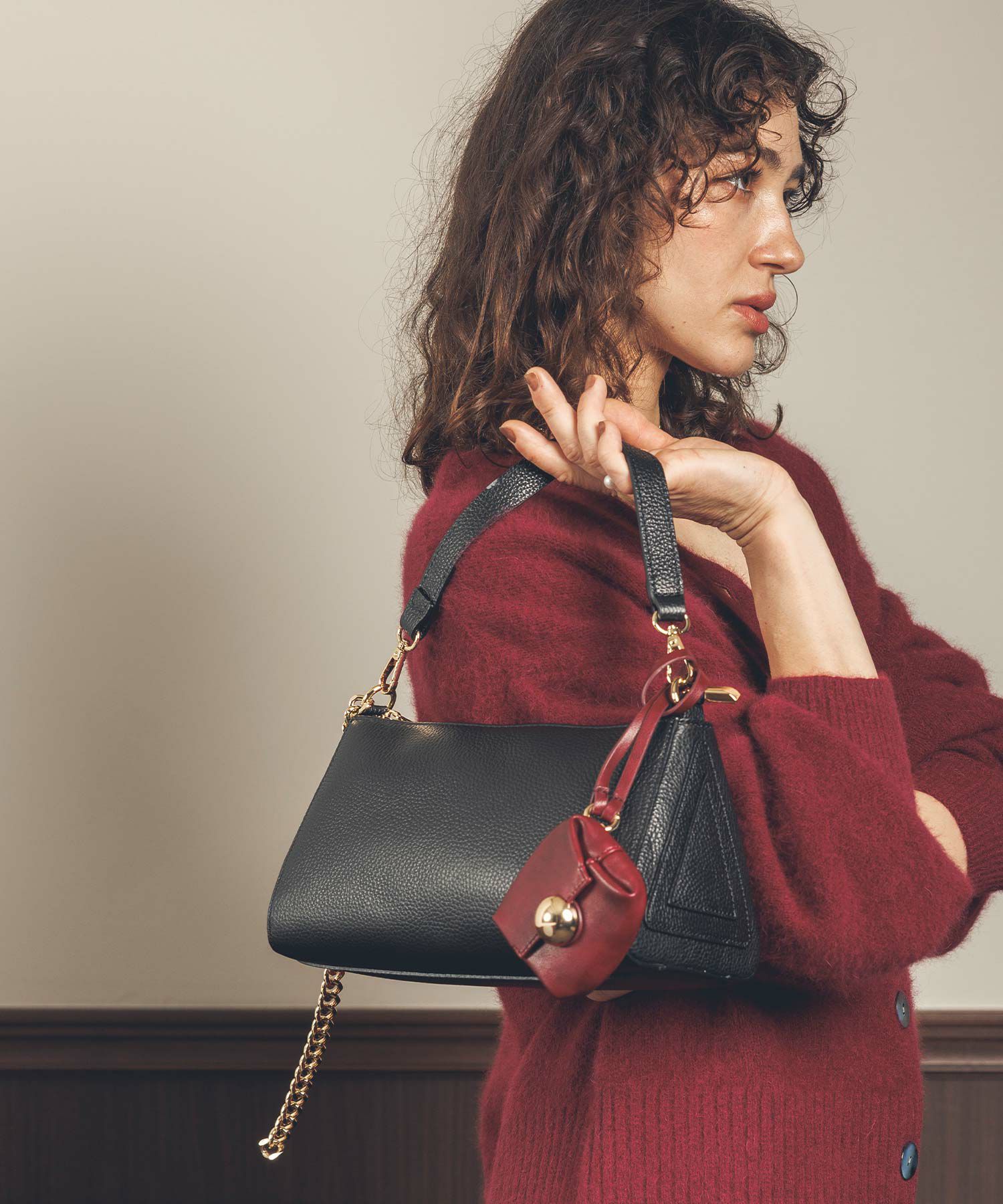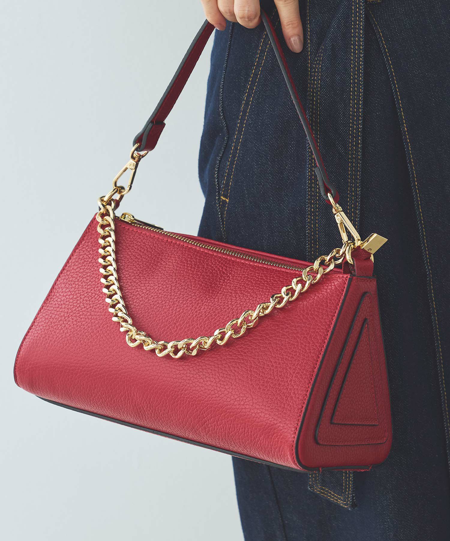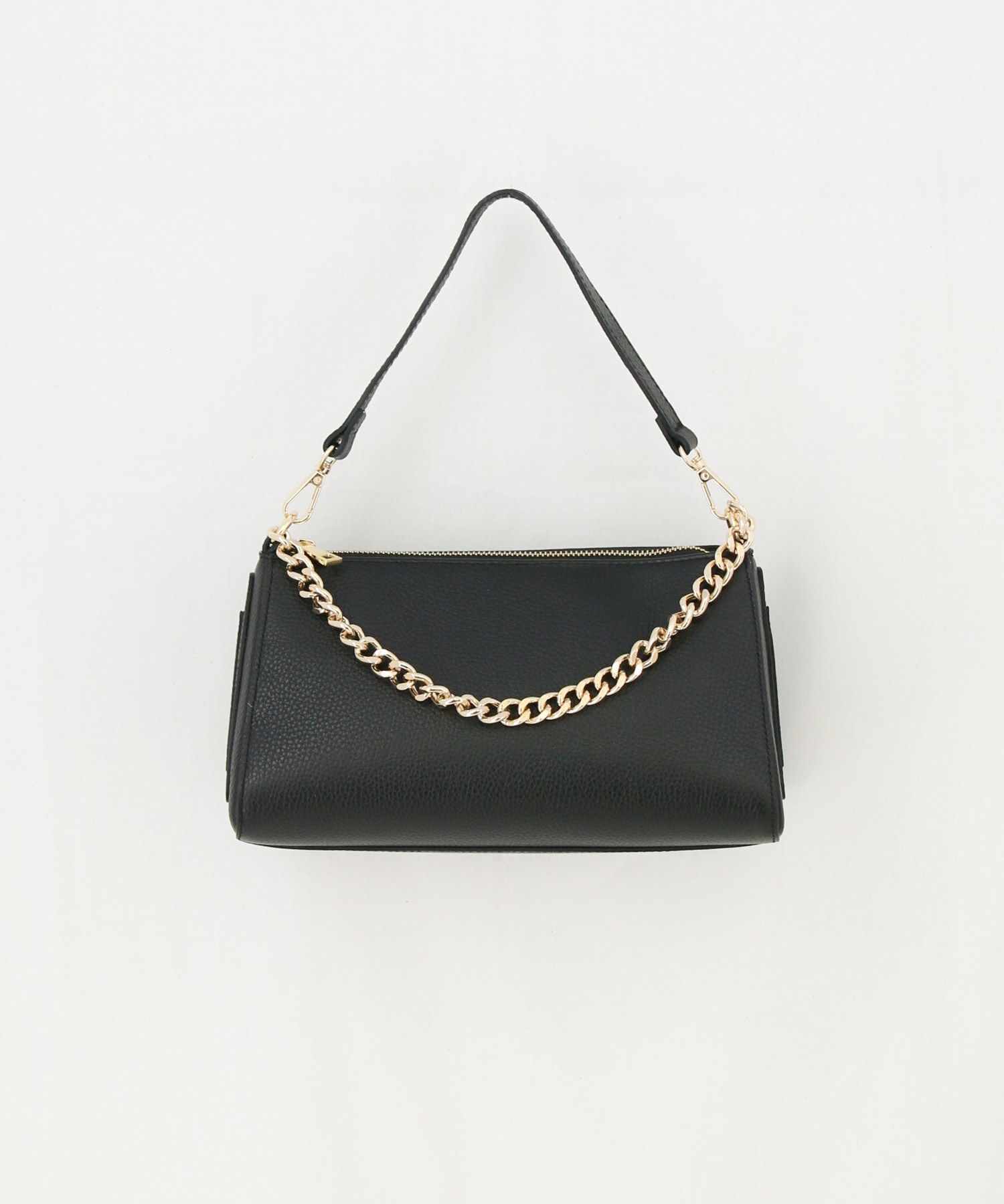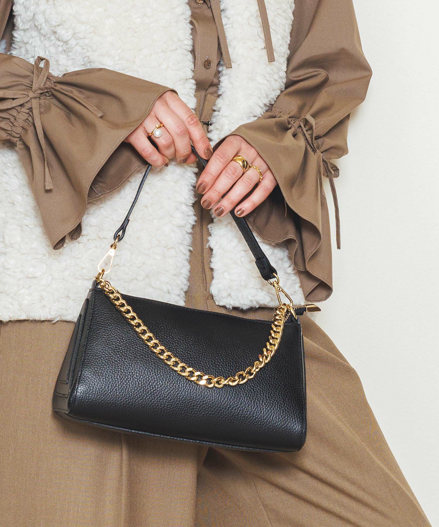 チェーン使いが新鮮なチェーンショルダーレザーバッグ。