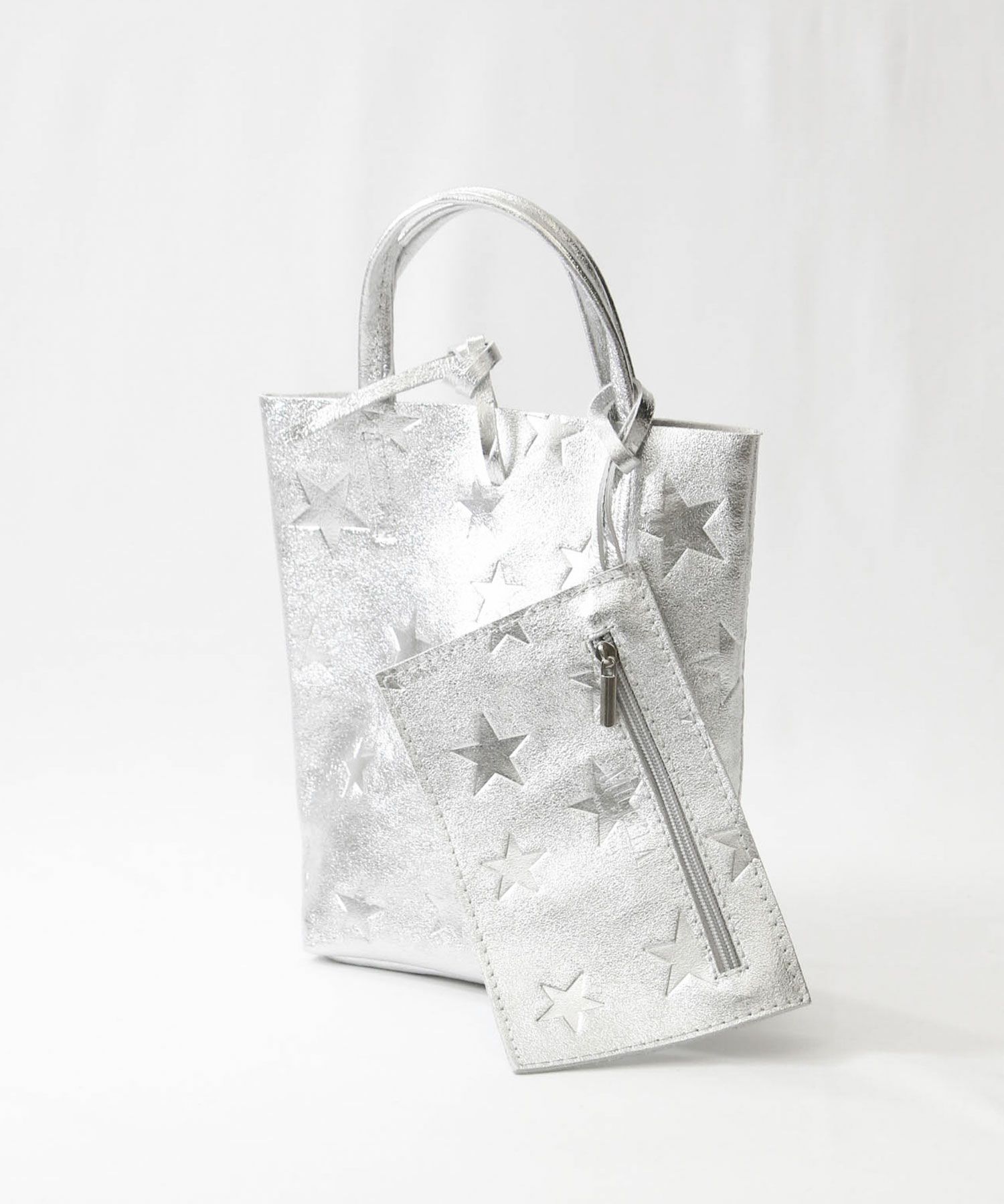 柔らかくリッチな質感のレザーにメタリック加工を施したミニトートバッグ。