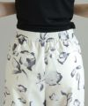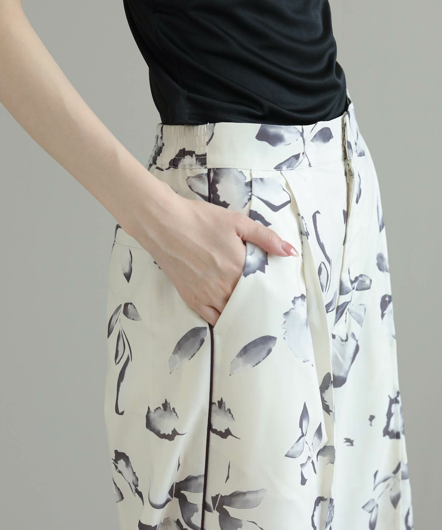 シックな色合いの滲んだフラワーモチーフのパンツ。