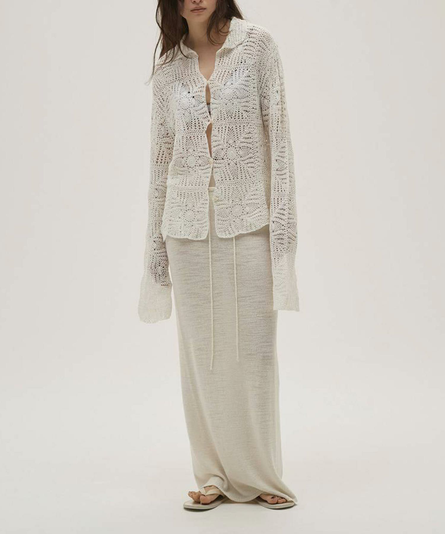 透け感のある編み地で軽やかに仕上げたニットスカート。