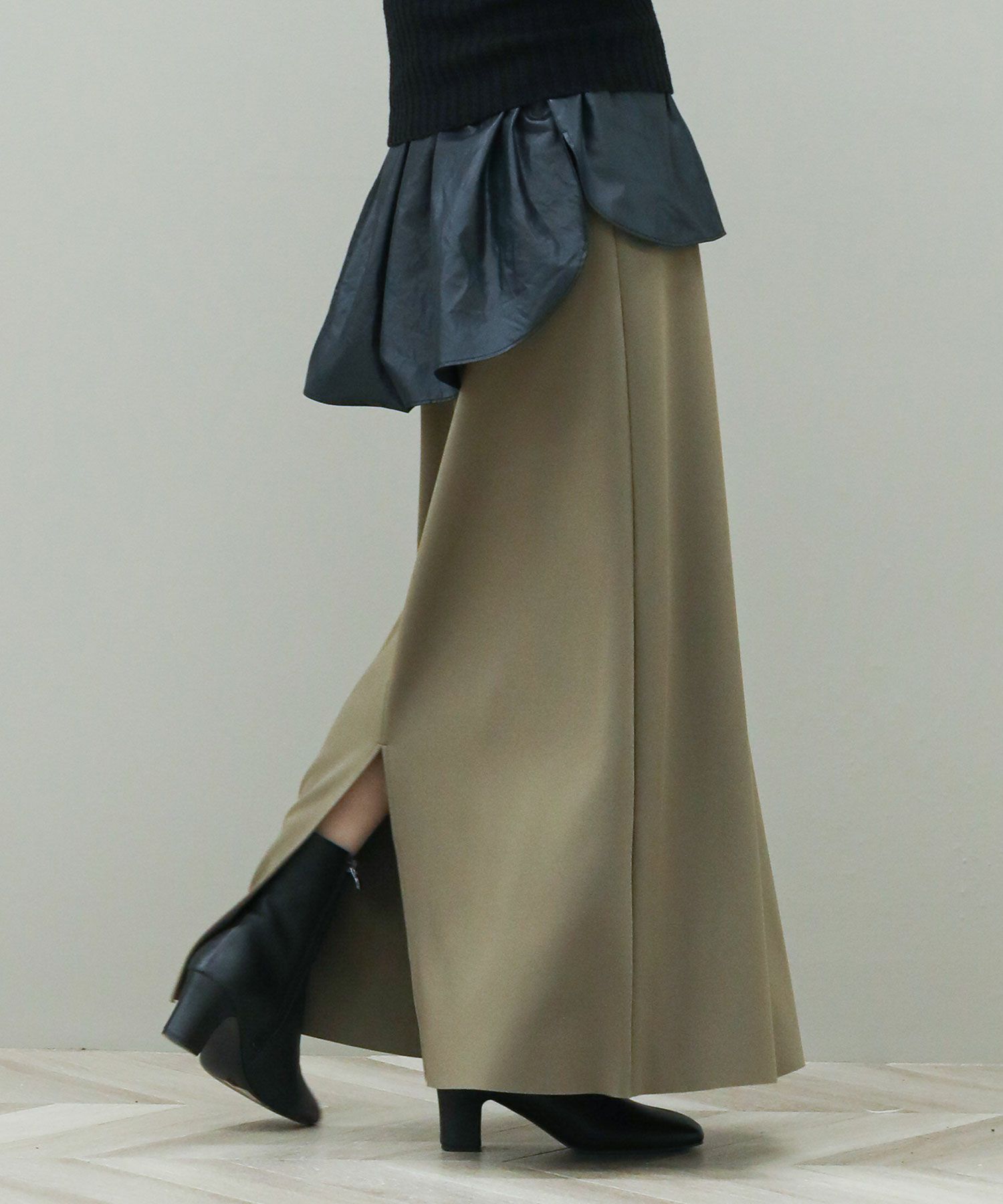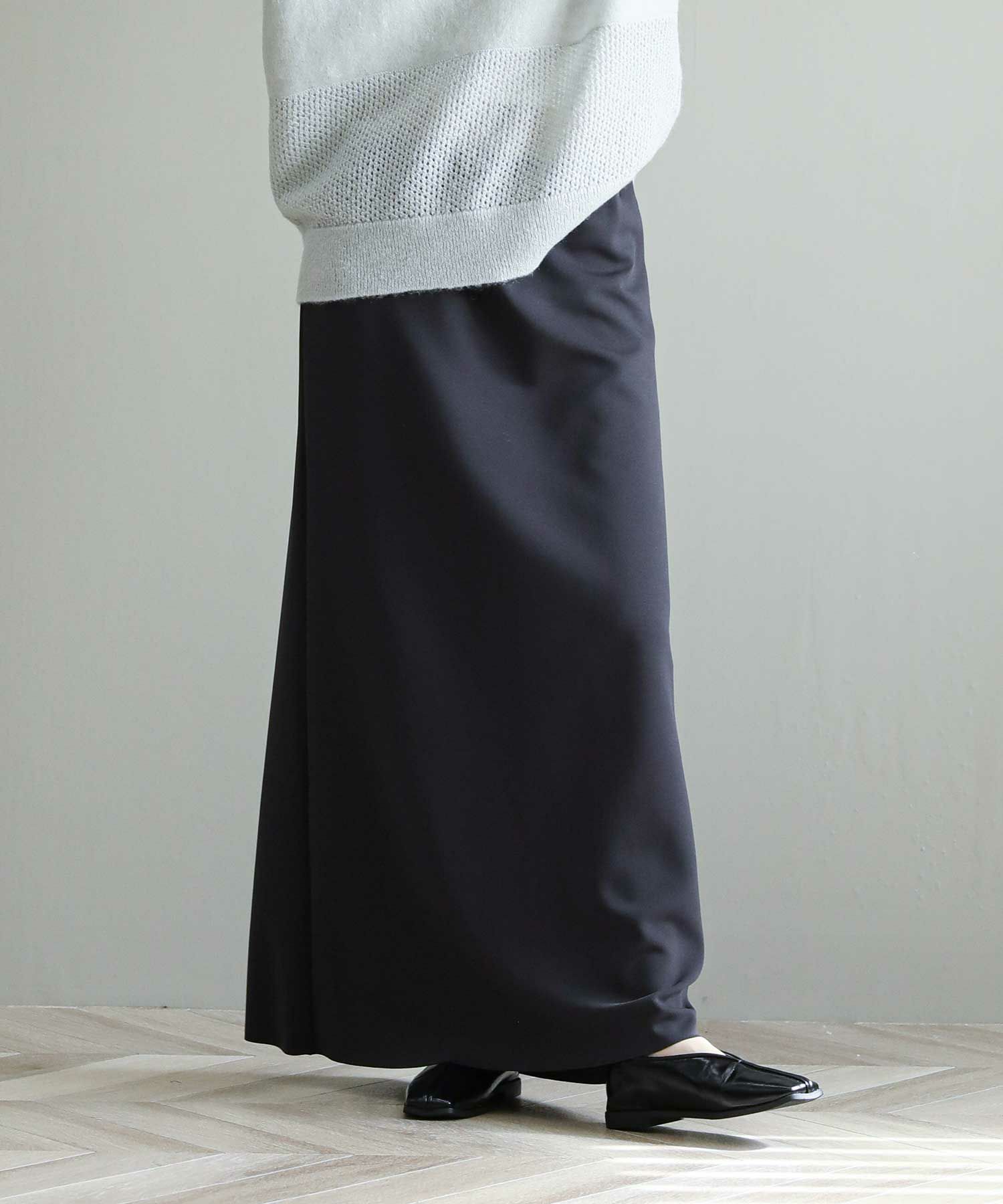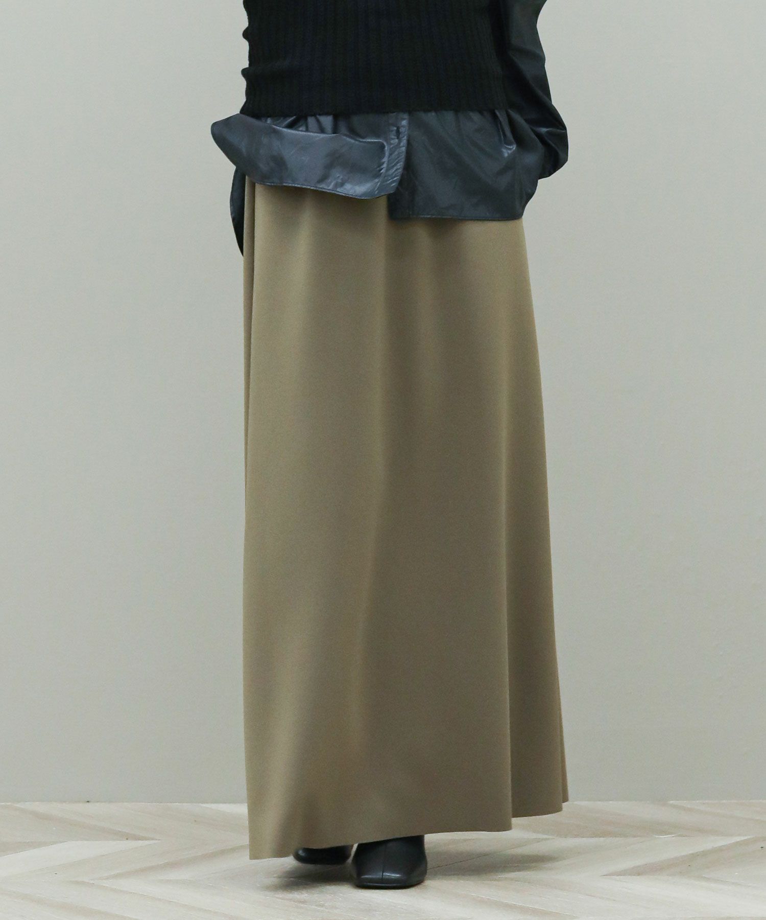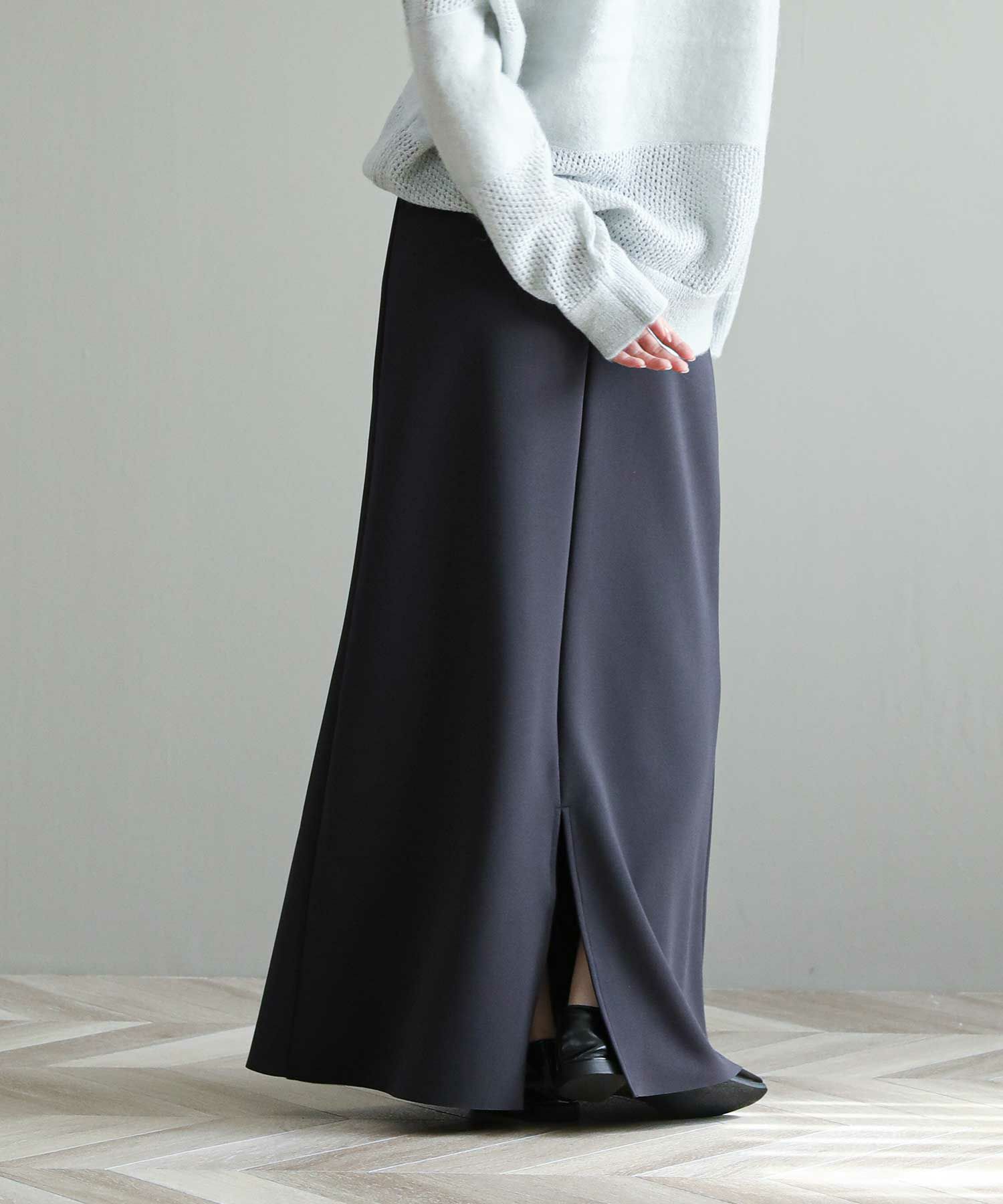 スタイルアップ効果抜群のマキシスカート。