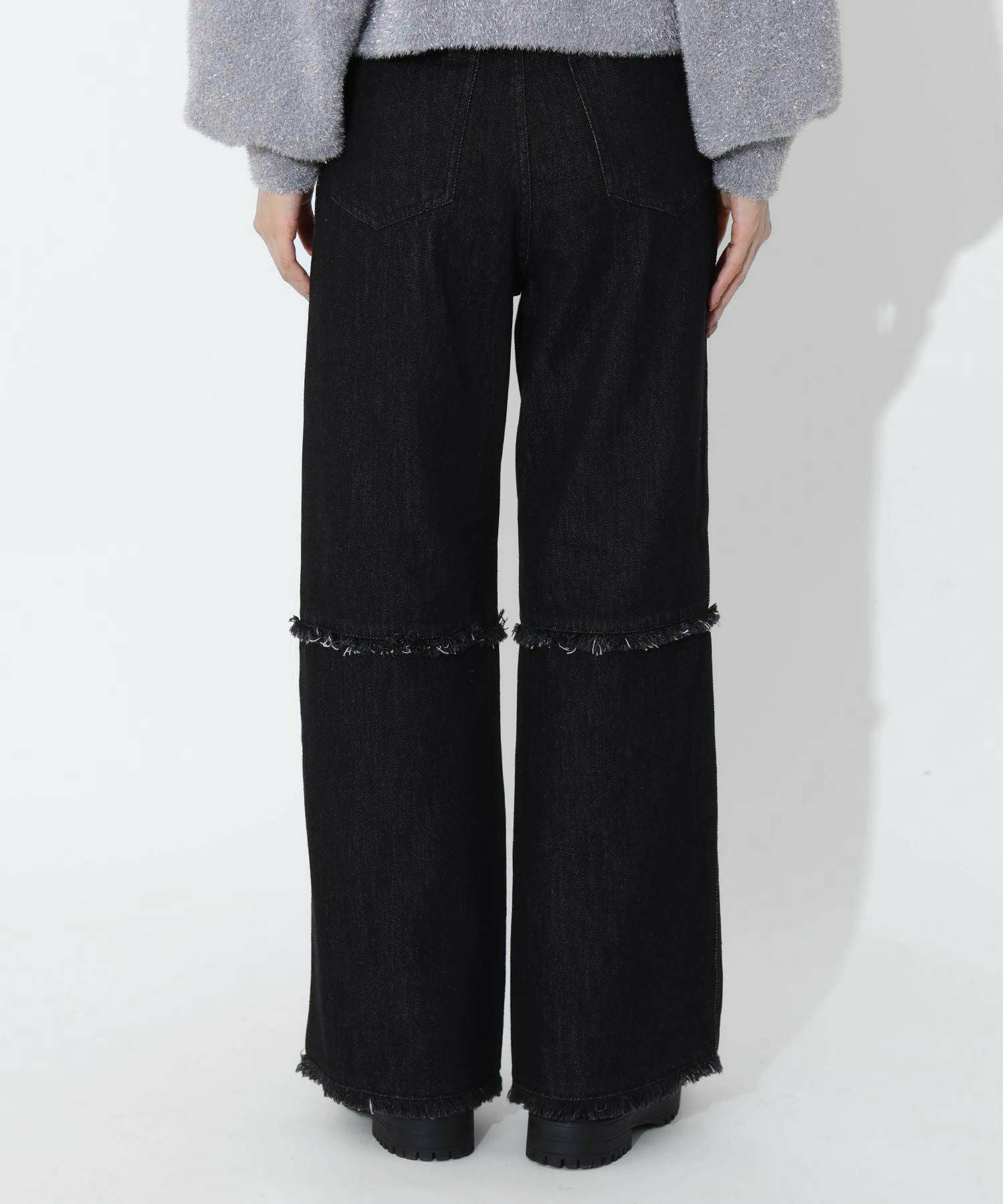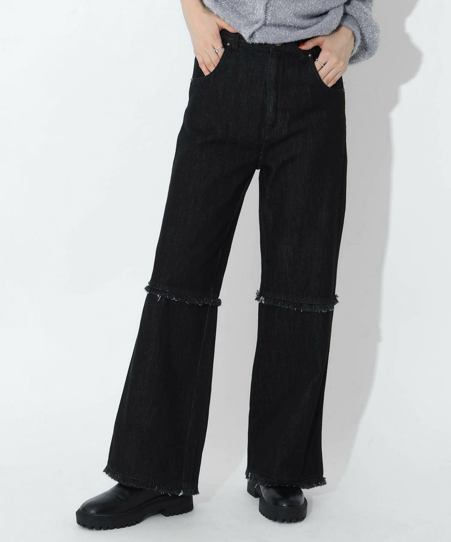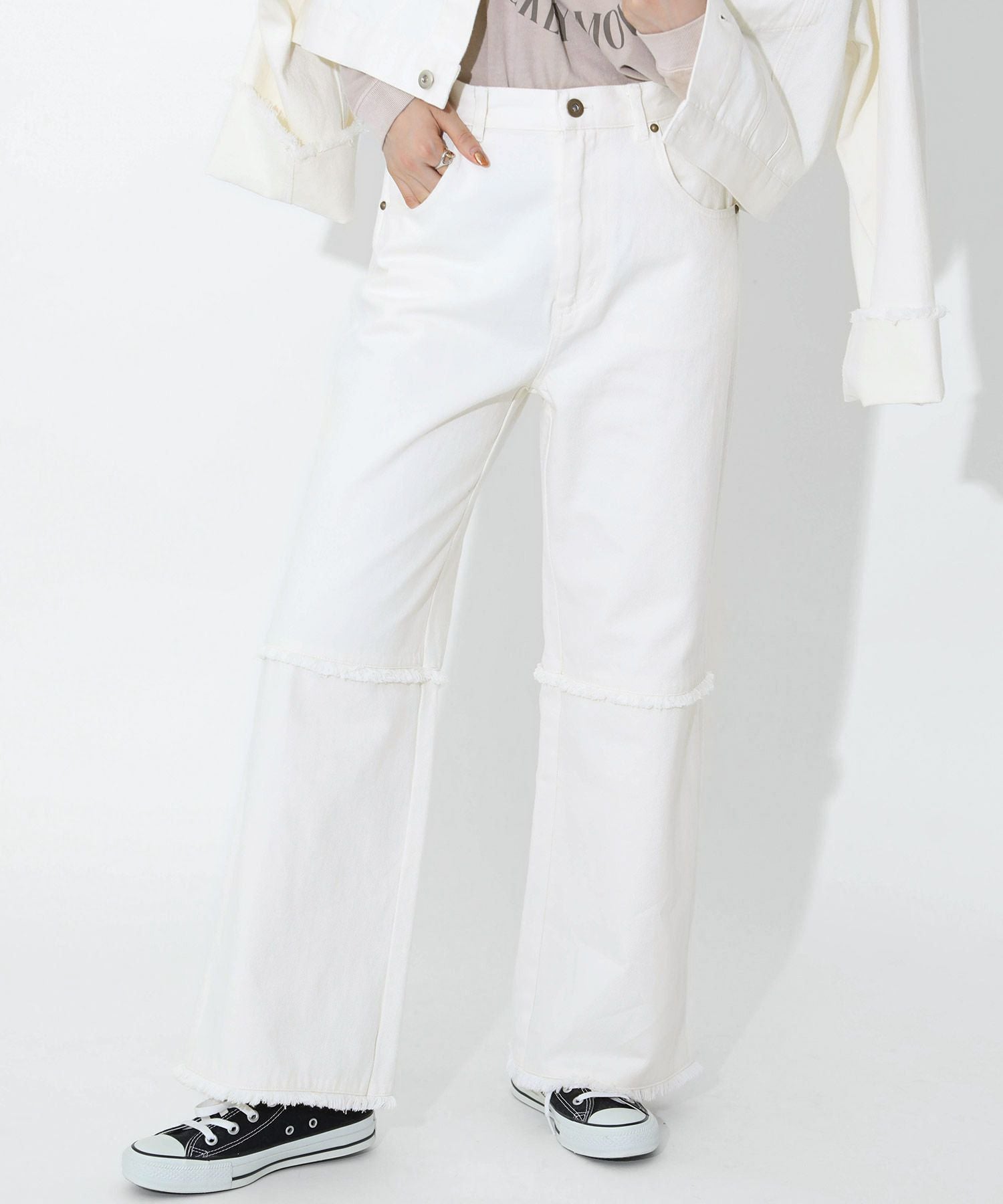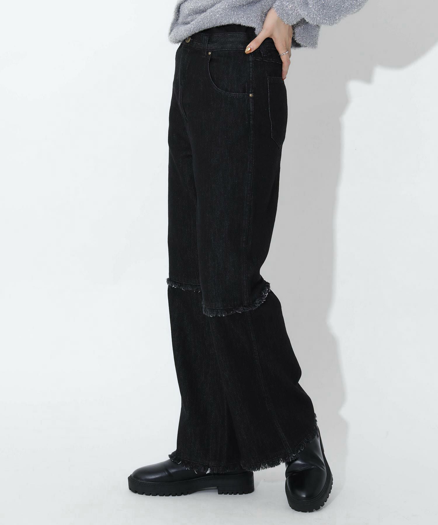 膝と裾のフリンジでカジュアルな抜け感をプラス。同色ステッチでクリーンな印象に仕上げました。定番カラーで着回し力抜群のワードローブに欠かせないアイテムです。