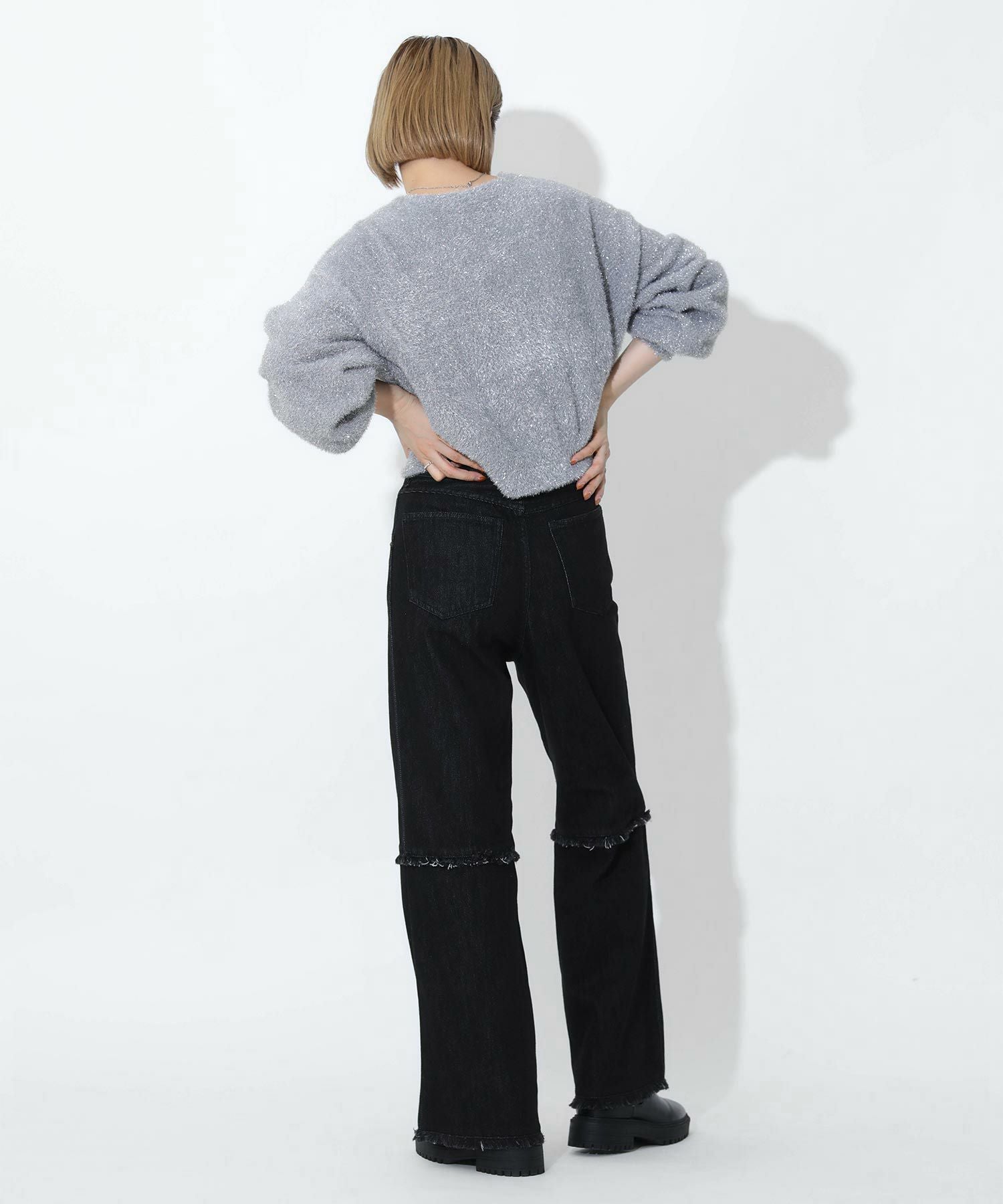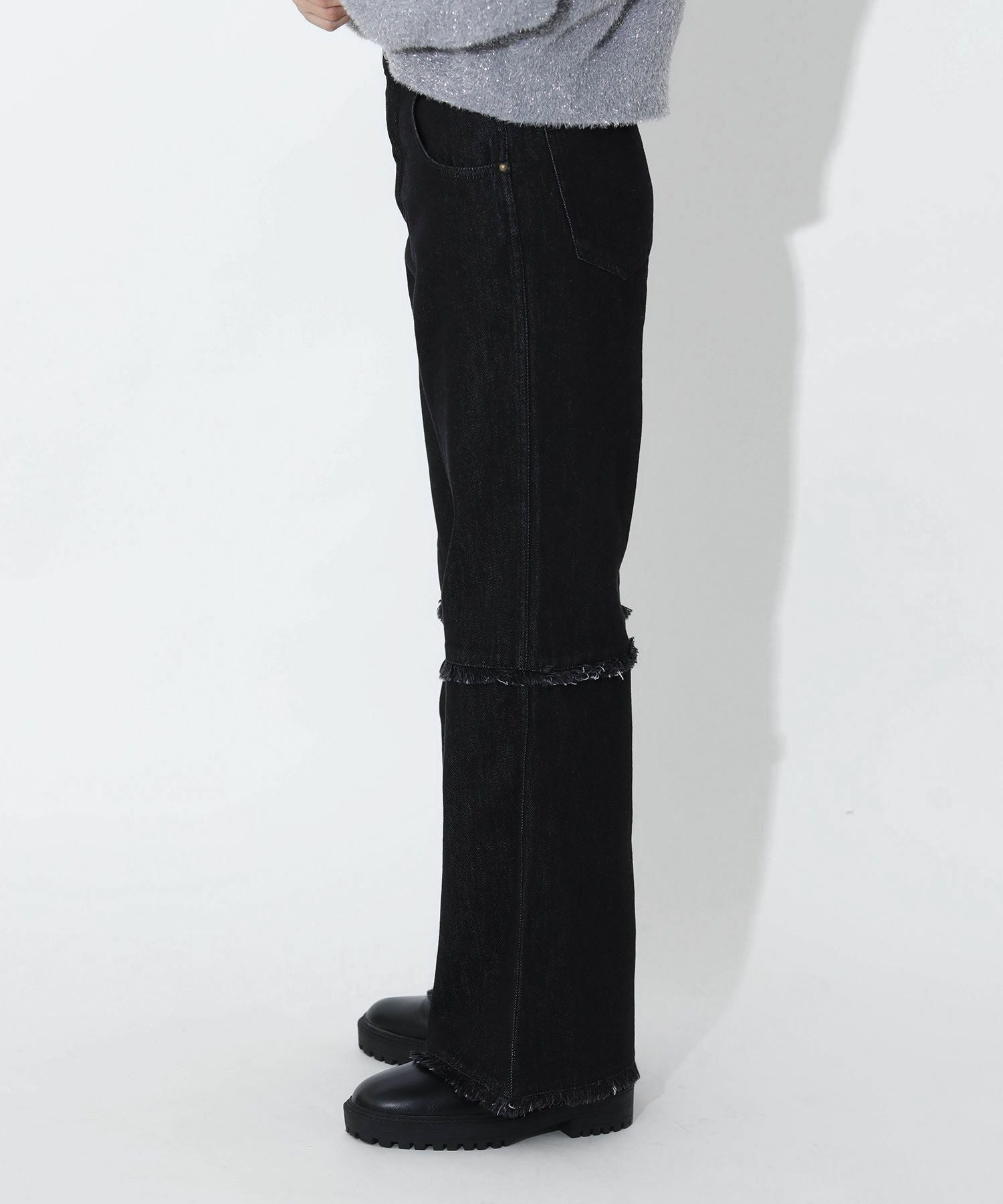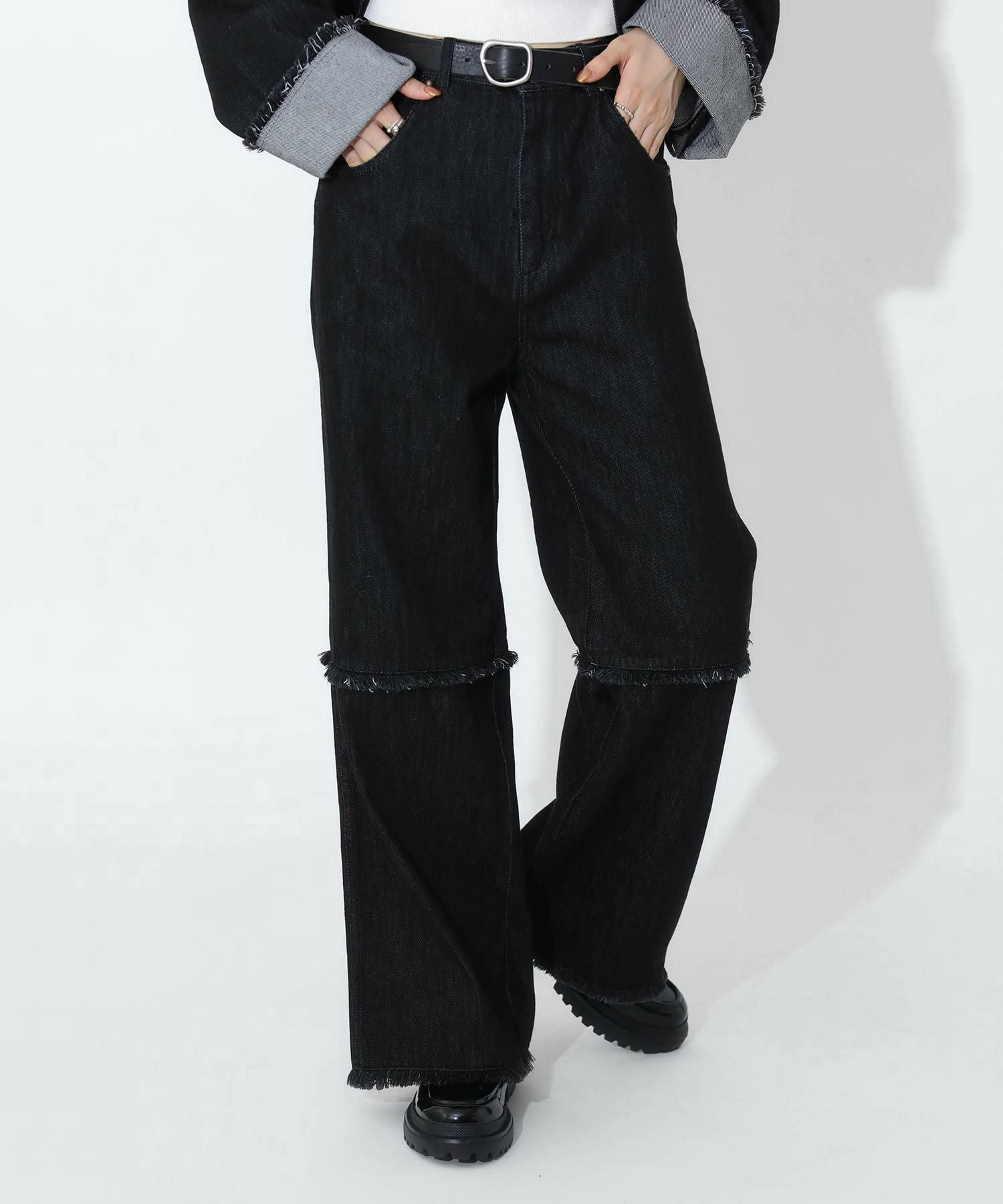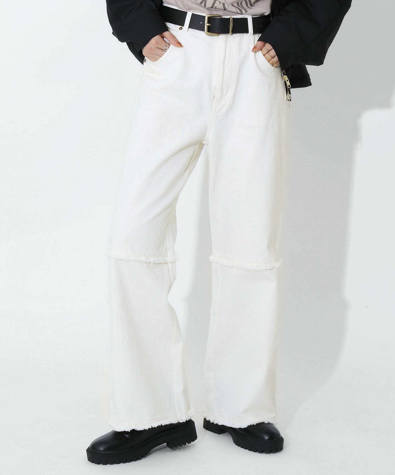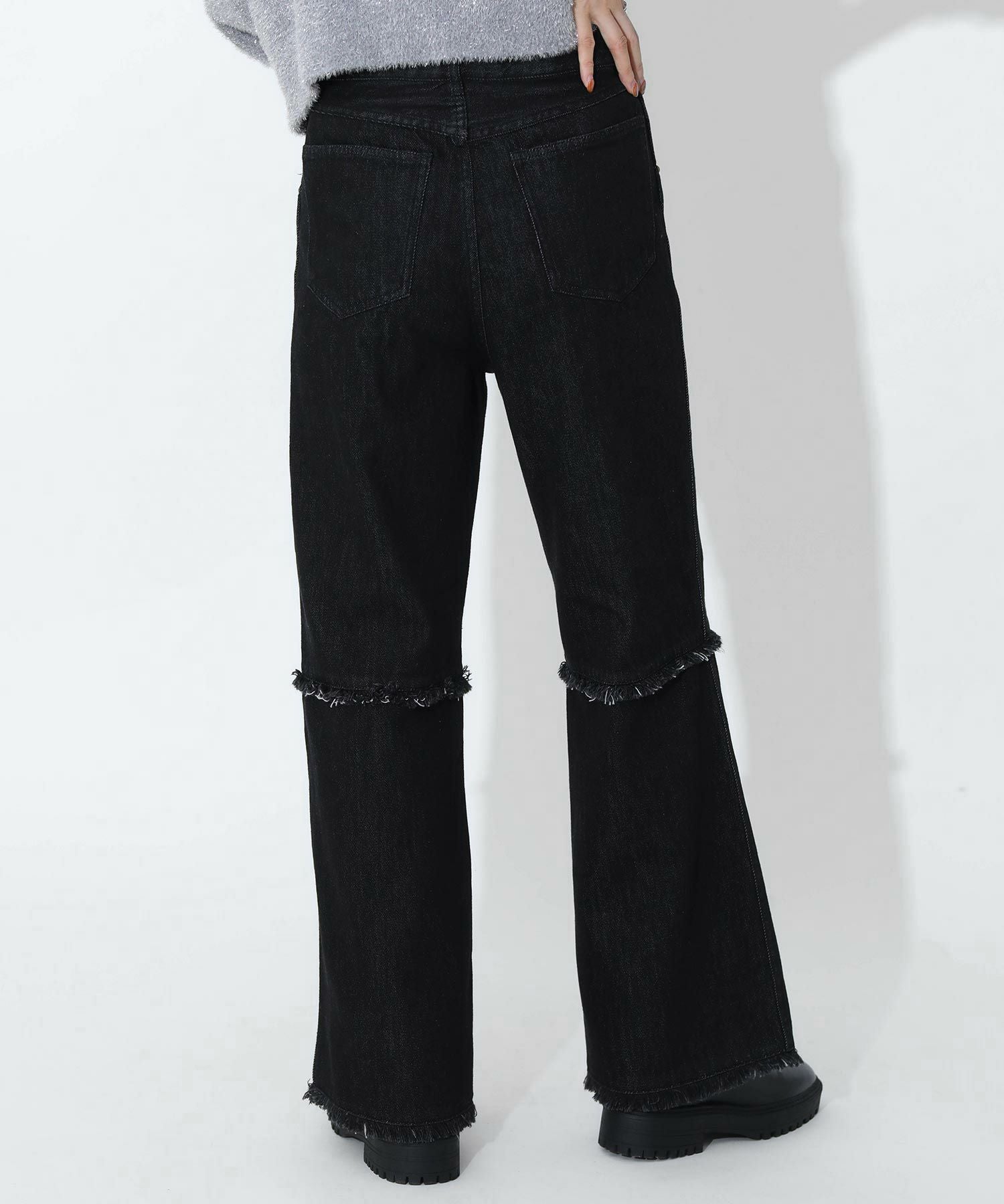 膝と裾のフリンジでカジュアルな抜け感をプラス。同色ステッチでクリーンな印象に仕上げました。定番カラーで着回し力抜群のワードローブに欠かせないアイテムです。