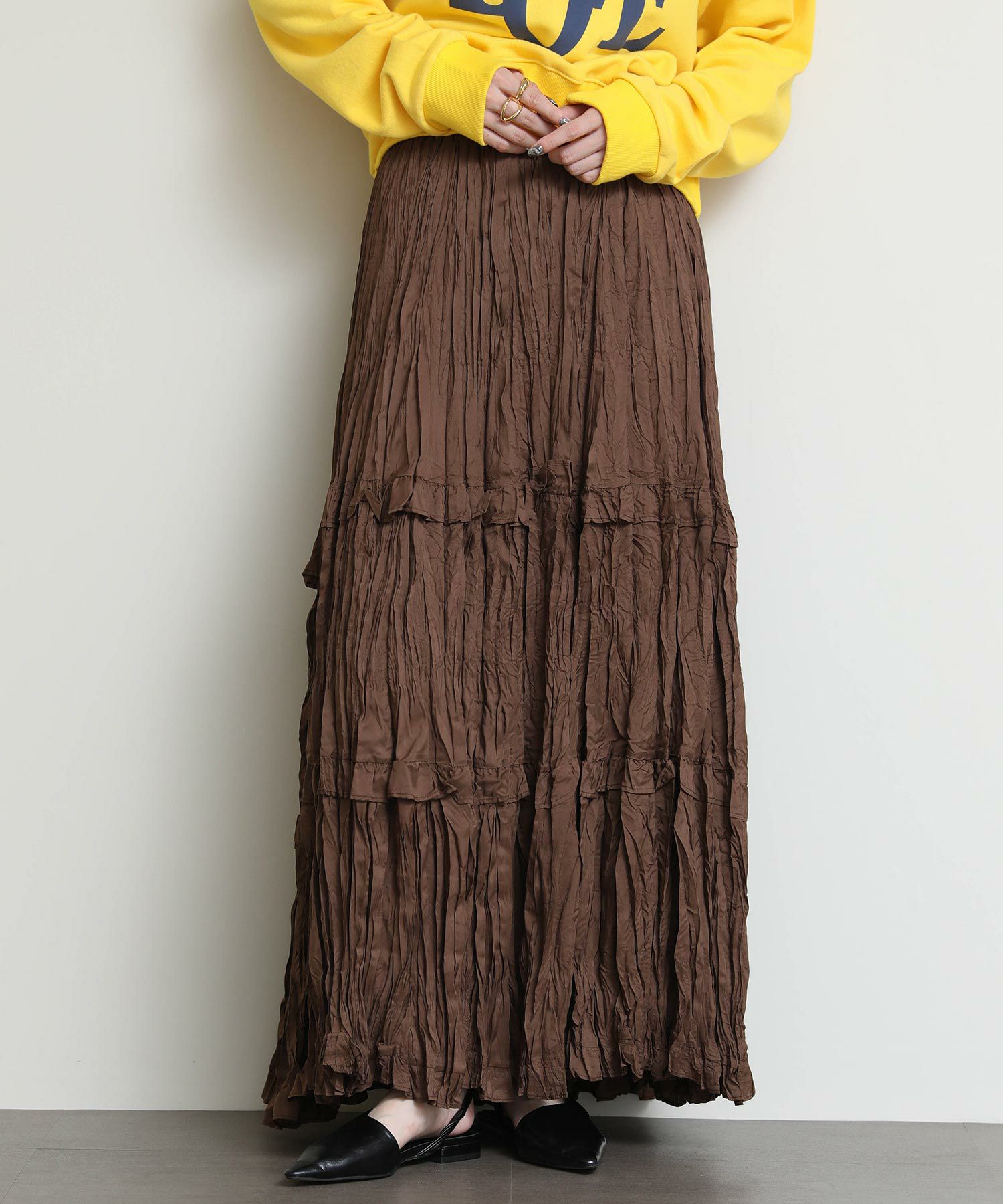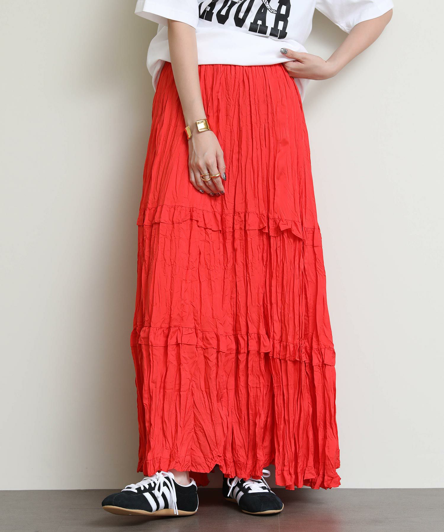 ふわりと軽やかに広がるシルエットが、スタイリングに華やかな印象を与えてくれます。