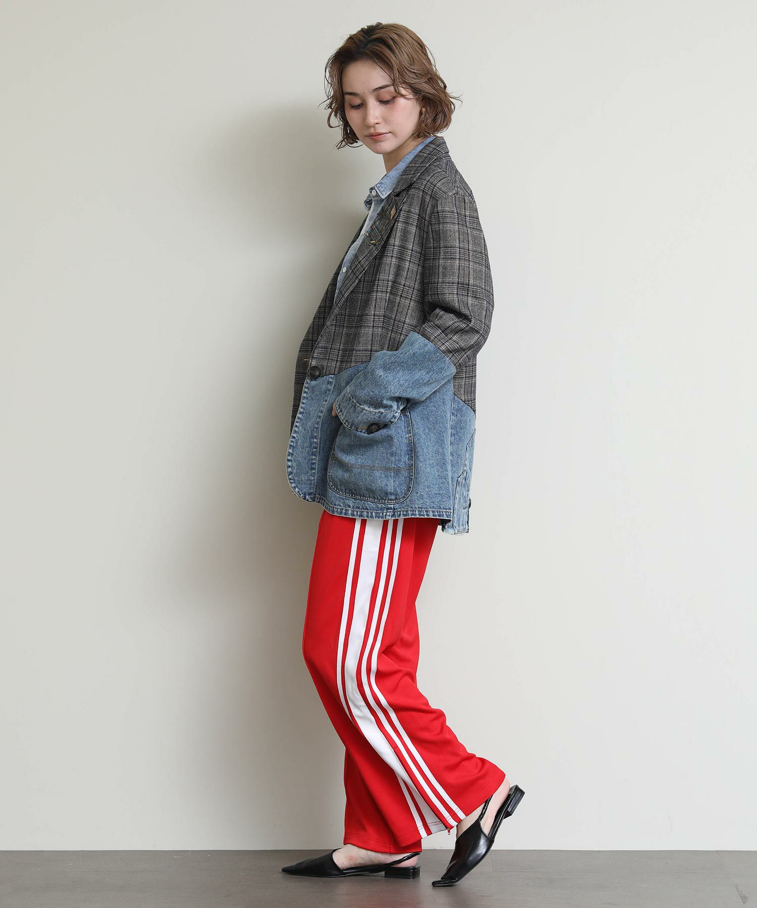 レトロな雰囲気とルーズなシルエットが魅力のアイテムとなっており、ルーズ過ぎず、よりシルエットにこだわった一着で、サイドラインをあえて大きく見せることでスタイルアップ効果も◎