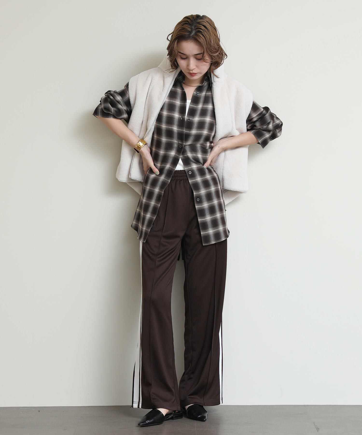 ※着用画像は撮影状況、光の当たり具合で色みが違って見える場合がございます。実際の色みについては、画像一覧の最後に掲載している詳細画像をご参照ください。